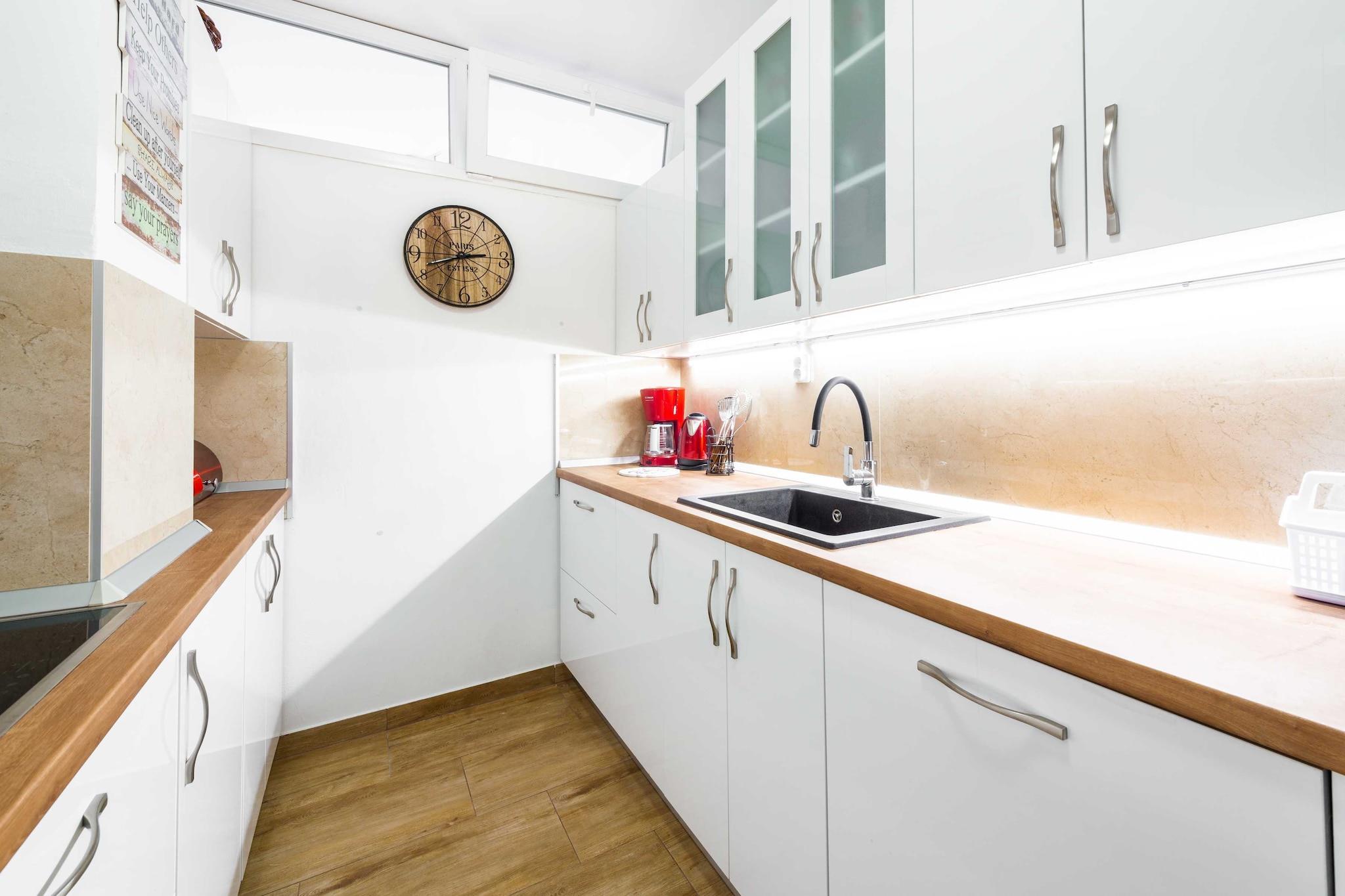 På 1. etage: (Stue, Køkken, soveværelse(king size-seng), soveværelse(2x enkeltseng), badeværelse) toilet, Fjernsyn, spisebord, kakkelovn, elkedel, brødrister, ovn, mikrobølgeovn, opvaskemaskine , køleskab, tremmeseng, bruser, vaskemaskine, balkon, klimaanlæg, parking lot(public), strygebræt, strygejern, føntørrer