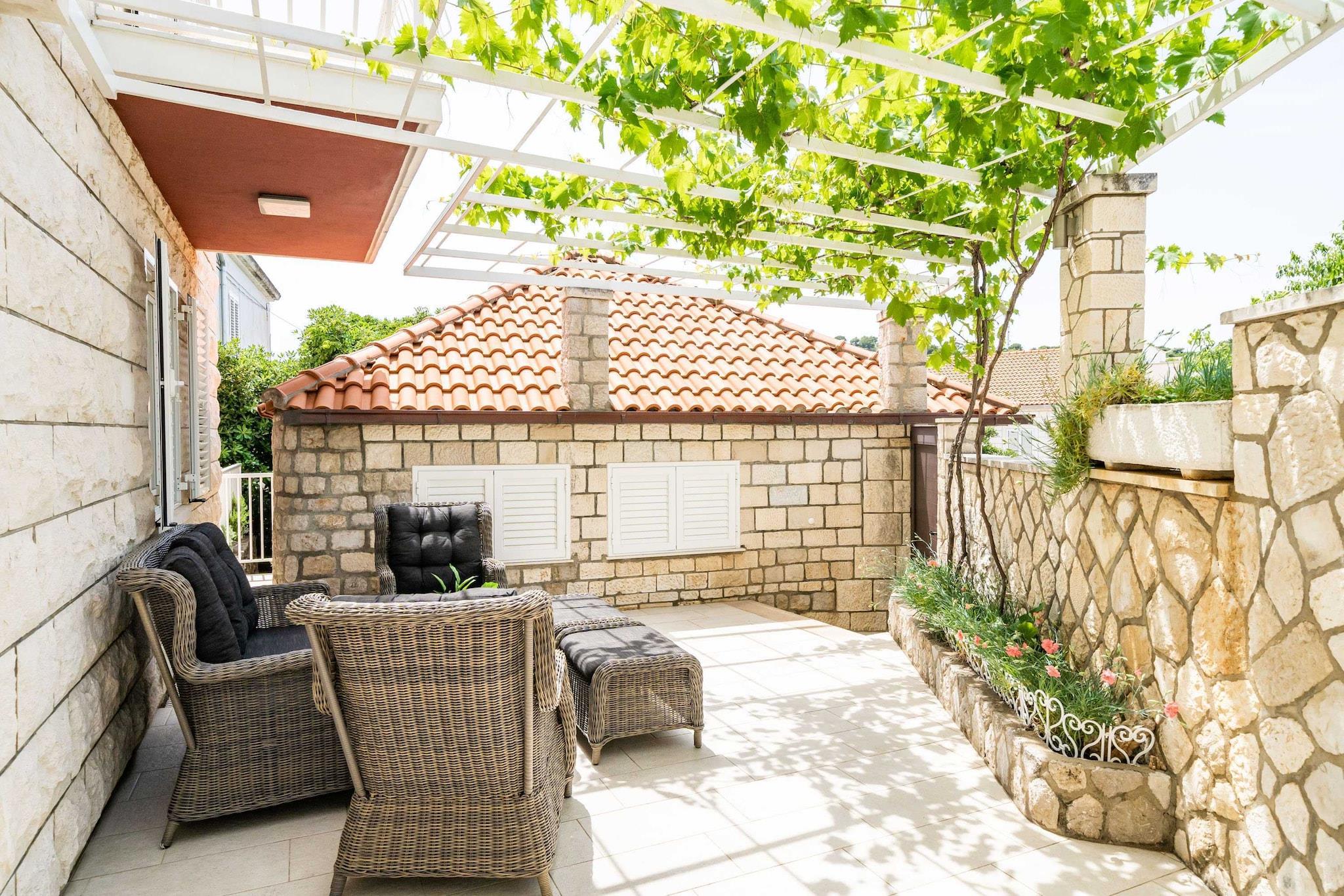 Holiday Home King er beliggende i hjertet af det moderne Dubrovnik. Det er ideelt placeret, da det kun er 20 minutters gang væk fra både den historiske gamle bydel og centrum af Dubrovnik. Bagageopbevaring før indtjekning og efter udtjekning er tilgængelig, så du kan udforske området lidt mere før afgang. Parkering er gratis og tilgængelig på stedet. Dette feriehus med fire soveværelser er et perfekt sted for en afslappende ferie, der kan rumme otte personer. Det har gratis trådløs internetadgang, aircondition og LCD-tv med kabelkanaler. Køkkenet er fuldt udstyret og leveres med spisebord. Stue indeholder sofa. Ejendommen har tre badeværelser, to med brusekabiner og badekar. Gæsterne kan nyde en rummelig møbleret terrasse med udsigt over byen. Grillfaciliteter er til gæsternes rådighed. Denne del af byen er meget populær, fordi alt hvad du har brug for er i nærheden af overnatningsstedet, og gæsterne kan nå den gamle bydel på mindre end 10 minutters kørsel eller 20 minutters gang. Købmand, busstation, restauranter, barer og caféer kan findes inden for 300 meters rækkevidde, samt bagerier og pengeautomater. Nærmeste strand ligger 10 minutters gang fra lejligheden.Dubrovnik busstation og færgehavn, der forbinder fastlandet med forskellige Dalmatiske øer ligger mindre end 10 minutters kørsel fra lejligheden, mens Dubrovnik Lufthavn ligger 21 km derfra.