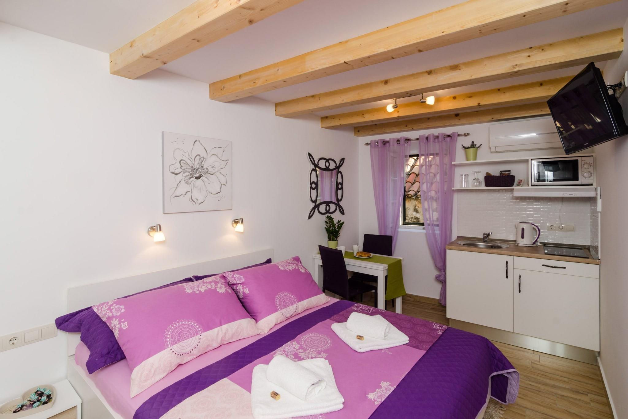 Lavender Garden Apartments er indkvartering med egen forplejning beliggende inden for bymuren i Dubrovnik.Property har 5 boligenheder.Denne studielejlighed ligger på øverste etage og har gratis WiFi, aircondition og fladskærms-tv. Tekøkken med køleskab, kedel, mikroovn, komfur, brødrister og spiseplads. Det private badeværelse har bruser, hårtørrer, toiletpapir og sæbe. Sengelinned og håndklæder er inkluderet, så som strygefaciliteter og førstehjælpskasse. Lavender Garden Apartments ligger inden for bymuren i hjertet af Dubrovniks gamle bydel. Beliggende midt i hjertet af Dubrovnik, er dette sted perfekt til at se lokale attraktioner såsom Old Town Port, Church of St. Blaise, Rectors Palace, Dubrovnik Cathedral, Franciscan Monastery og Orlandos Column. Den nærmeste strand ligger 200 m. væk fra ejendommen. Der er et udendørs grøntmarked og andre butikker inden for gåafstand, samt et bageri, banker og pengeautomater, caféer, barer og restauranter med lokale og andre retter. Den nærmeste restaurant ligger 300 m fra ejendommen. Marked kan findes i 350 m afstand, mens supermarked ligger 2 km væk. Natklubben Revelin, som ligger inde i det gamle fort, ligger 600 m derfra.Dubrovniks busstation og færgehavnen med forbindelser til nærliggende øer ligger 4 km derfra, mens Dubrovnik Lufthavn ligger 22 km fra ejendommen.