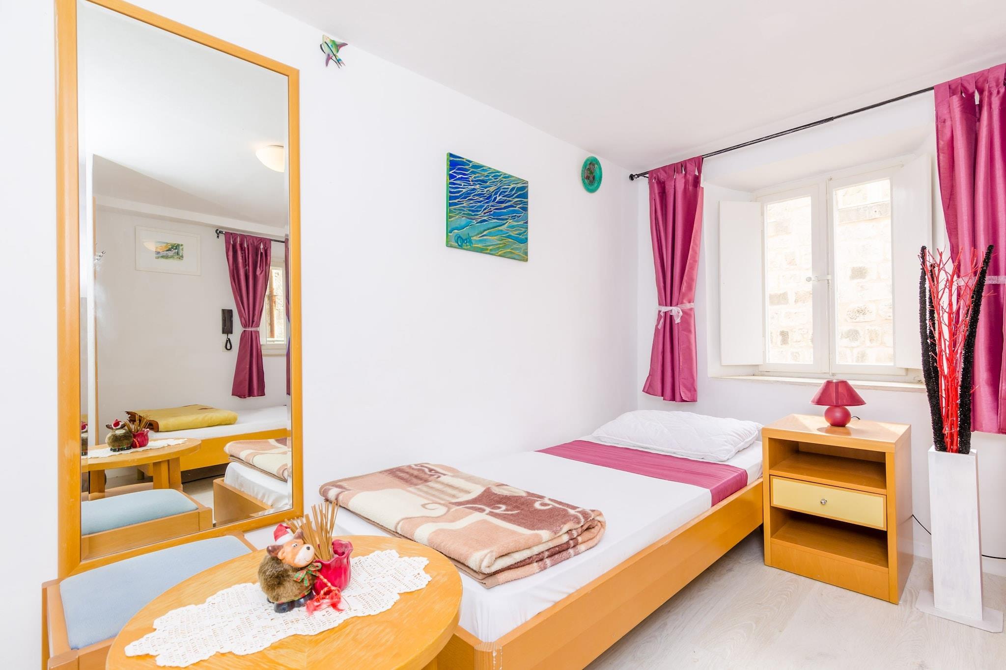 Rooms Jozomare ligger inden for bymurene i Dubrovniks gamle bydel. Ejendommen har 4 boligenheder. Hvert værelse er udstyret med ventilator, vandkedel og fælles badeværelse. Rengøringsgebyr på EURO 10 pr. ophold er ikke inkluderet. Dette værelse har 2 enkeltsenge, elkedel, ventilator og et fælles badeværelse med bruser. Gæsterne vil have ubegrænset adgang til gratis WiFi .Den gamle bys centrale gade Stradun ligger kun 2 minutters gang væk Værelserne ligger kun 450 meter fra den nærmeste strand Sulic, med mange flere af dem i det omkringliggende område og den smukke ø Lokrum kun 15 minutters bådtur væk.Det nærmeste marked er 100 m væk. Der er ikke behov for offentlig transport, mens du bor her, men hvis du vil se andre dele af byen, for eksempel den fredelige Lapad-bugt, kan du være der på 10 minutters kørsel. Taxa- og busstation ligger 4 minutters gang fra ejendommen.Dubrovniks busstation og færgehavn, der forbinder fastlandet med forskellige dalmatiske øer, ligger 11 minutters kørsel fra lejligheden, mens Dubrovnik Lufthavn ligger 21 km derfra.