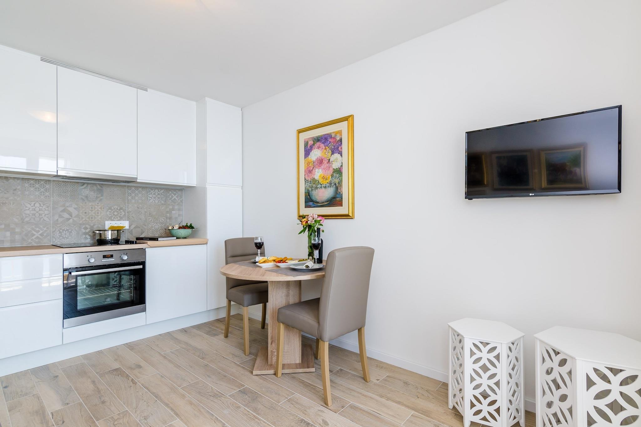 Apartments Lazarin er beliggende i Ploce, kvarteret Dubrovnik lige øst for Dubrovniks gamle bydel. Dette er det mest attraktive område i Dubrovnik (ved siden af det historiske centrum).Enhederne er placeret på 4. sal i en bygning. Parkering er betalt, offentlig.Denne dejlige etværelseslejlighed med balkon og havudsigt er perfekt til op til fire personer.Den har aircondition, WiFi og fladskærms-tv. Gæsterne vil blive udstyret med den store dobbeltseng og en ekstra sovesofa til to i stue. Køkken er veludstyret med ovn, køleskab, brødrister og opvaskemaskine. Badeværelse med bruser, hårtørrer og vaskemaskine. Balkon med havemøbler byder på en vidunderlig havudsigt. Lejlighederne Lazarin ligger 1 km fra den gamle bydel, købmanden , bageri og caféer kan findes inden for 170 m. Den nærmeste busstation ligger 200 m væk, med busser, der kører ofte.Lejligheder Lazarin er det perfekte sted for gæster, der elsker at nyde solen og havet, der er tæt på e turistcentrum, men langt nok til at undgå folkemængderne og bevare deres fred og privatliv.Dubrovniks busstation og færgehavn, der forbinder fastlandet med forskellige dalmatiske øer, ligger 5,5 km fra ejendommen, mens Dubrovnik Lufthavn ligger 21 km derfra.