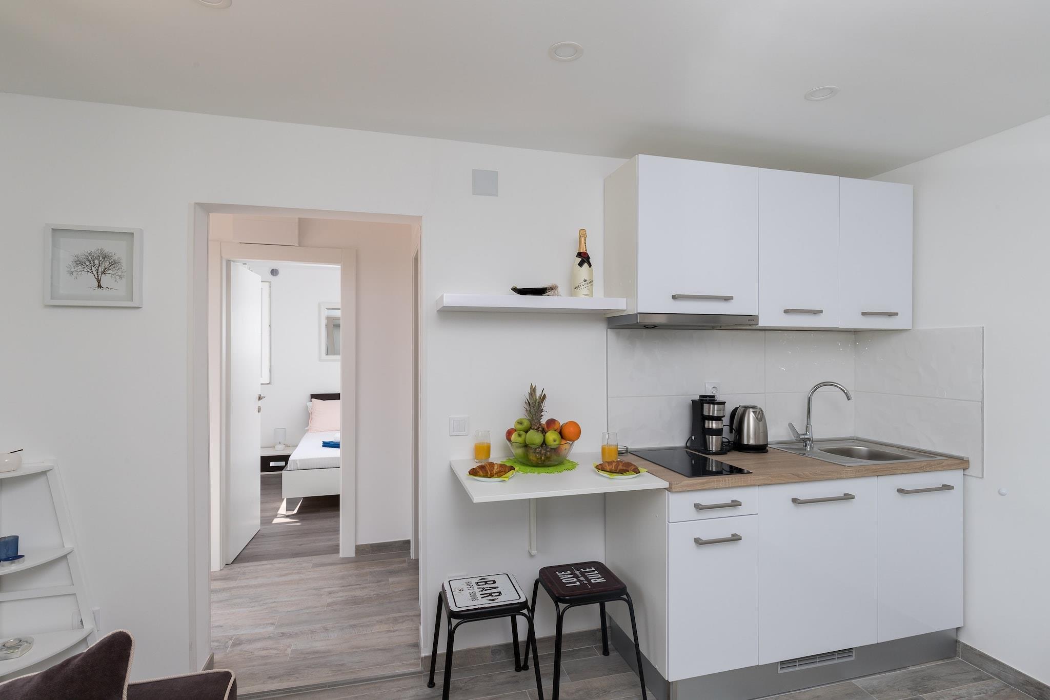 Apartment Semi er indkvartering med egen forplejning i Dubrovnik. Der tilbydes privat parkering, reservation er ikke nødvendig. Bagageopbevaring er tilgængelig før indtjekning og efter udtjekning. Denne lejlighed med 1 soveværelse med terrasse og havudsigt er perfekt til op til 2 personer. Opholdsstuen har opholdsområde og fladskærms-kabel-tv. Der er gratis WiFi og aircondition. Køkkenet har komfur, køleskab, kedel, mikroovn, kaffemaskine, brødrister og spiseplads. Det private badeværelse har brusekabine, hårtørrer, toiletpapir, sæbe og gratis toiletartikler. Der er vaskemaskine og strygefaciliteter. Lejligheden har terrasse med havudsigt.Apartment Semi ligger i Nuncijata i Dubrovnik, 3 km fra Dubrovniks gamle bydel. De nærmeste restauranter og kaffebarer kan findes inden for 700 m rækkevidde, mens marked og apotek ligger 1 km væk. Den nærmeste strand ligger 3 km fra ejendommen.