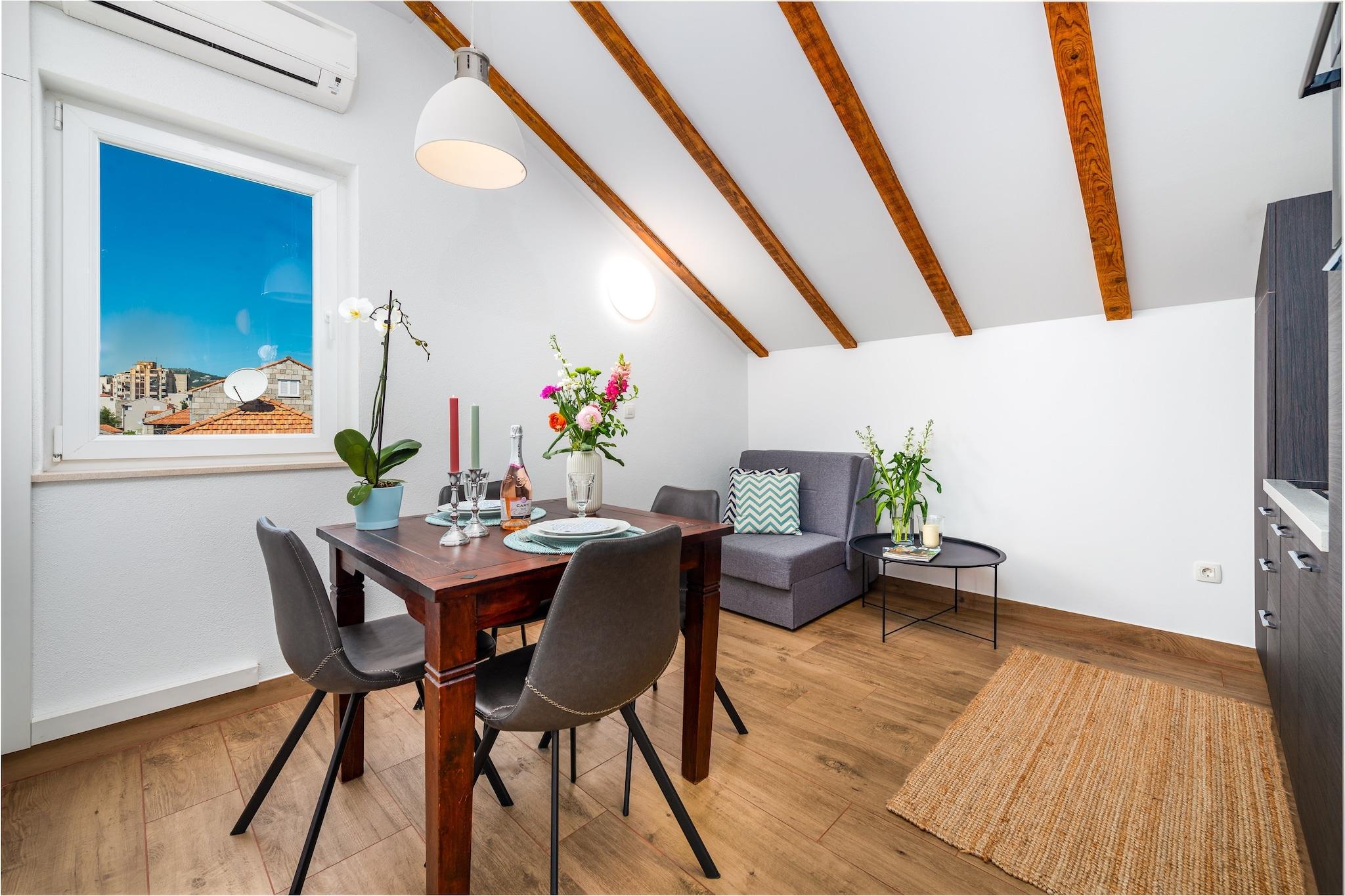 Lejligheder Terra er beliggende i Gruž, et dejligt kvarter, som er det bedste valg, hvis du ønsker at tilbringe din ferie i fred og ro, langt fra byens folkemængder, og også have alt hvad du behøver i nærheden af din ferie. Ejendommen tilbyder to boligenheder, begge med balkon med udsigt over byen eller haven, fuldt udstyret åbent køkken med spiseplads, stue med opholdsområde og badeværelse. Vaskemaskine og strygefaciliteter er til rådighed.Gratis parkering er til rådighed uden for stedet (reservering påkrævet). Parkeringsadressen er Andrije Hebranga 50, kun 100 m fra ejendommen. Bagageopbevaring er tilgængelig før indtjekning og efter udtjekning. Barneseng er tilgængelig efter anmodning. Denne lejlighed med 1 soveværelse har soveværelse med to enkeltsenge og kabel-tv. Sofa - cabriolet enkelt medfølger. Køkkenet er veludstyret med ovn, komfur, køleskab, elkedel, mikroovn, brødrister, kaffemaskine og spiseplads med spisebord. Lejligheden har eget badeværelse med bruser, hårtørrer og toiletpapir. Aircondition og rengøringsbehov er til rådighed. Lejligheden har balkon med dejlig udsigt til haven. Denne lejlighed med 1 soveværelse kan komfortabelt rumme op til 3 personer. Ejendommen er beliggende cirka 1,5 kilometer fra Dubrovniks hovedbusstation og færgehavn. Købmand, grøntmarked, restauranter, caféer, bagerier og pengeautomater kan nås til fods på 5 minutter. Det er 2 km fra Lapad-bugten med dens smukke strande. Den berømte gamle bydel i Dubrovnik ligger 1,9 km væk, med forskellige strande, historiske seværdigheder, restauranter, caféer, barer og butikker. Den nærmeste busstation ligger 30 meter fra lejligheden, med busser, der kører hyppigt og mindre end 5 minutters kørsel til den gamle bydel, eller 25 minutters gang. Dubrovniks busstation og færgehavn, der forbinder fastlandet med forskellige dalmatiske øer, ligger 15 minutter fra lejligheden til fods, mens Dubrovnik Lufthavn ligger 21 km derfra.