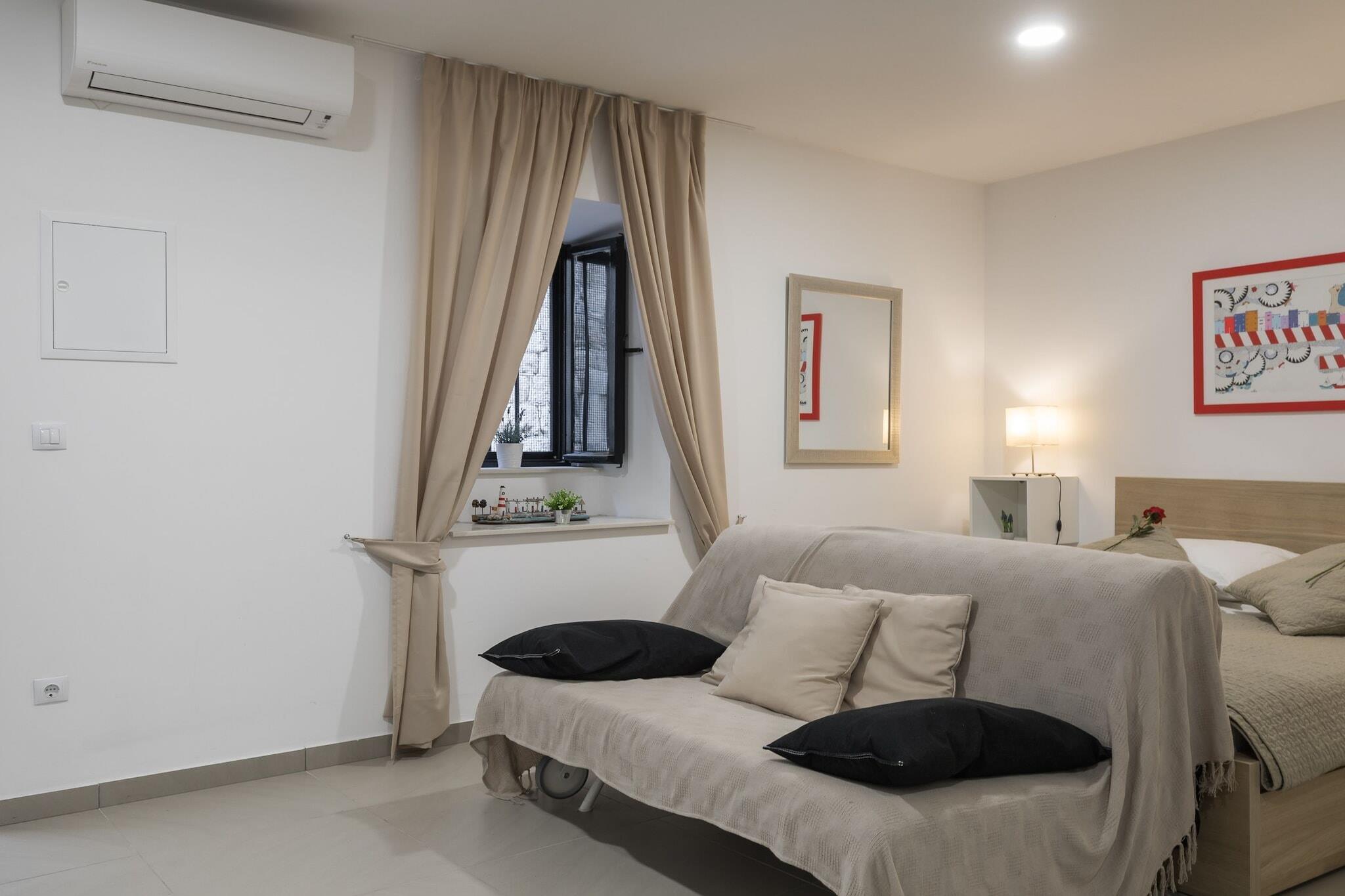 Apartment Navigator er indkvartering med egen forplejning beliggende i hjertet af den gamle bydel i Dubrovnik, omgivet af bymure. Lejligheden på 33 kvadratmeter er meget flot, moderne og ny, med flotte omgivende farver, nyt stort køkken med mikroovn, køleskab osv. moderne badeværelse, alt hvad du behøver for at nyde den gamle by. Alt hvad du behøver, for at have det sjovt, finder du i denne lejlighed og bare for at fortælle huset er fra det 15. århundrede. Adressen er Antuninska 16A. Indtastning sker på egen hånd med nøglekodenummer, som vil blive oplyst, når du har reserveret lejlighed. Alt hvad du har brug for, tøv ikke med at spørge. Bagageopbevaring er muligt før check-in og efter check-out, så du kan udforske byen lidt mere før din afrejse. Denne komfort studiolejlighed er nyindrettet med egen indgang og ligger i stueetagen. Studio med opholdsområde og kabel-tv. Der er aircondition og gratis WiFi. Tekøkkenet har komfur, køleskab, mikroovn, kedel og spiseplads. Der er eget badeværelse med bruser, sæbe, toiletpapir og hårtørrer. Sengelinned og håndklæder leveres.Apartment Navigator ligger kun 100 meter fra Stradun-promenaden, hvor gæsterne kan svælge i seværdigheder såsom bymuren, rektorpaladset og mange flere, som dette UNESCO-arvsted tilbyder, eller slappe af på en af de mange caféer og restauranter.Den nærmeste strand ligger 700 m fra ejendommen.Nærmeste marked, apotek, restaurant og kaffebar, alle kan findes inden for 300 m rækkevidde.Den nærmeste busstation ligger 450 m fra ejendommen.Dubrovnik Main Bus Station og færgehavn ligger 4 km derfra, mens Dubrovnik Lufthavn ligger 16 km derfra.