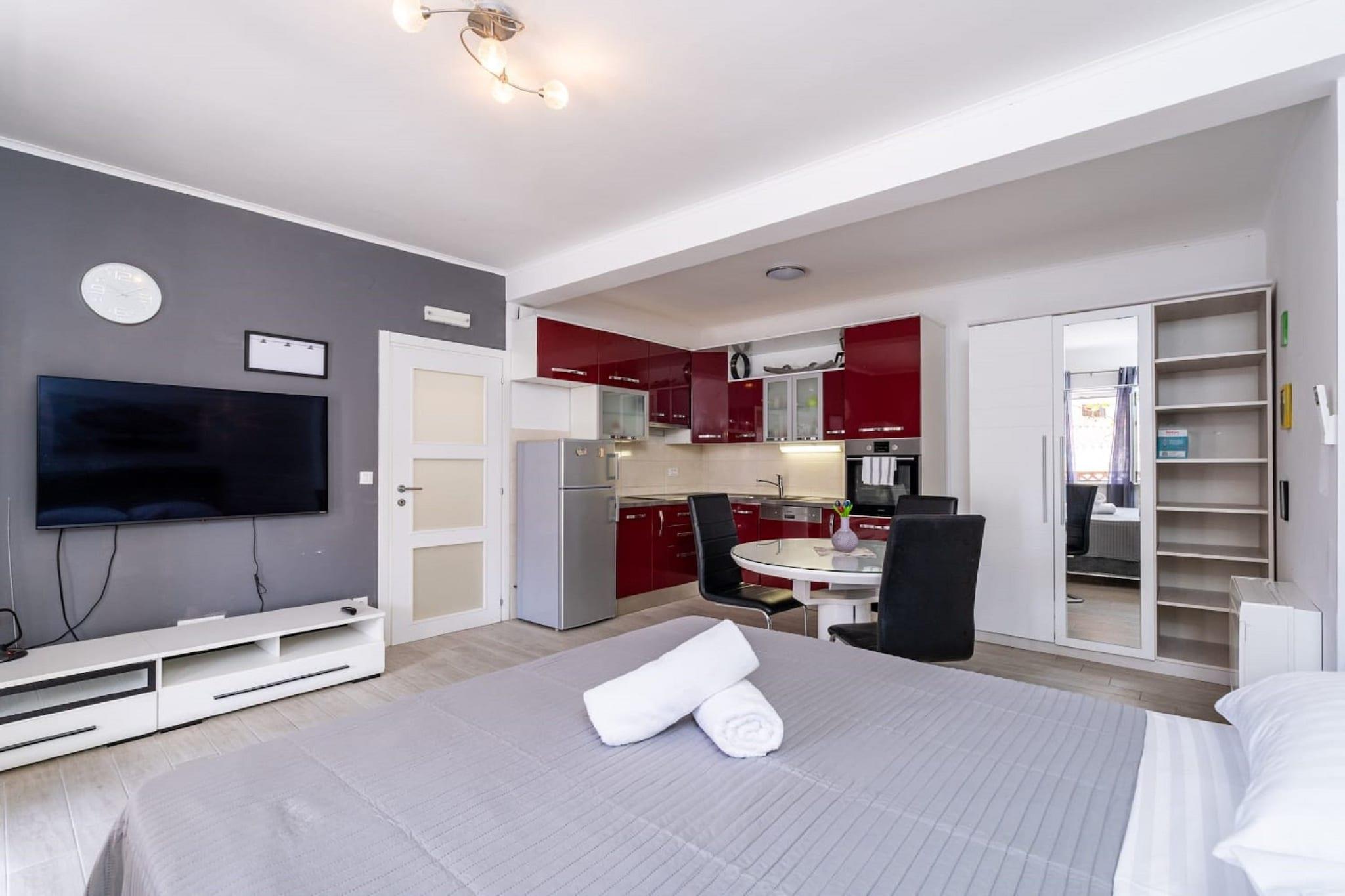 Denne lejlighed kommer med møbleret terrasse, hvilket gør dette sted til et perfekt sted for en dejlig og afslappende familieferie. Det har aircondition og flad-tv. Den åbne rum stue omfatter spiseplads med sofa og det er kombineret med udstyret køkken og spiseplads. Lejligheden er beliggende i Babin Kuk område, som er 4 km væk fra den gamle bydel i Dubrovnik. Det ligger 700 m fra Lapad-bugten og 4 km fra den gamle bydel. En busstation med en direkte linje til den gamle bydel i Dubrovnik er meget tæt på, og i nabolaget finder du masser af restauranter, købmandsforretninger, caféer, pengeautomater. I den gamle bydel kan gæsterne udforske seværdigheder såsom bymuren, Stradun, rektorpaladset og mange flere. I det veludstyrede køkken kan du tilberede velsmagende måltider. Soveværelserne er komfortable til en fredelig søvn. Gratis privat parkering er og gratis WiFi overalt på ejendommen.Dubrovniks busstation og færgehavn ligger 2,7 km fra lejligheden, mens Dubrovnik Lufthavn ligger 23 km derfra.