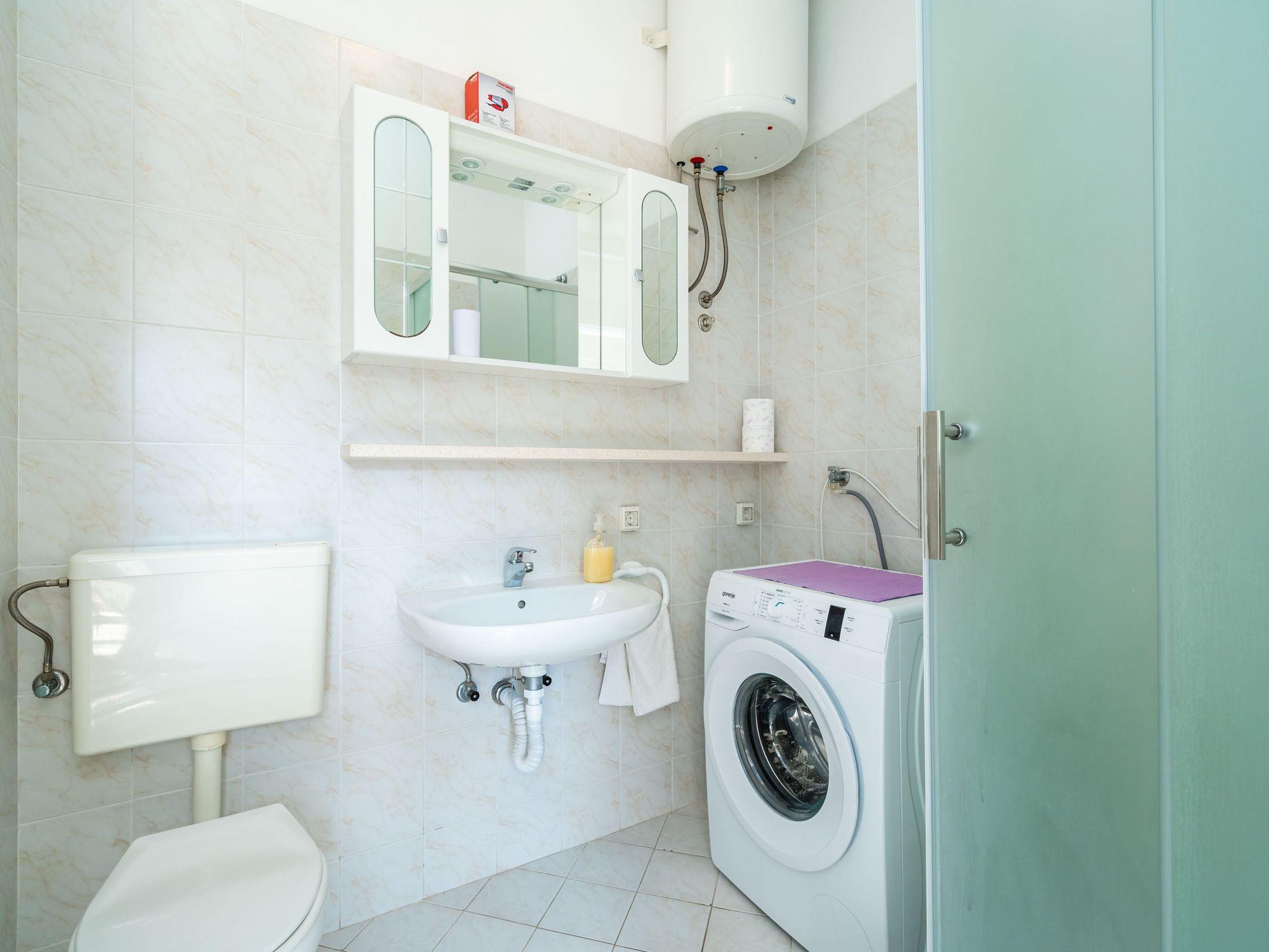Ferienwohnung bietet Platz für 4 Gäste. Die Betten sind in Schlafzimmern, die es 1 gibt, und in Wohnzimmer, innerhalb einer Gesamtfläche von 31m2, angeordnet. Die Gäste haben eine eigene Terrasse zur Verfügung, auf der sie in warmen Sommernächten genießen können. Es ist erlaubt, Speisen auf dem Gemeinschafts-Grill vorzubereiten. IM PREIS INBEGRIFFEN: Kurtaxe, Endreinigung, Klimatisierung, Parkplatz, Internet, Bügeleisen, Bügelbrett, Föhn. VERBINDLICHE ZUSÄTZLICHE KOSTEN: Aufzahlung für Kurzaufenthalte (prozentualer Zuschlag pro Nächtigungsanzahl: 30% - 1, 20% - 2, 10% - 3). Die Verfügbarkeit zusätzlicher Dienstleistungen in Ihrem reservierten Termin und die Preise derselben (falls nicht aufgeführt) müssen im Voraus überprüft werden. Zusätzliche Dienstleistungen die in der Zahlungsaufforderung nicht aufgeführt sind werden direkt beim Vermieter bezahlt, angenommen der Gast nutzt auch diese.