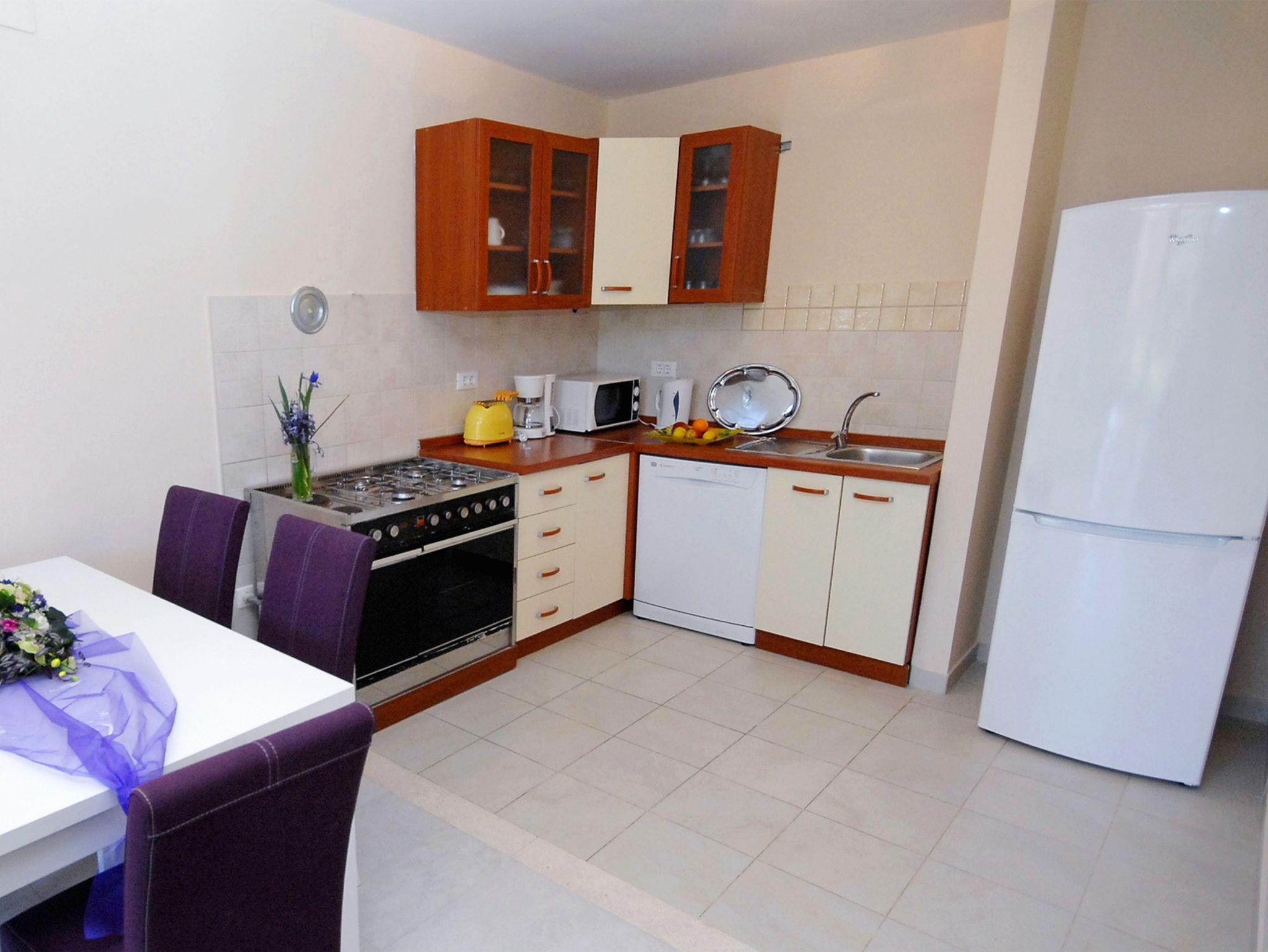 Ferienwohnung bietet Platz für 6 Gäste. Die Betten sind in Schlafzimmern, die es 2 gibt, und in Wohnzimmer, innerhalb einer Gesamtfläche von 66m2, angeordnet. Die Gäste haben eine eigene Terrasse zur Verfügung, auf der sie in warmen Sommernächten genießen können. Es ist erlaubt, Speisen auf dem Gemeinschafts-Grill vorzubereiten. Durch die Terrasse der gebuchten Unterkunftseinheit gehen auch andere Gäste oder Vermieter. Unterkunftseinheit hat Räume, die von dem Rest der Einheit abgetrennt werden. In der gebuchten Unterkunftseinheit zahlt man am Ort ein Depositum ( der Preis ist an der Internetseite angeführt ). IM PREIS INBEGRIFFEN: Kurtaxe, Endreinigung, Klimatisierung, Parkplatz, Internet, Kinderbett, Bügeleisen, Bügelbrett, Föhn. VERBINDLICHE ZUSÄTZLICHE KOSTEN: Kaution (200,00 € Einmalzahlung), Aufzahlung für Kurzaufenthalte (prozentualer Zuschlag pro Nächtigungsanzahl: 30% - 1, 20% - 2, 10% - 3). Die Verfügbarkeit zusätzlicher Dienstleistungen in Ihrem reservierten Termin und die Preise derselben (falls nicht aufgeführt) müssen im Voraus überprüft werden. Zusätzliche Dienstleistungen die in der Zahlungsaufforderung nicht aufgeführt sind werden direkt beim Vermieter bezahlt, angenommen der Gast nutzt auch diese.