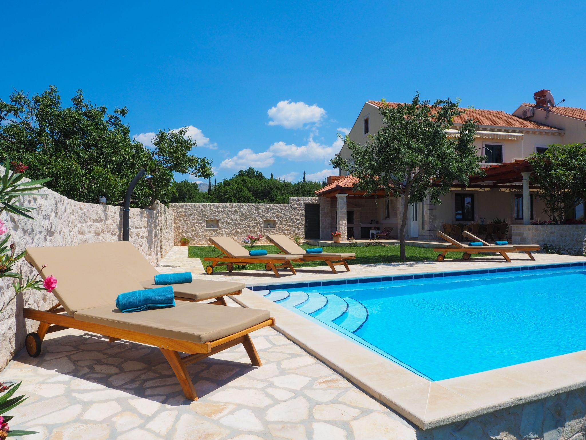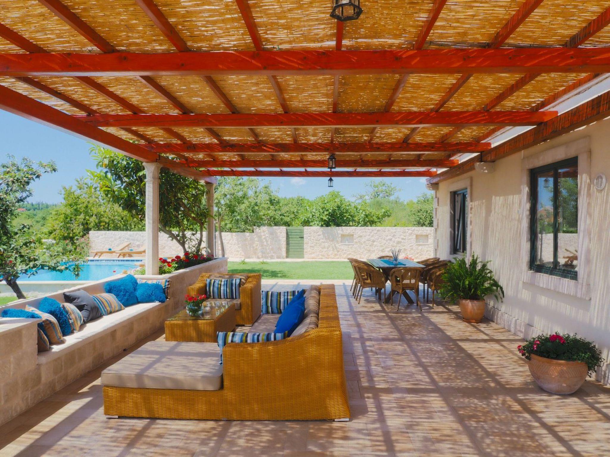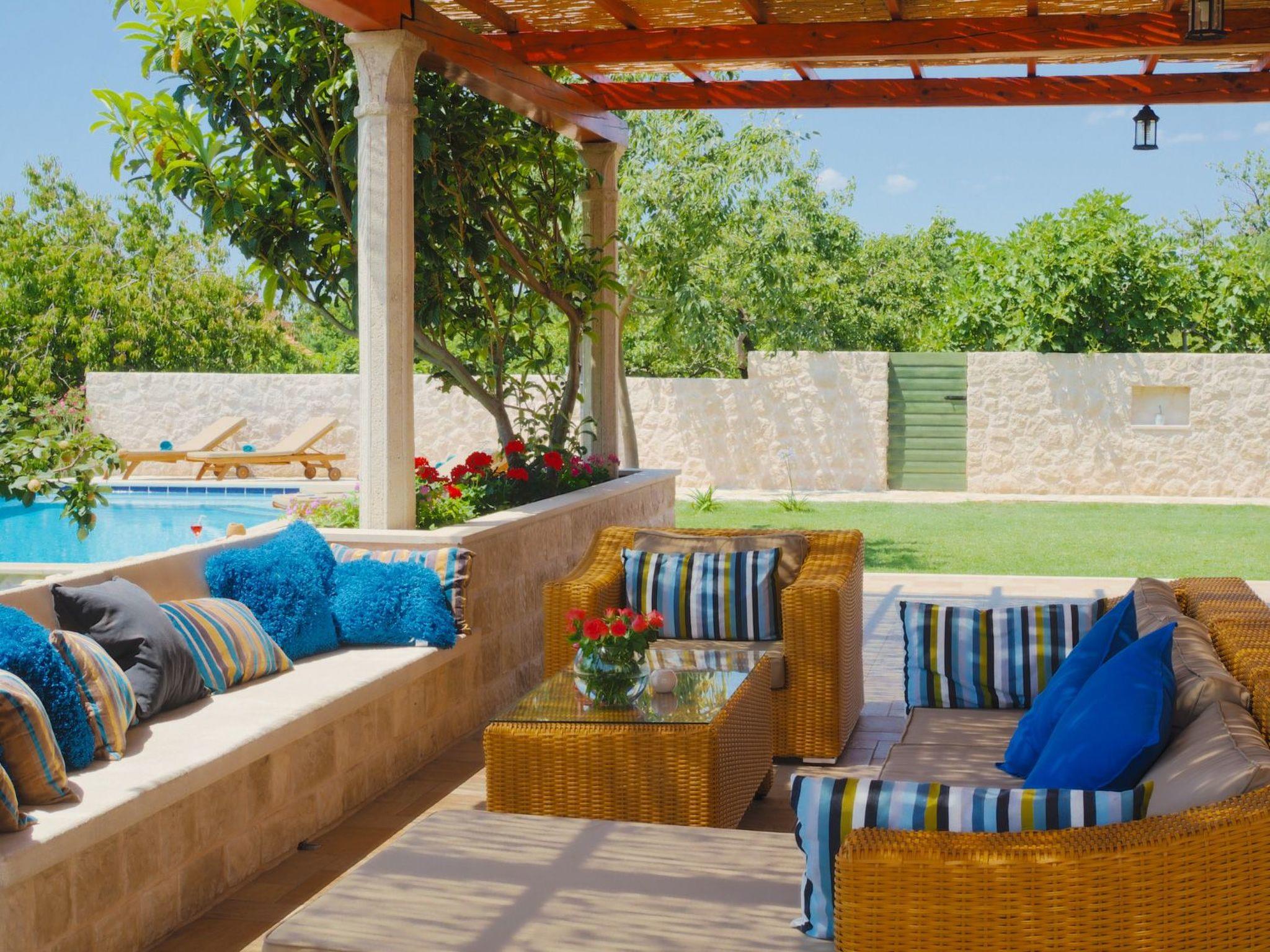 In front of the villa there is a big terrace, a 40 sqm private swimming pool, BBQ and garden with olive trees. The property is fenced so you have absolute privacy. The pool and the garden face south and thus provide sun all day long.