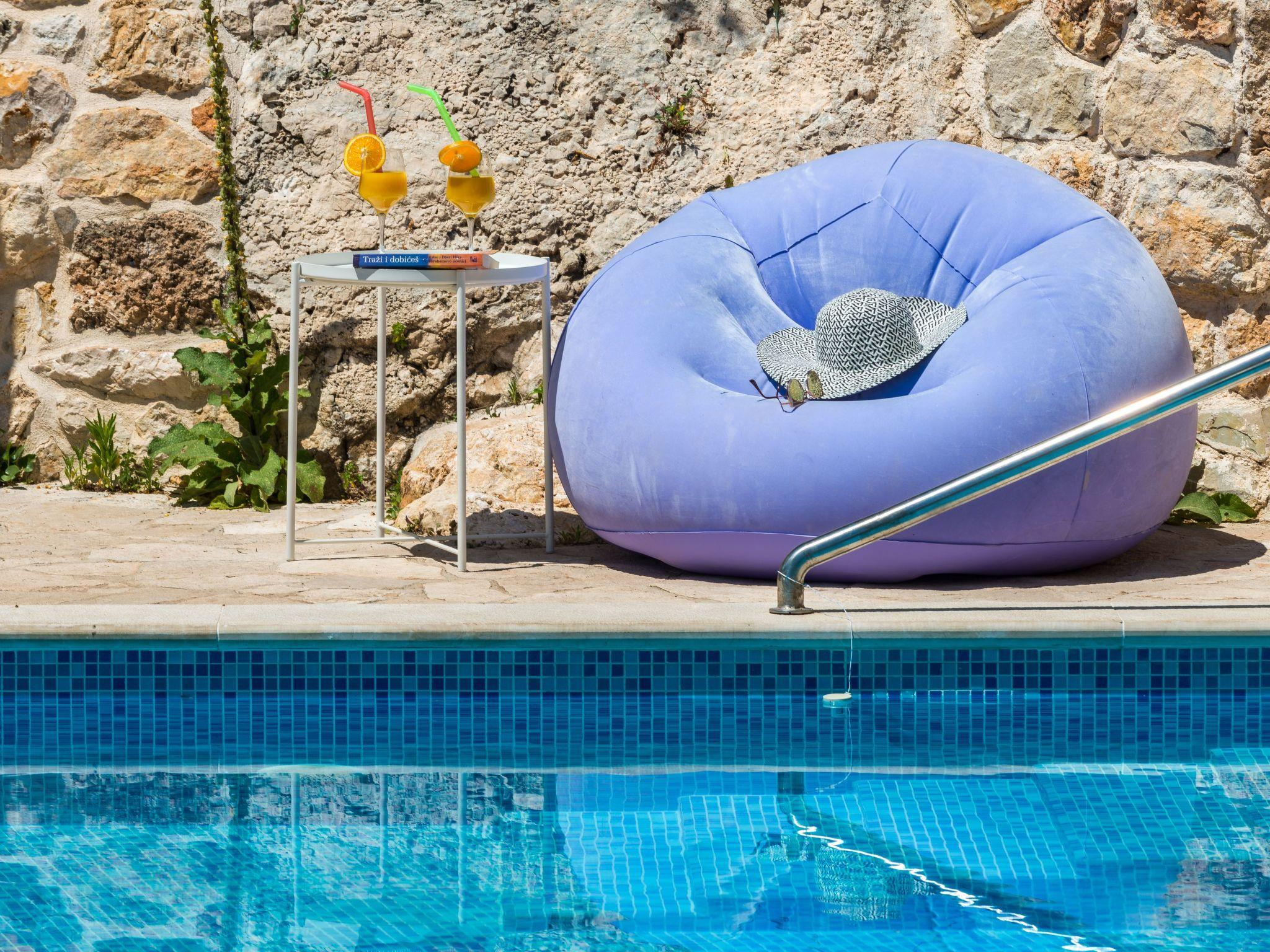 There is over 900m2 outdoor space, where you can enjoy in glorius swimming pool 10x4m which is heated,and lie on sun lounger on spacious terace around the pool. There are 9 sun loungers and park for kids with lot of content to play. With breathtaking views of the sea and the countryside, it is a perfect spot for lounging or entertaining.