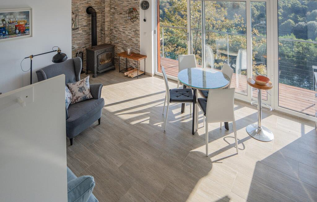 Glæd jer til en uforglemmelig ferie i dette skønne feriehus, der lægger op til jer afslapning og ny energi. Rejs hertil som par, en lille familie eller med venner og lad jeres hektiske ferie ligge bag jer. I kan nyde moderne indkvartering midt i idylliske omgivelser. Oplev komforten ved at bo med brændeovn, panoramavinduer og flotte møbler. Altanen udvider jeres opholdsrum udenfor. Slap af i boblebadet eller slap af på verandagyngen med fantastisk udsigt over floden. I kan også bruge saunaen efter at have gået de få meter ned til floden og taget en frisk svømmetur.