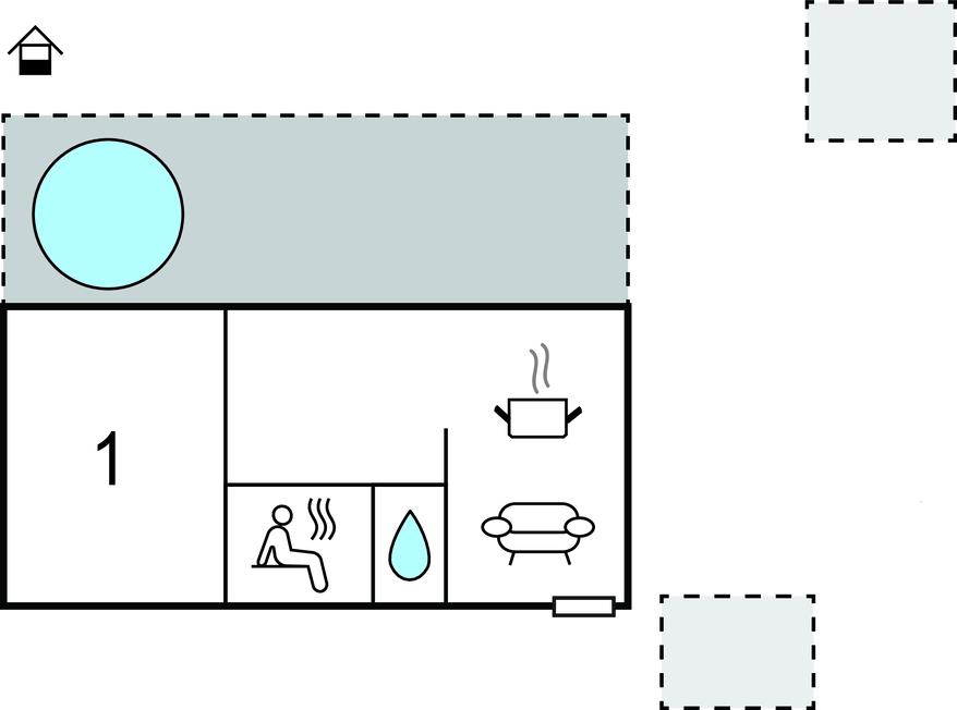Komb. spisestue/køkken 16m2 - 2 Sovepladser. (Sofa, madras eller lignende).