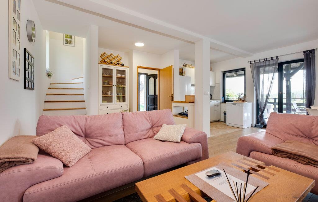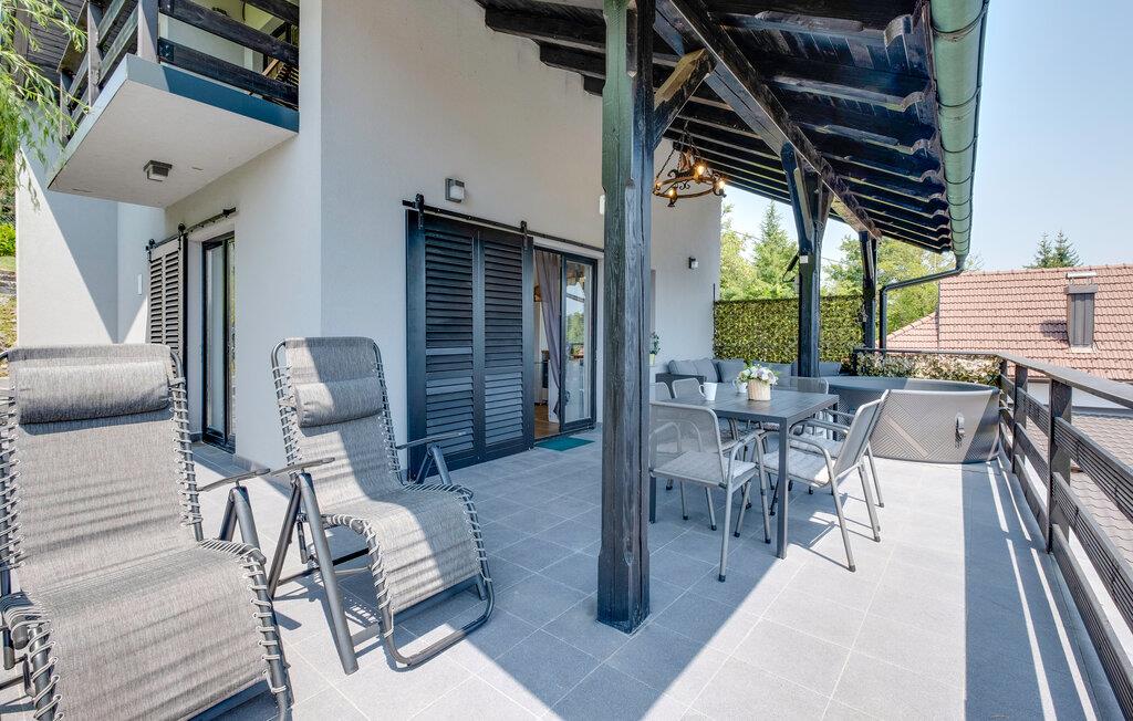 Slap af ved Mreznica-floden i dette smagfulde feriehus med spabad og sommerkøkken.