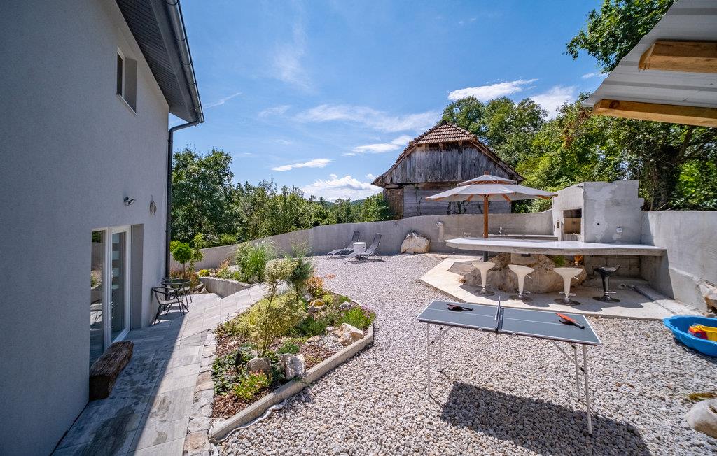 Dette moderne og luksuriøse feriehus byder dig velkommen nær Korana-floden. Velkommen til dette smukke og kvalitetshjem, der lover dig og dine kære en fantastisk ferie. Nyd den eksklusive indretning, smukke og indbydende design og alle bekvemmeligheder. Den store stue er det ideelle sted at mødes, nyde en pejs eller lave mad i køkkenet med et glas vin. Wellness er heller ikke forsømt. Du kan nyde saunaen og swimmingpoolen i huset på alle tider af året. Der er et ekstra spabad på terrassen, hvorfra du kan beundre den omkringliggende natur. En kort gåtur fører dig til floden, som også lover dig badehygge i idylliske omgivelser. Medbring dine fiskestænger og prøv lykken med at fange. Tag på ridning i nærheden, eller udforsk det smukke landskab med vandreture, gåture og cykling. Glæd dig til hvile og afslapning i dette smukke feriehus!