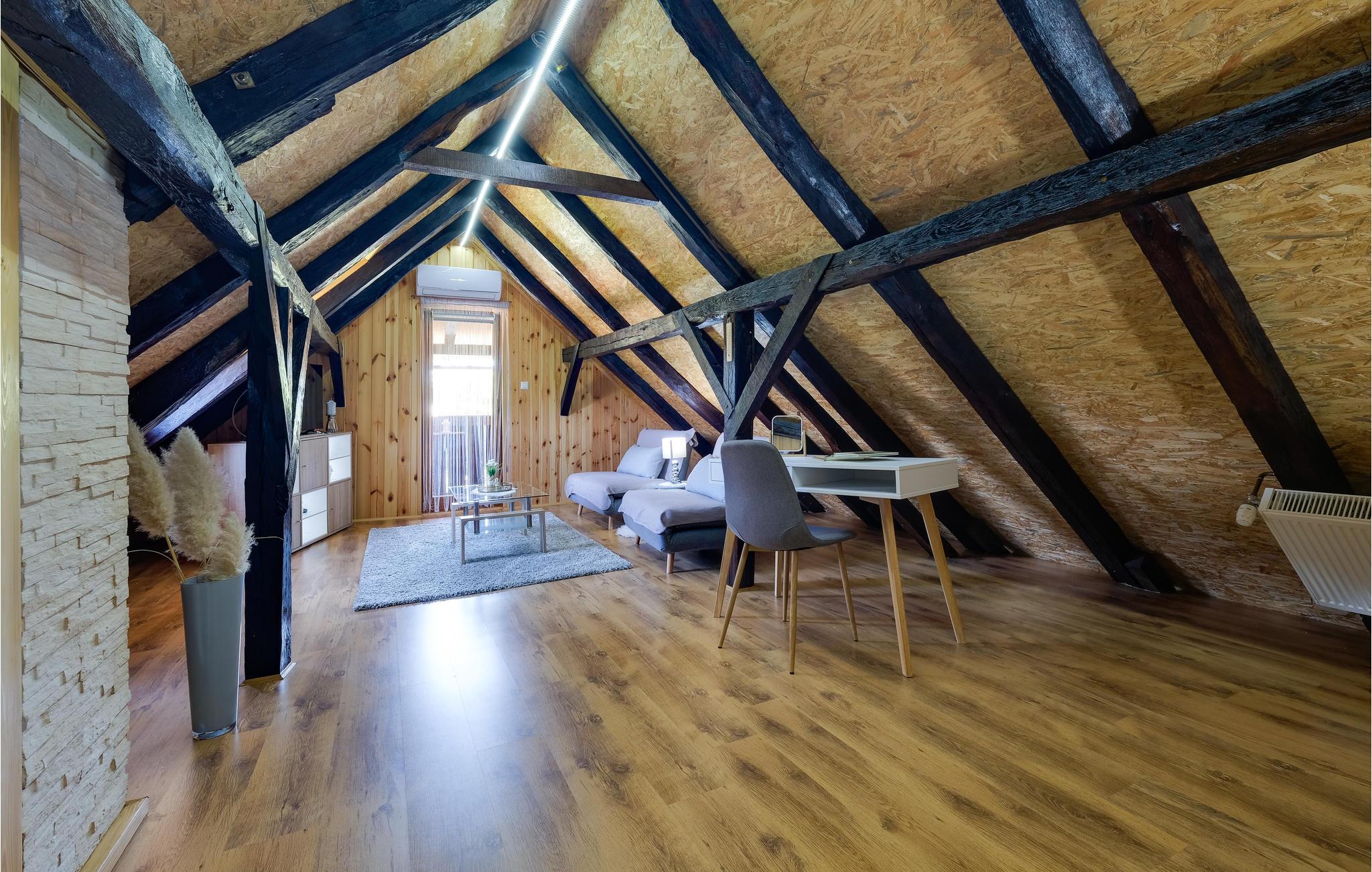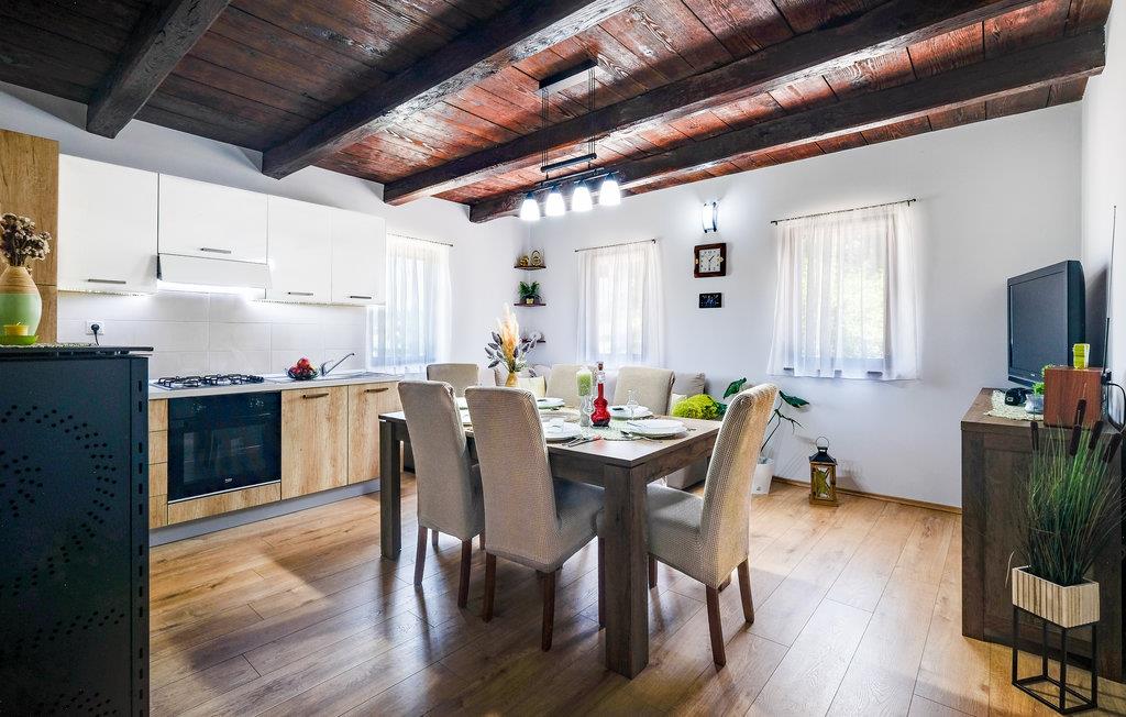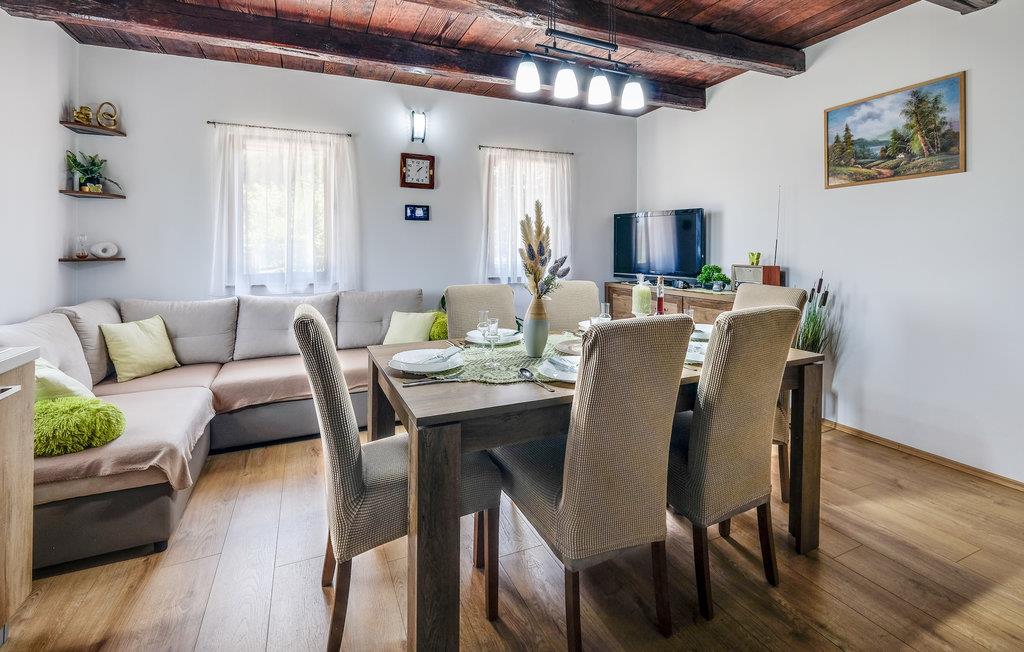Slap af i dette charmerende feriehus med pool og indbydende udendørsområde i smukke naturomgivelser. Undslip jeres hverdag og nyd dette hyggelige feriehus ved Mreznica-floden. På to etager kan I føle jer helt hjemme, slappe af i stuen og mødes. jeres børn kan tegne billeder ved spisebordet, mens I tryller i køkkenet eller slapper af i sofaen. Men den store, overdækkede terrasse er også det ideelle sted at blive hængende, bade eller grille sammen. jeres børn kan slippe dampen ud i haven og træne. Ikke langt fra feriehuset kan I nå floden Mreznica, hvor I kan bade og lege i det smukke vand. Lystfiskere kan også dyrke deres hobby her og eventuelt fange frisk fisk til grillaftenen. Nyd det grønne landskab, mens I vandrer og cykler, og vend tilbage til jeres hverdag afslappet og med ny energi!