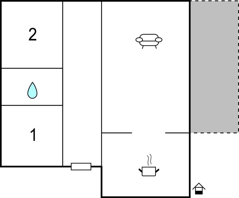 Opholdsstue/køkken 44m2 - 1 Soveplads. (Sofa, madras eller lignende).