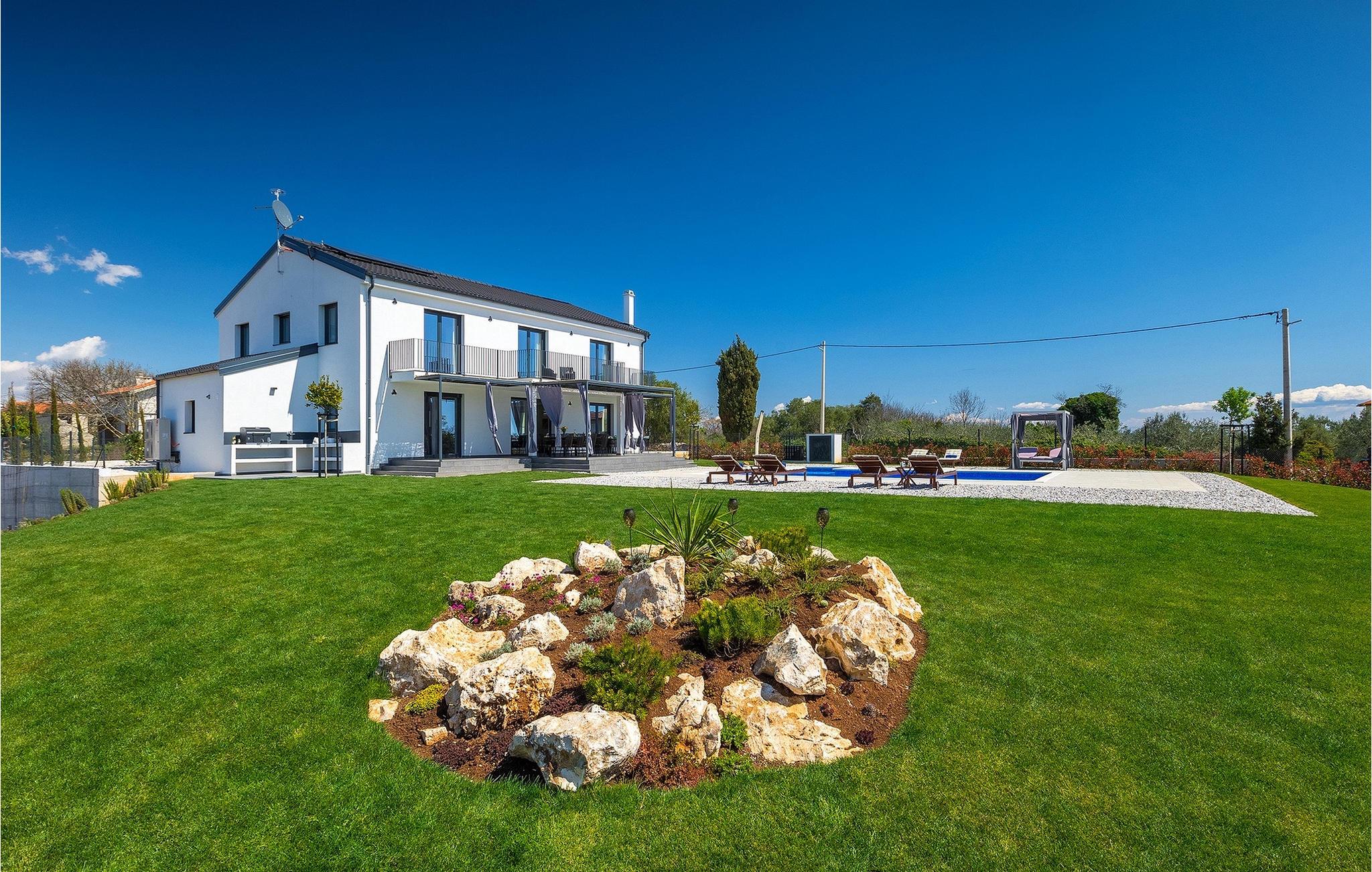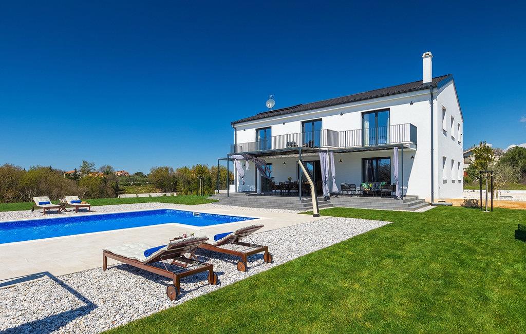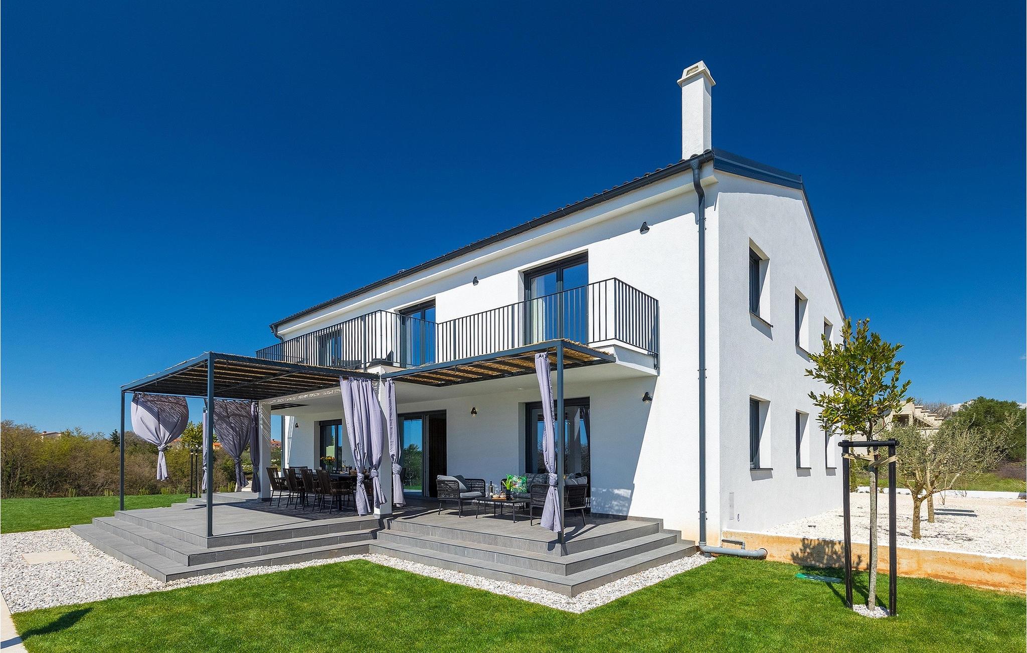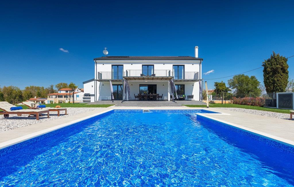I stueetagen af den fuldt klimatiserede villa finder du den rummelige opholdsstue, det fuldt udstyrede køkken, et stort spisebord til 10 personer, et separat toilet og et af de komfortable soveværelser med eget badeværelse. På det øverste niveau er der 4 mere komfortable soveværelser med deres egne moderne badeværelser. Fra den fælles balkon kan du nyde en vidunderlig udsigt over havet! Forkæl dig selv med en helt speciel ferie langt væk fra hverdagen. Glem alle dine bekymringer og nyd bare tiden i den smukke Villa Dolce Bacio med familie og venner!Den drømmeagtige Villa Dolce Bacio ligger i den lille landsby Kavran, på en lille bakke kun 18 km nord for Medulin. Langt væk fra turistforvirringen kan du nyde absolut ro her. Østkystens hav ligger kun 2 km fra villaen og byder på et flot udvalg af strande, hvor du kan nyde det krystalklare Adriaterhav. Drømmende bugter med klippekyster findes her samt børnevenlige strande. Turiststederne Medulin og Pula kan hurtigt nås med bil og tilbyder en bred vifte af aktiviteter - fra sport til kultur, gastronomi til eventyr ... Der er noget for enhver smag! Særligt anbefalet er den berømte arena i Pula eller de smukke strande, der strækker sig så langt som til Medulin. Planlæg en rideudflugt, en sejltur til Brijuni-øerne eller nyd lokale specialiteter såsom olivenolie og trøfler med udsigt over havnen i Pula og Adriaterhavet.