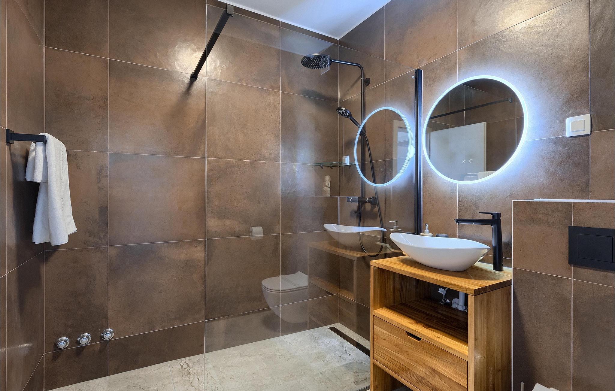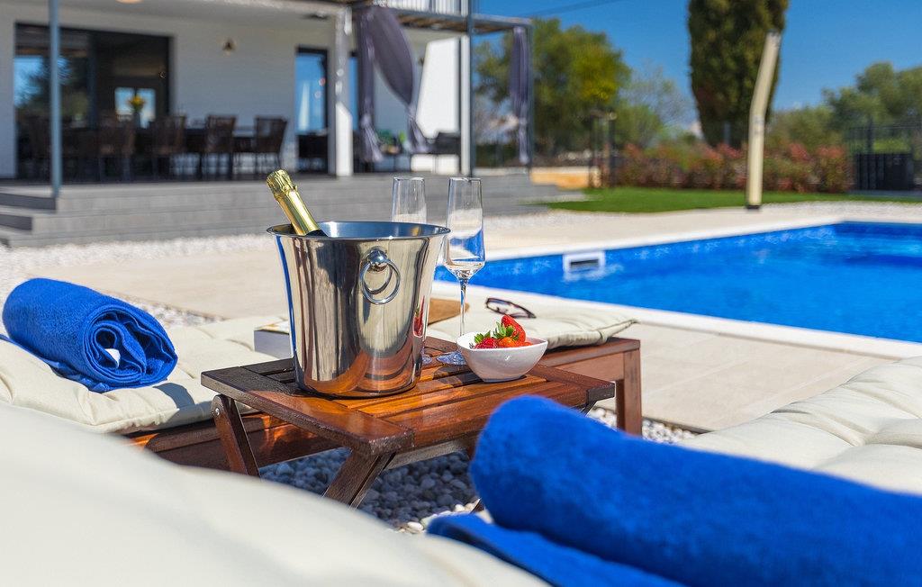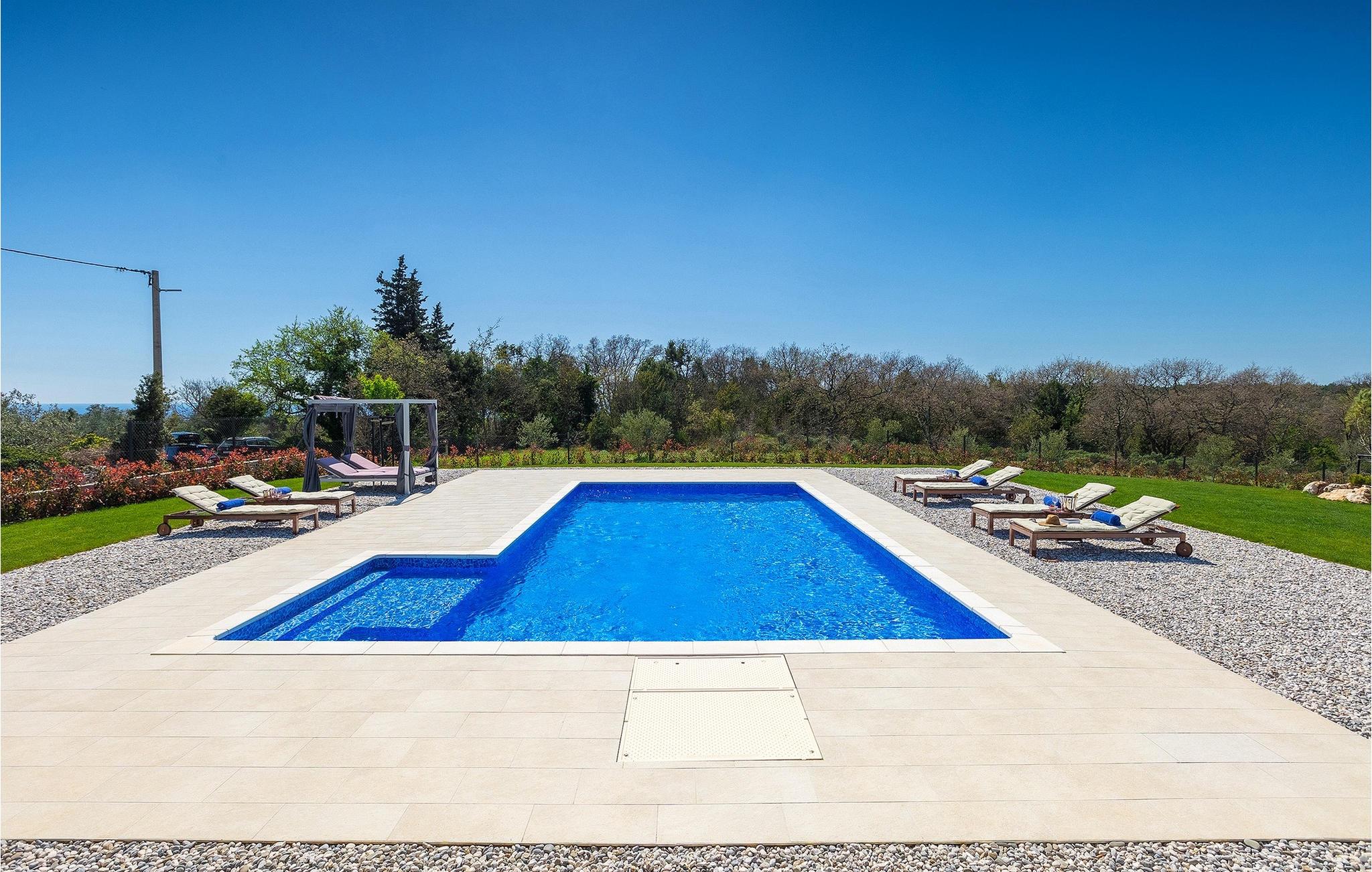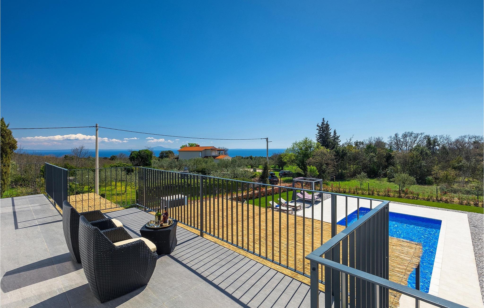 I stueetagen af den fuldt klimatiserede villa finder du den rummelige opholdsstue, det fuldt udstyrede køkken, et stort spisebord til 10 personer, et separat toilet og et af de komfortable soveværelser med eget badeværelse. På det øverste niveau er der 4 mere komfortable soveværelser med deres egne moderne badeværelser. Fra den fælles balkon kan du nyde en vidunderlig udsigt over havet! Forkæl dig selv med en helt speciel ferie langt væk fra hverdagen. Glem alle dine bekymringer og nyd bare tiden i den smukke Villa Dolce Bacio med familie og venner!Den drømmeagtige Villa Dolce Bacio ligger i den lille landsby Kavran, på en lille bakke kun 18 km nord for Medulin. Langt væk fra turistforvirringen kan du nyde absolut ro her. Østkystens hav ligger kun 2 km fra villaen og byder på et flot udvalg af strande, hvor du kan nyde det krystalklare Adriaterhav. Drømmende bugter med klippekyster findes her samt børnevenlige strande. Turiststederne Medulin og Pula kan hurtigt nås med bil og tilbyder en bred vifte af aktiviteter - fra sport til kultur, gastronomi til eventyr ... Der er noget for enhver smag! Særligt anbefalet er den berømte arena i Pula eller de smukke strande, der strækker sig så langt som til Medulin. Planlæg en rideudflugt, en sejltur til Brijuni-øerne eller nyd lokale specialiteter såsom olivenolie og trøfler med udsigt over havnen i Pula og Adriaterhavet.