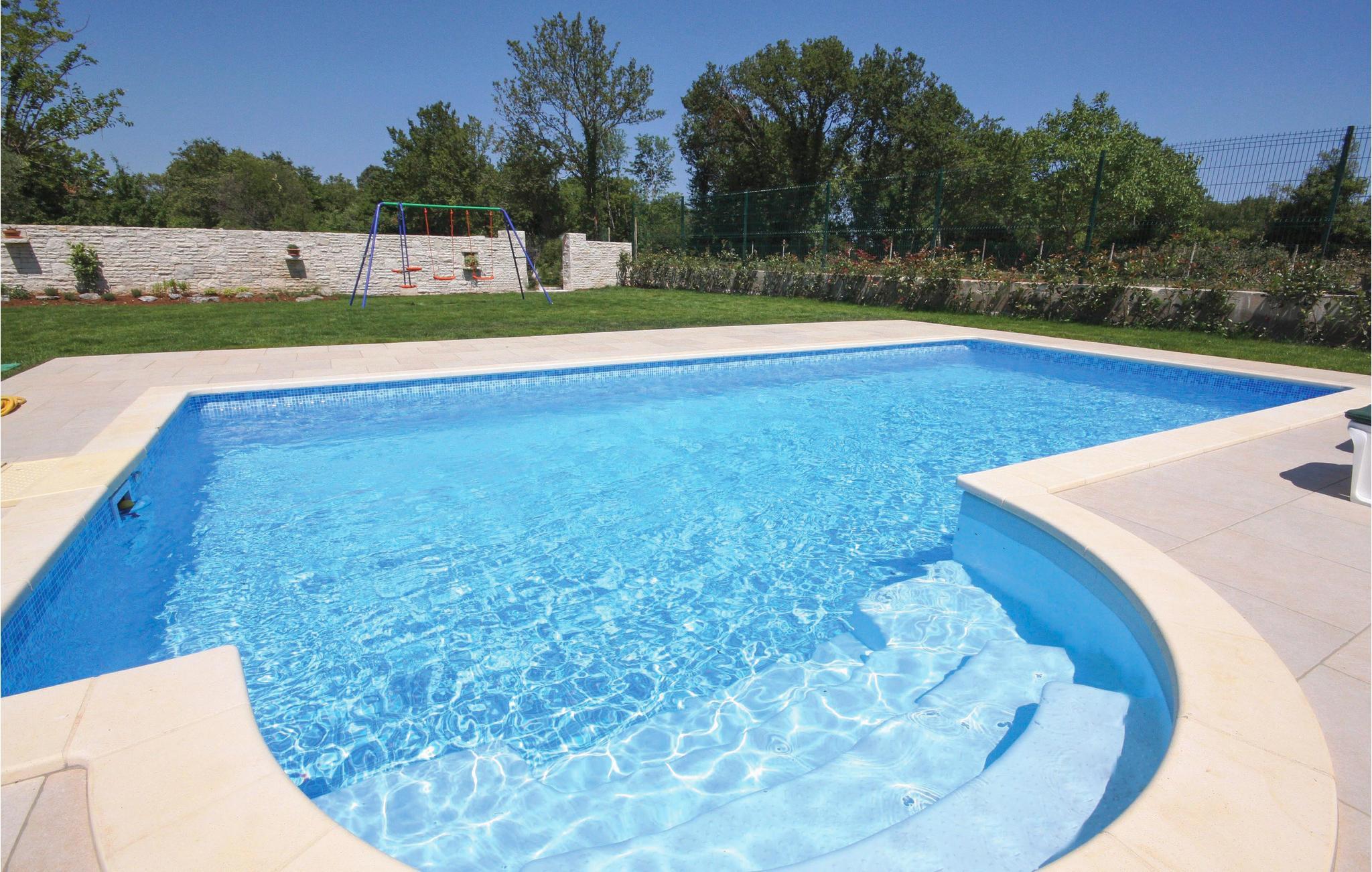 Dette rækkehus ligger i den lille istriske landsby Mali Vareski i nærheden af det berømte feriested Duga Uvala. Det er yderst velegnet til en rolig og afslappende ferie sammen med hele familien. Bagved huset ligger en del af den store grund med den skønne swimmingpool. En stentrappe er integraret i poolen så alle aldre har let adgang til en forfriskende svømmetur. Børnene kan hygge sig på gyngerne eller spille bold i haven. På den overdækkede terrasse kan I tilberede lækre retter til grillen og sidde til langt ud på aftenen og hygge jer. Etagerne i huset er forbundet via en indendørs trappe. I stueplan findes en stor opholdsstue med klimaanlæg samt tilhørende køkken. På første sal ligger to soverum, begge med klimaanlæg og eget badeværelse. Grunden der omkranser hele huset, og hvor der også findes parkeringspladser, er indhegnet. Der er kun få minutters kørsel til de skønne strande ved feriestedet Duga Uvala.