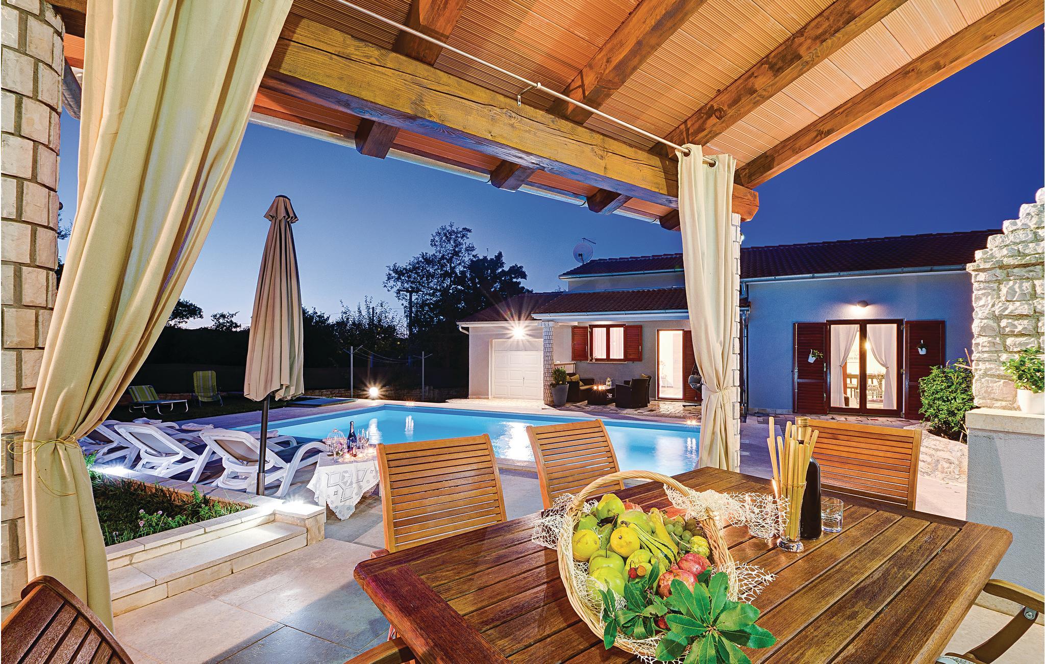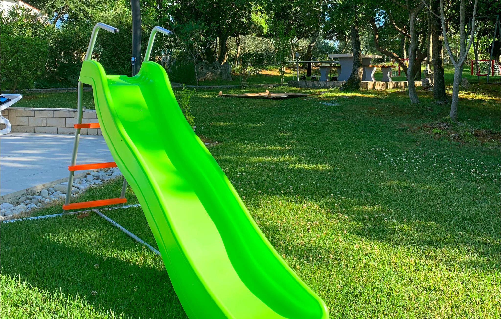 I den velplejede have kan dine børn lege ubekymret og have det sjovt udendørs. Her er der underholdning med blandt andet trampolin, gynger og bordtennis. Feriehusets interiør er veludstyret og behageligt, ligesom de to terrasser, hvor I komfortabelt kan drikke jeres morgenkaffe eller et glas vin om aftenen. I kan finde forfriskninger fra sommervarmen i poolen eller på en af ??de smukke strande i Duga Uvala.
