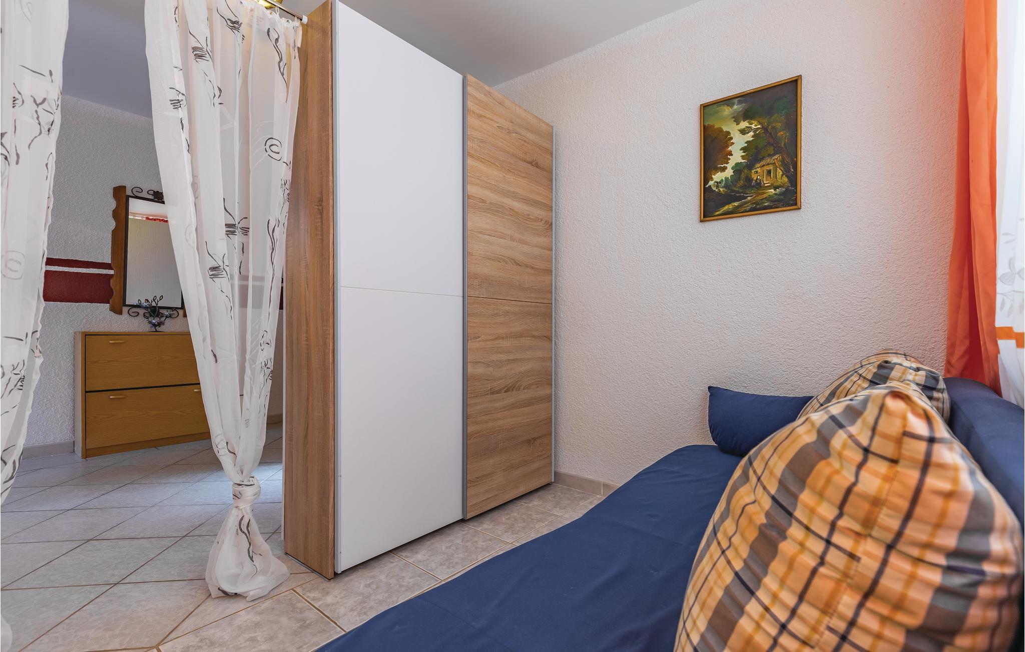 Denne ferielejlighed ligger i stueplan i en dejlig familieejendom. I huset er der tre soveværelser, hvoraf det ene er gennemgangsrum. Den rummelige terrasse indbyder til dagens første kop kaffe og aftenens sidste kølige glas vin. De sidste ca. 400 m af vejen op til huset er ikke asfalteret. Et perfekt feriemil til en ferie langt væk fra byens larm og til vandringer i det idylliske landskab. Feriebyen Duga Uvala med skønne strande ligger få meter væk i bil. Gå ture eller cykl for at lære de smukke omgivelser at kende og besøg også byer som Fazana, Nationalparken Brijuni, Pula, Naturpark Kamenjak og Rovinj.
