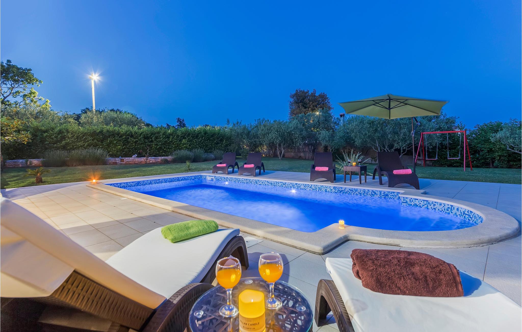 Dette dejlige feriehus ligger i den lille by Peruški ikke langt fra havet. Huset består af to boenheder, som er forbundet med indvendige trapper. Oplev et behageligt ophold i disse smukke og komfortabelt indrettede boliger. Ferieboligen har en stor grund, der er ideel for dine børns leg. Slap af ved poolen og solbad.