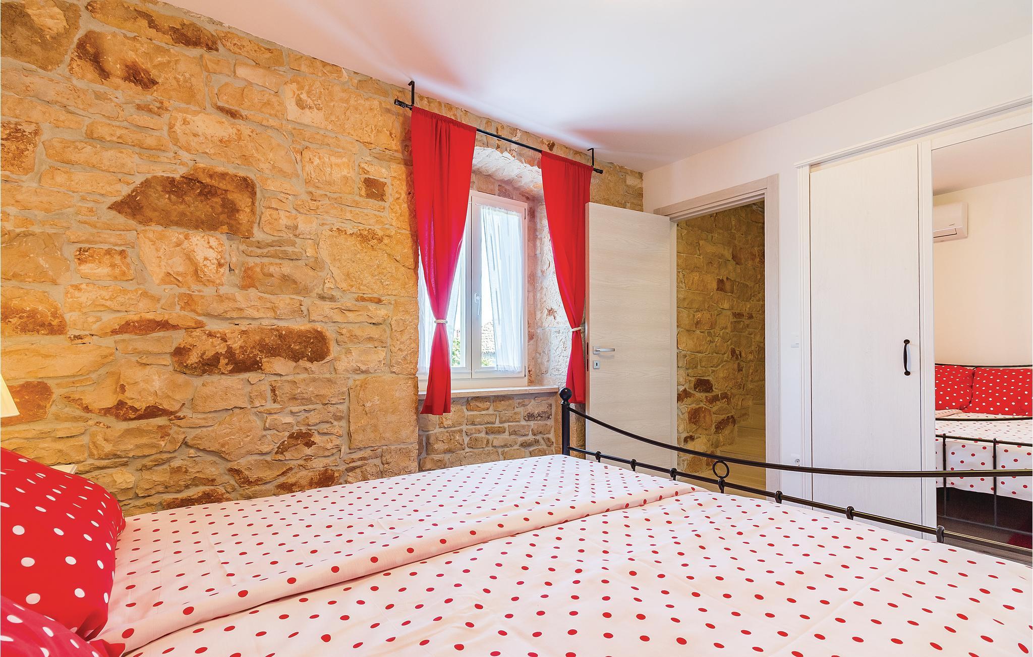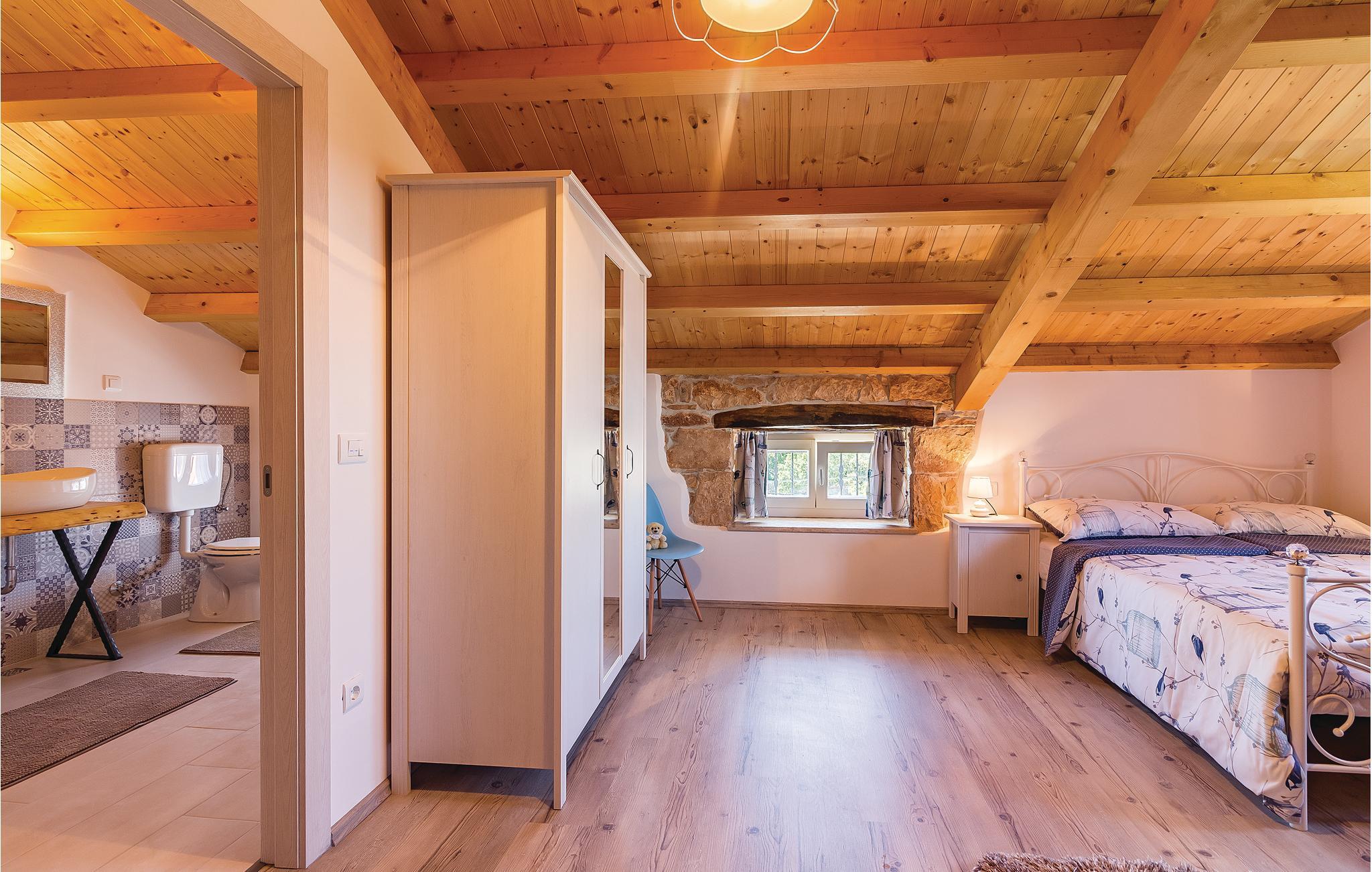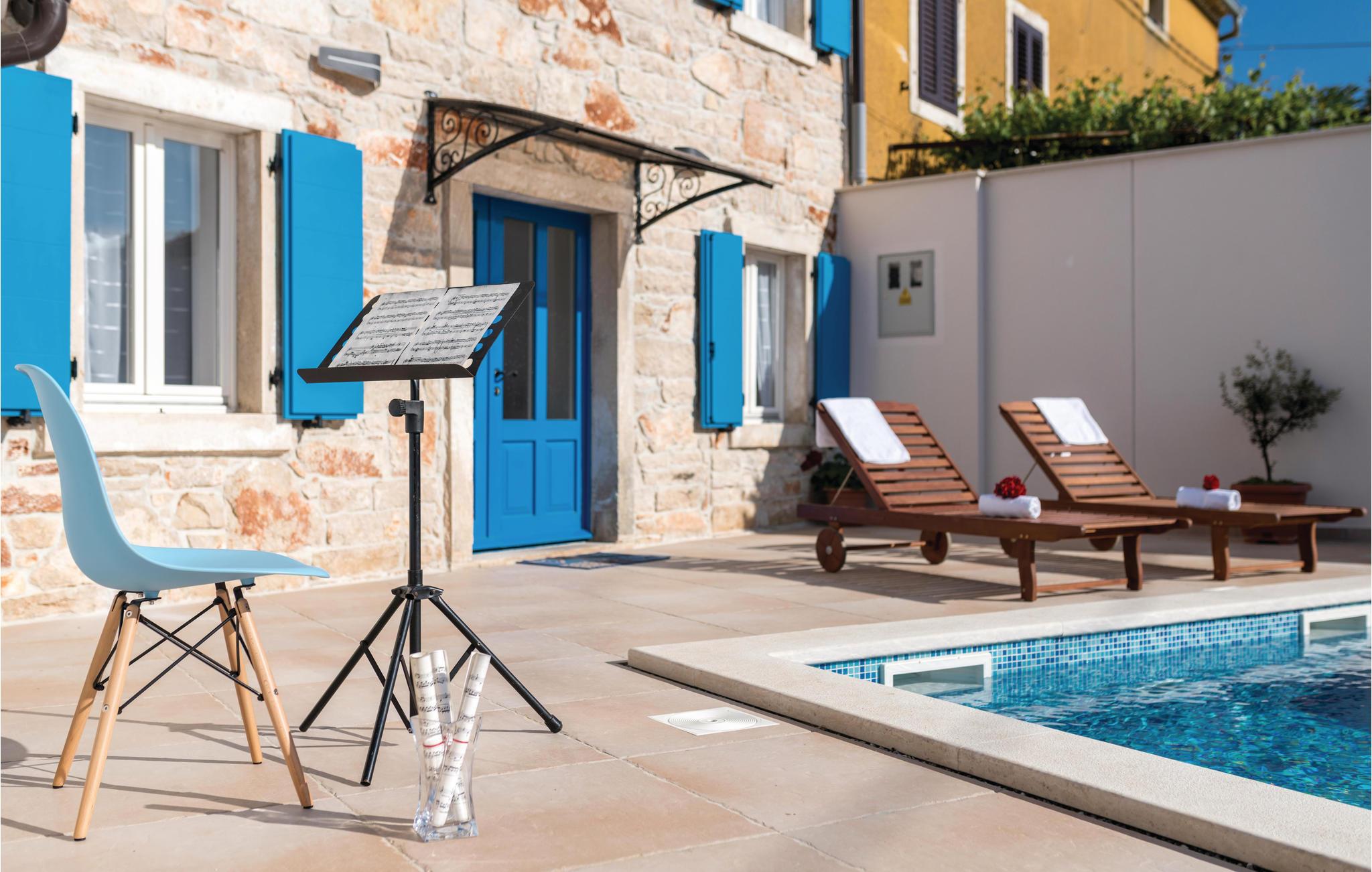 I den lille by Peruski ligger dette autentiske feriehus. Det er renoveret og sat i stand så det byder på smukke rammer for jeres ferie. På den indhegnede grund befinder der sig en dejlig pool og en overdækket terrasse, som er ideel til hyggeligt samvær ved grillen. Væggene skråner fra 100 cm fra gulvet. Peruski har dejlige strande hvor man kan bade i det krystalklare hav, men gå ikke glip af et besøg i den betagende by Pula med de mange romerske seværdigheder.