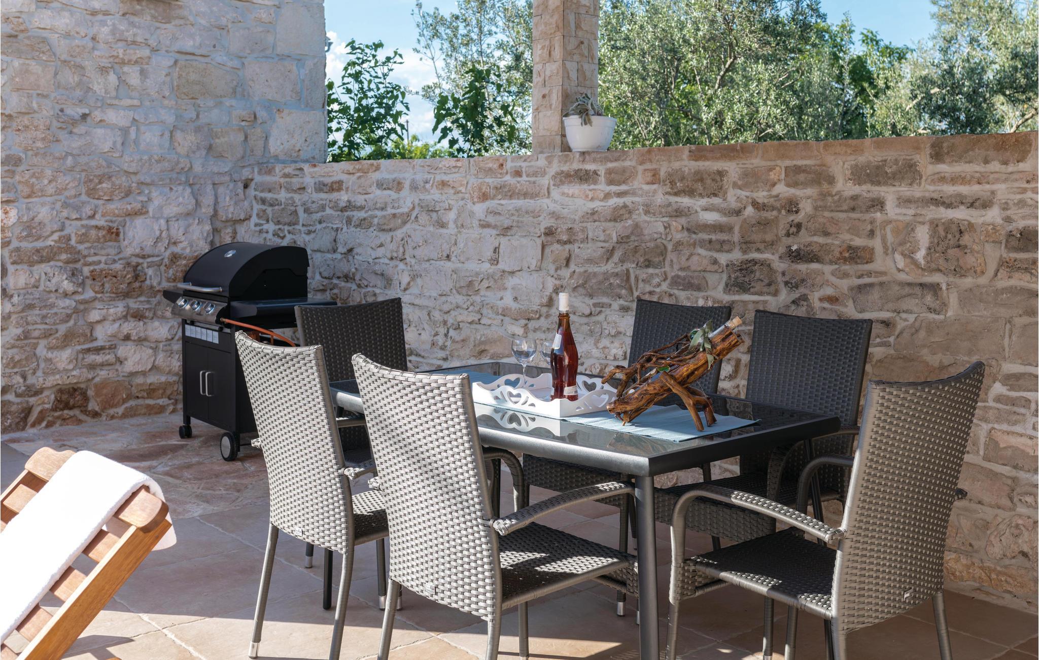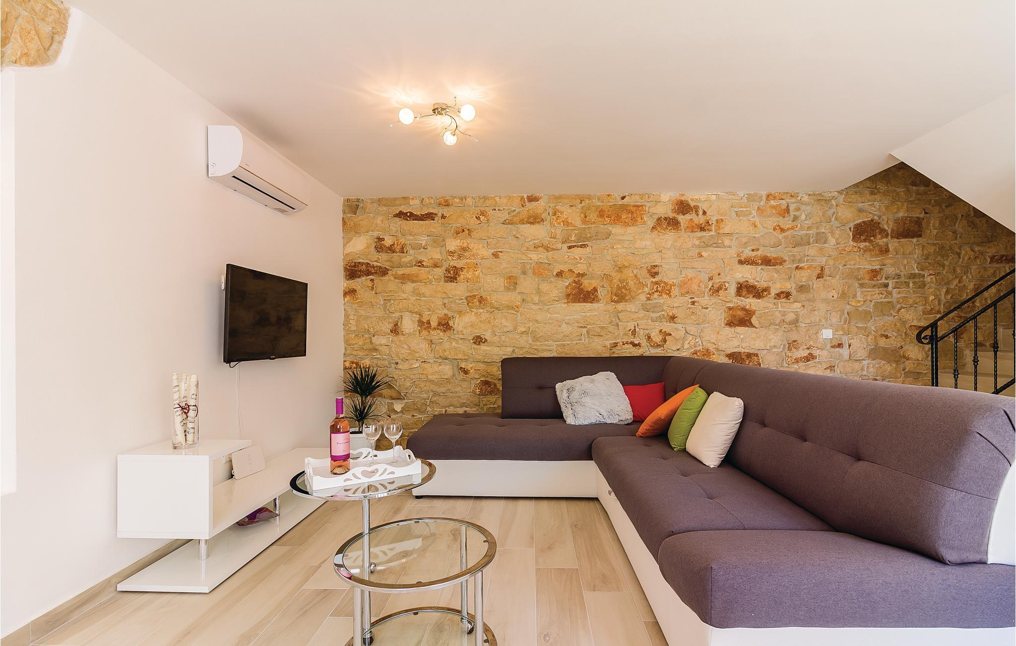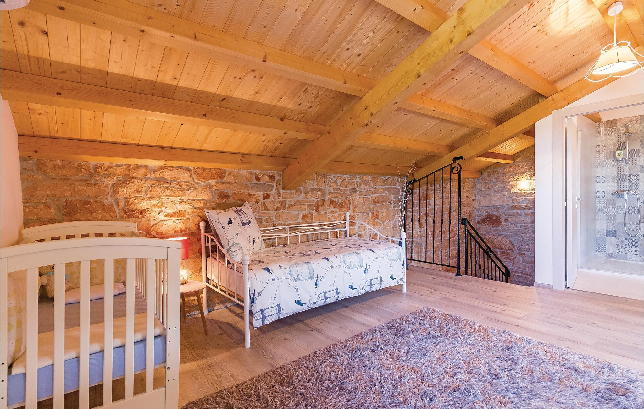 I den lille by Peruski ligger dette autentiske feriehus. Det er renoveret og sat i stand så det byder på smukke rammer for jeres ferie. På den indhegnede grund befinder der sig en dejlig pool og en overdækket terrasse, som er ideel til hyggeligt samvær ved grillen. Væggene skråner fra 100 cm fra gulvet. Peruski har dejlige strande hvor man kan bade i det krystalklare hav, men gå ikke glip af et besøg i den betagende by Pula med de mange romerske seværdigheder.
