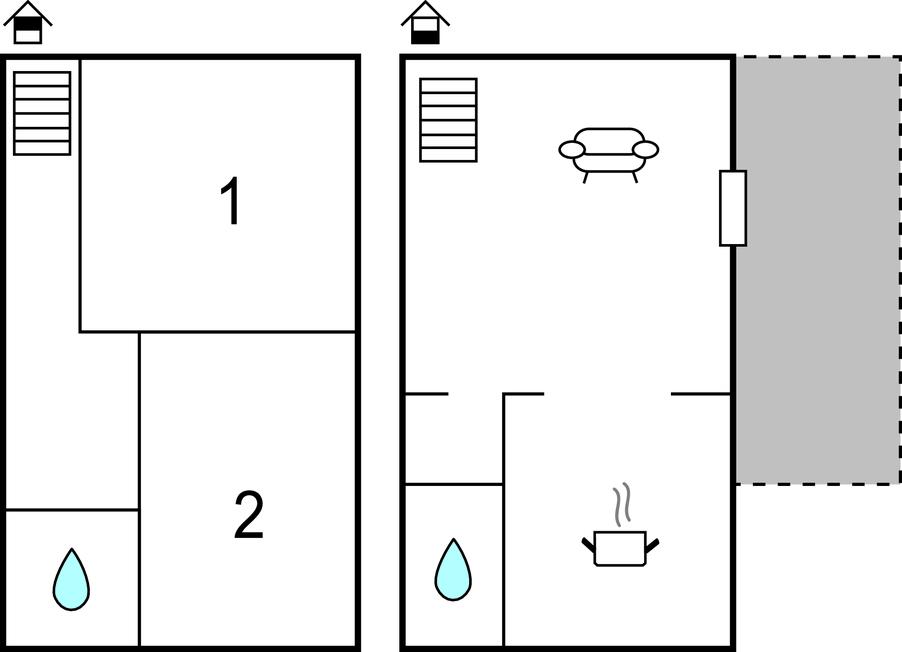 Soveværelse (nr. 1) - 1 Soveplads. (Enkeltseng(e)). 2 Sovepladser. (Dobbeltseng(e)).