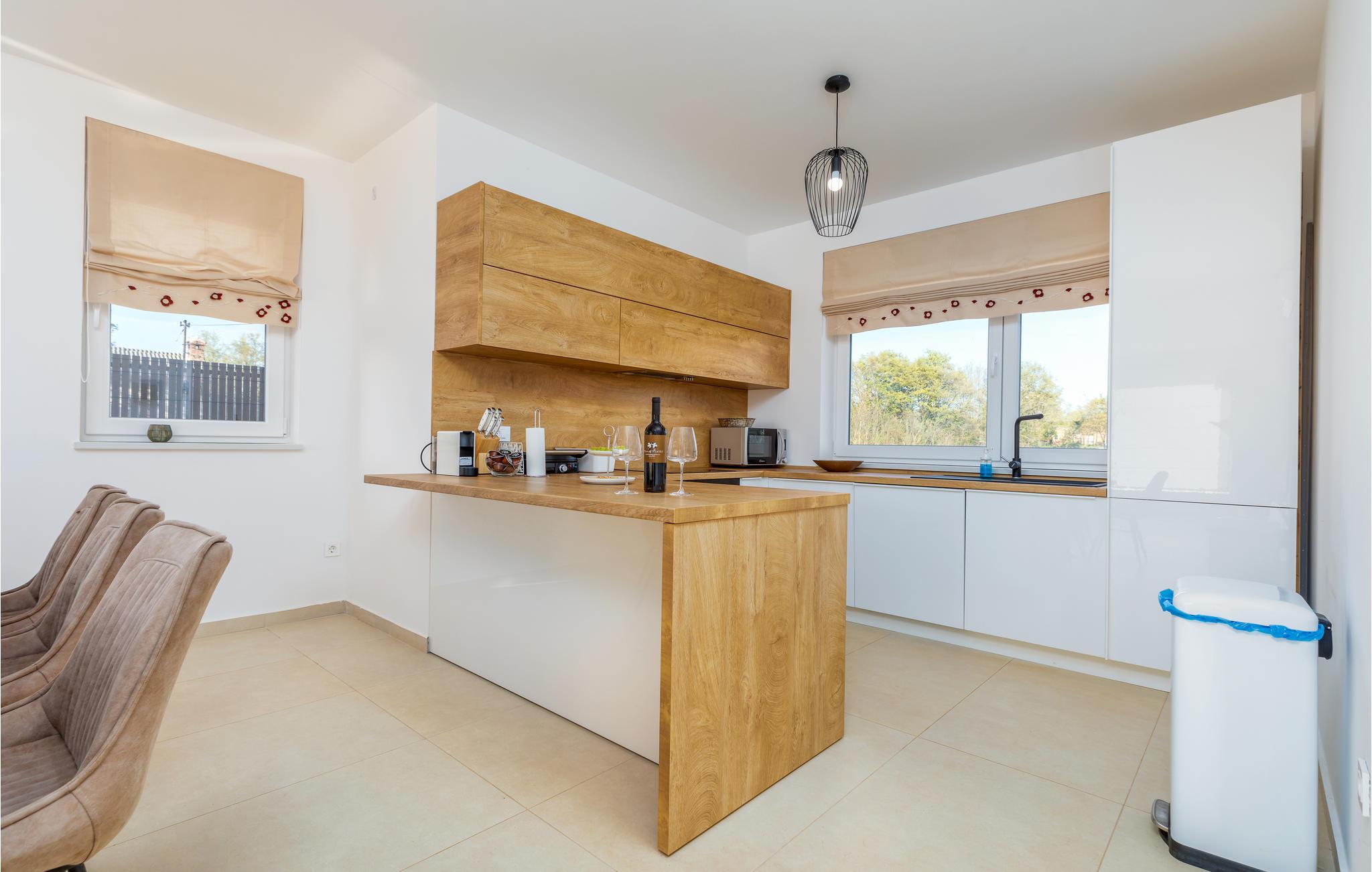 Det moderne interiør og komfortable møbler sikrer en afslappende ferie i dette smukke hus. Huset strækker sig over en rummelig stueetage med stue, køkken og toilet. På første sal finder du et soveværelse og badeværelse.
