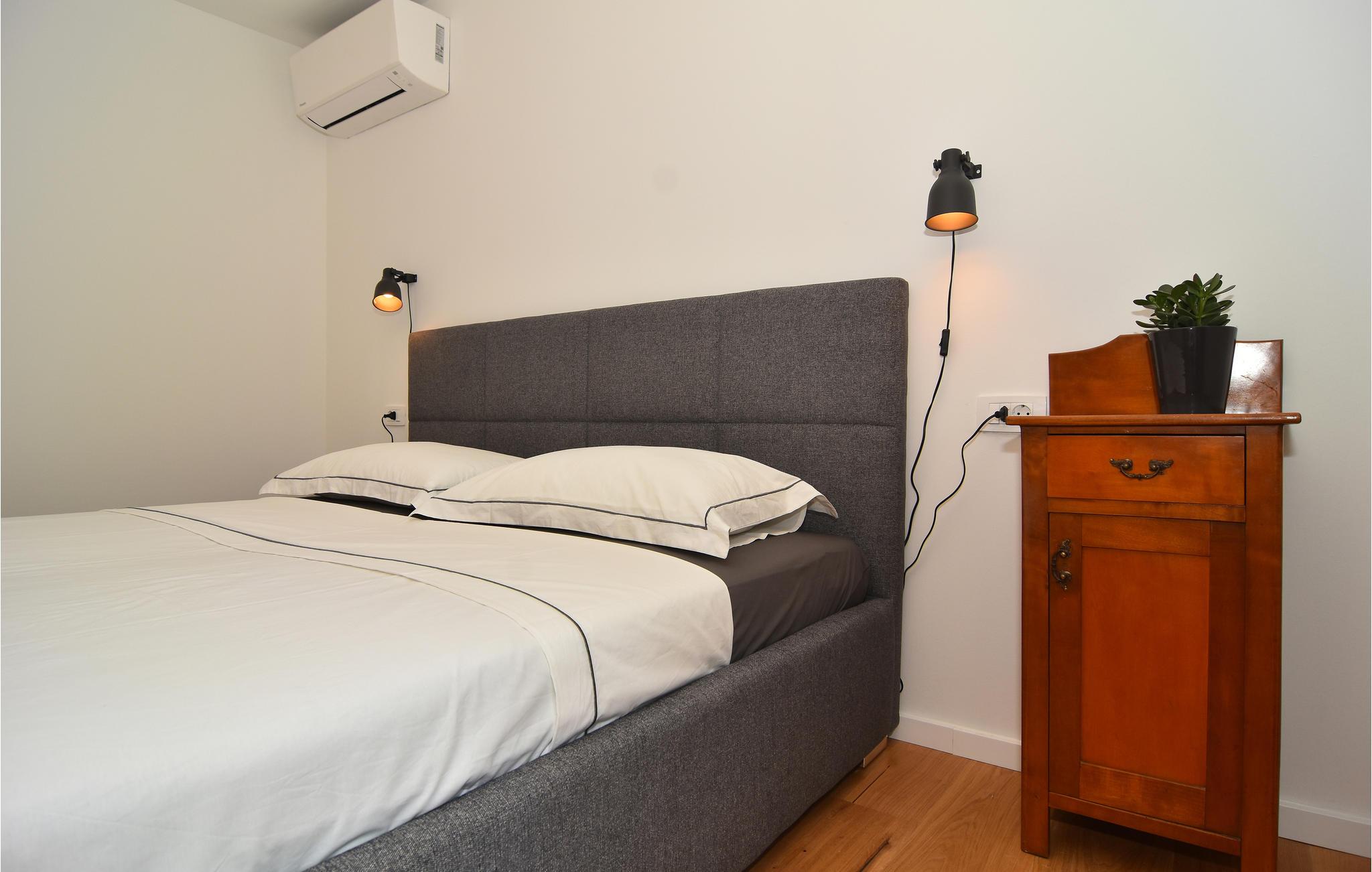 Dette store og komfortable feriehus nær havet byder dig velkommen på øen Dugi. Du har fundet din oase af ro her! Sammen med din udvidede familie eller par, du er venner med, kan du finde dig tilpas i huset i stueetagen. Husets konstruktion er atypisk for Kroatien, men giver dig masser af lysindfald og en smuk udsigt over landskabet gennem de store vinduespartier. I huset finder du behagelig komfort og alt hvad du behøver for en afslappende ferie. Udover et flygel, hvor du kan give aftenkoncerter, byder aktivitetsrummet med billard på underholdning. Herfra kan du også træde ud til det overdækkede poolområde og forfriske dig. Nyd den rolige beliggenhed på øen, omgivet af grønne områder og urtedufte. Udforsk øen til fods eller med dine cykler og dvæle ved de smukke, forskelligartede strande og dyk ned i det krystalklare hav. Du kan også udforske øens klipper eller fange aftensmaden med en fiskestang. Slap af i dette store hus, ideelt til et stort antal mennesker og giver dig maksimal hvile. Hav det sjovt!