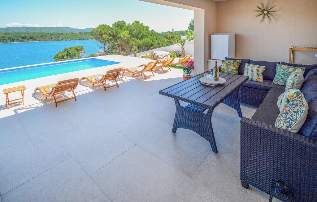 Dette skønne feriehus med infinity-pool ligger til en vidunderlig beliggenhed ved havet. En ferie fuld af fred og komfort venter jer i dette lyse og indbydende feriehus på Dugi Otok. Den venlige atmosfære i de lyse rum og den stilfulde indretning skaber øjeblikkeligt en følelse af hjem. Den hyggelige kakkelovn i stuen sikrer komfort selv på kølige aftener, mens de komfortable soveværelser garanterer en afslappende søvn. I kan tilbringe afslappende timer på verandaen med køleskab, mens I nyder den betagende havudsigt - infinity-poolen byder på et særligt strejf af luksus. Grill om aftenen og nyd fantastiske solnedgange i det fri. Veli Rat er et malerisk sted, der vil fortrylle jer med uberørt natur og krystalklart vand. området lægger op til at tilbringe afslappende dage på stranden og udforske. Oplev det berømte Veli Rat fyrtårn eller tag bådture til skjulte bugter og idylliske øer. Aktive feriegæster får noget for pengene med dykning, snorkling og vandreture. I kan også nyde de lokale specialiteter i regionens charmerende restauranter - et paradis for friluftsmennesker og dem, der søger fred og ro.
