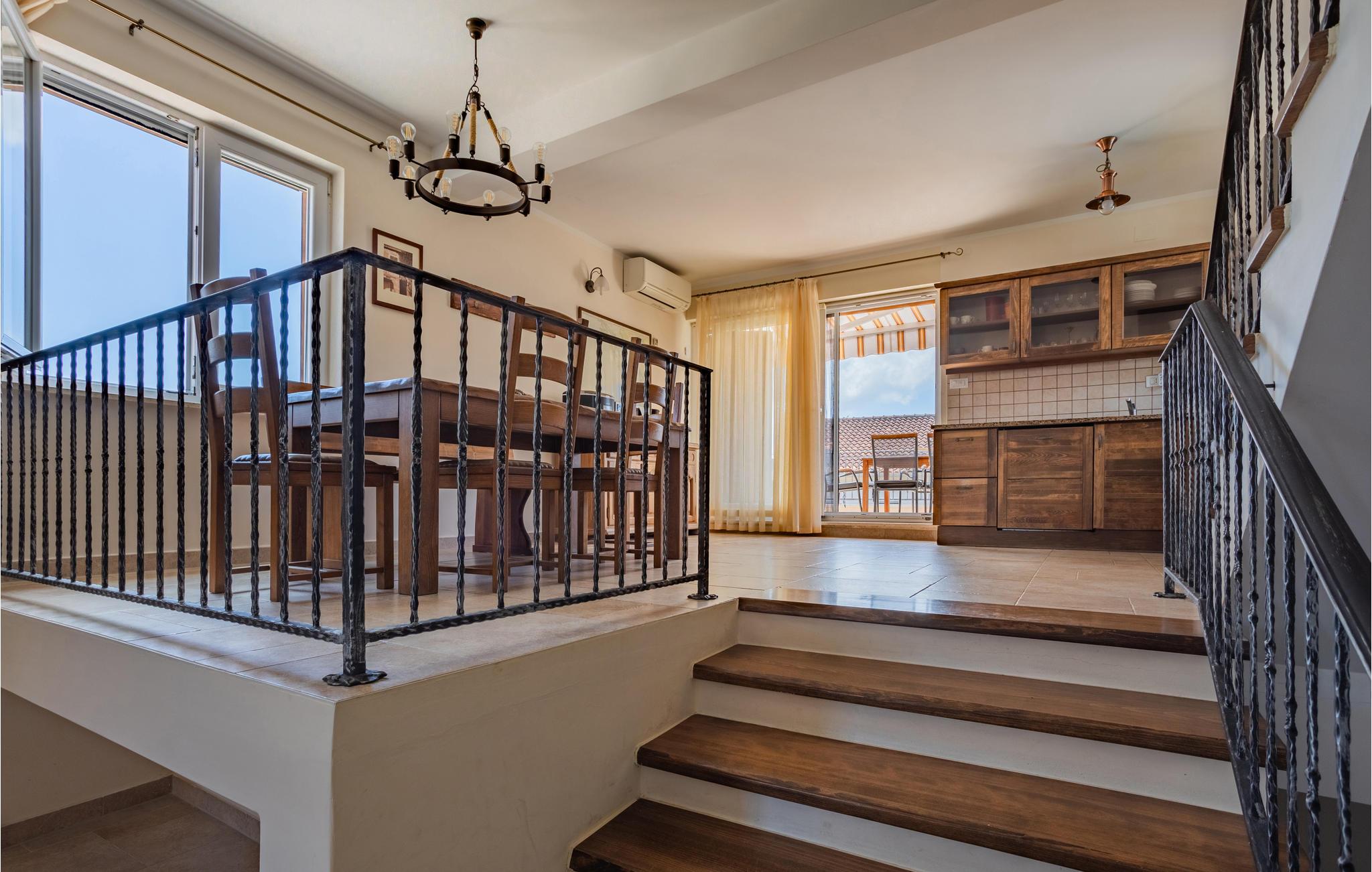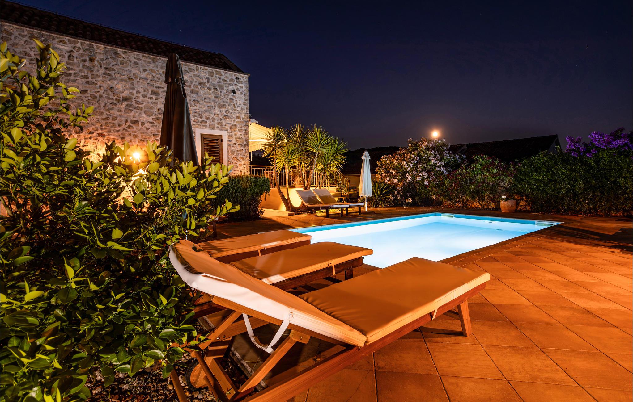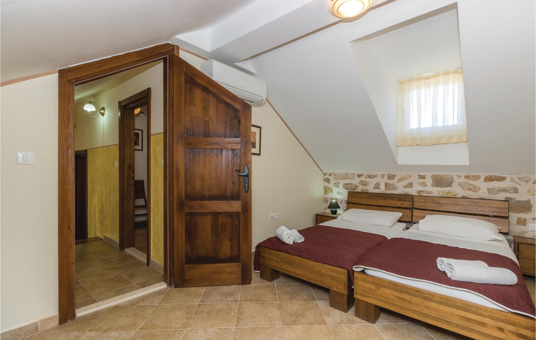 Vælg dette hus, hvis I er på jagt efter et hus i Zmag der egner sig til en afslappet ferie. Her er tre boligenheder der er forbundet via udendørs trappe. Laveste loftshøjde på øverste etage er 1 meter. Feriehuset er velegnet til ferie for flere familier eller for en gruppe venner. Her er også en dejlig terrasse med grill, der indbyder til hyggelige fælles udendørs timer. Når det er rigtigt varmt, så hop i husets pool, til en opfriskende svømmetur. Vil I bade i havet, så tag til øens nordside hvor de bedste strande findes. Her kan I tilbringe herlige lange og afslappede feriedage - med pauser i det behagelige Adriaterhav.