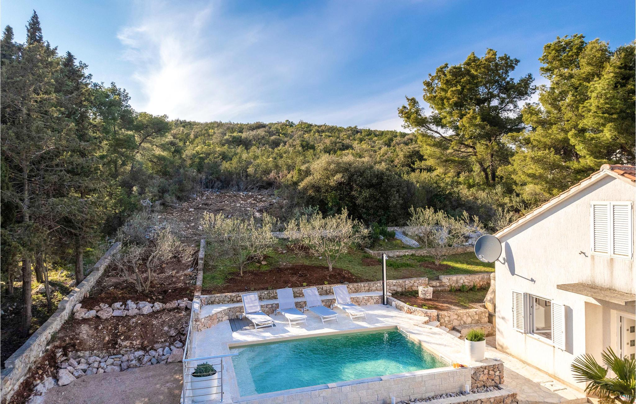 Dette charmerende feriehus er beliggende direkte ud til vandet og omgivet af fyrreskov. Her bor I i den lille landsby Zman Sali, hvor alt summer af idyllisk middelhavsatmosfære. Det er det perfekte sted til en afslappende ferie langt væk fra byens støj og stress. Husets indretning og møblering er komfortabel og funktionel. Den imponerende havvendte terrasse er et skønt sted at nyde morgenkaffen eller et glas vin ved solnedgangen. Besøg også sandstranden Sakarun på den nordlige del af øen - en af de smukkeste strande ved Adriaterhavet. Det kan varmt anbefales at tage en bådtur ud til den vidunderlige nationalpark Kornatiøerne, som omfatter hele 89 øer og rev, og ligger mellem øerne Dugi Otok og Žirje.