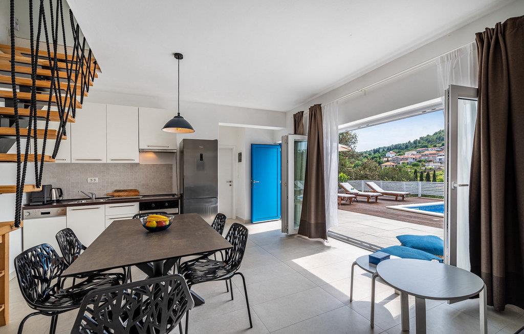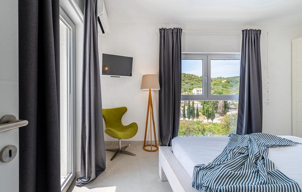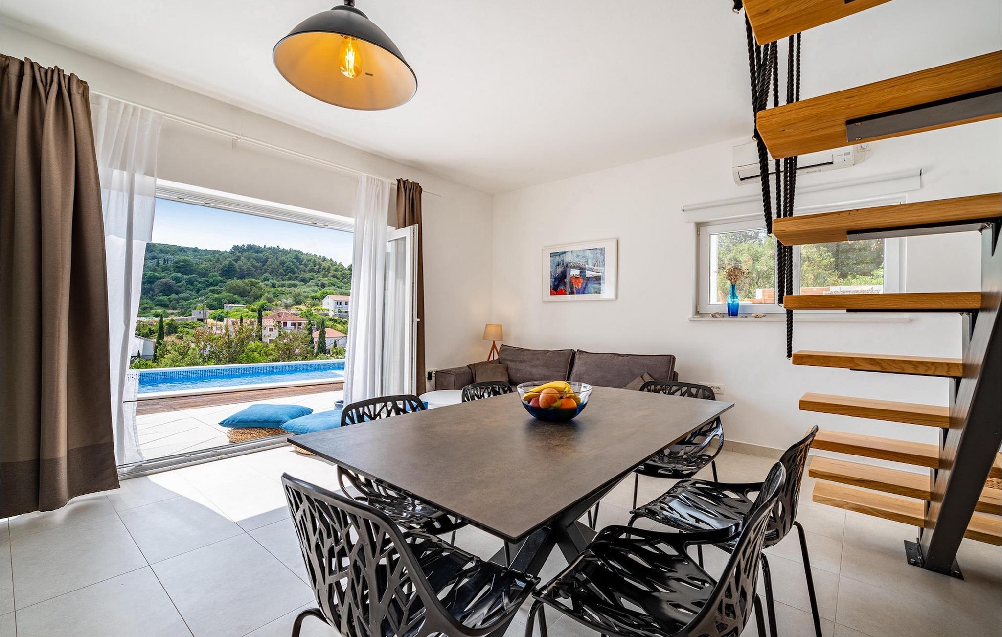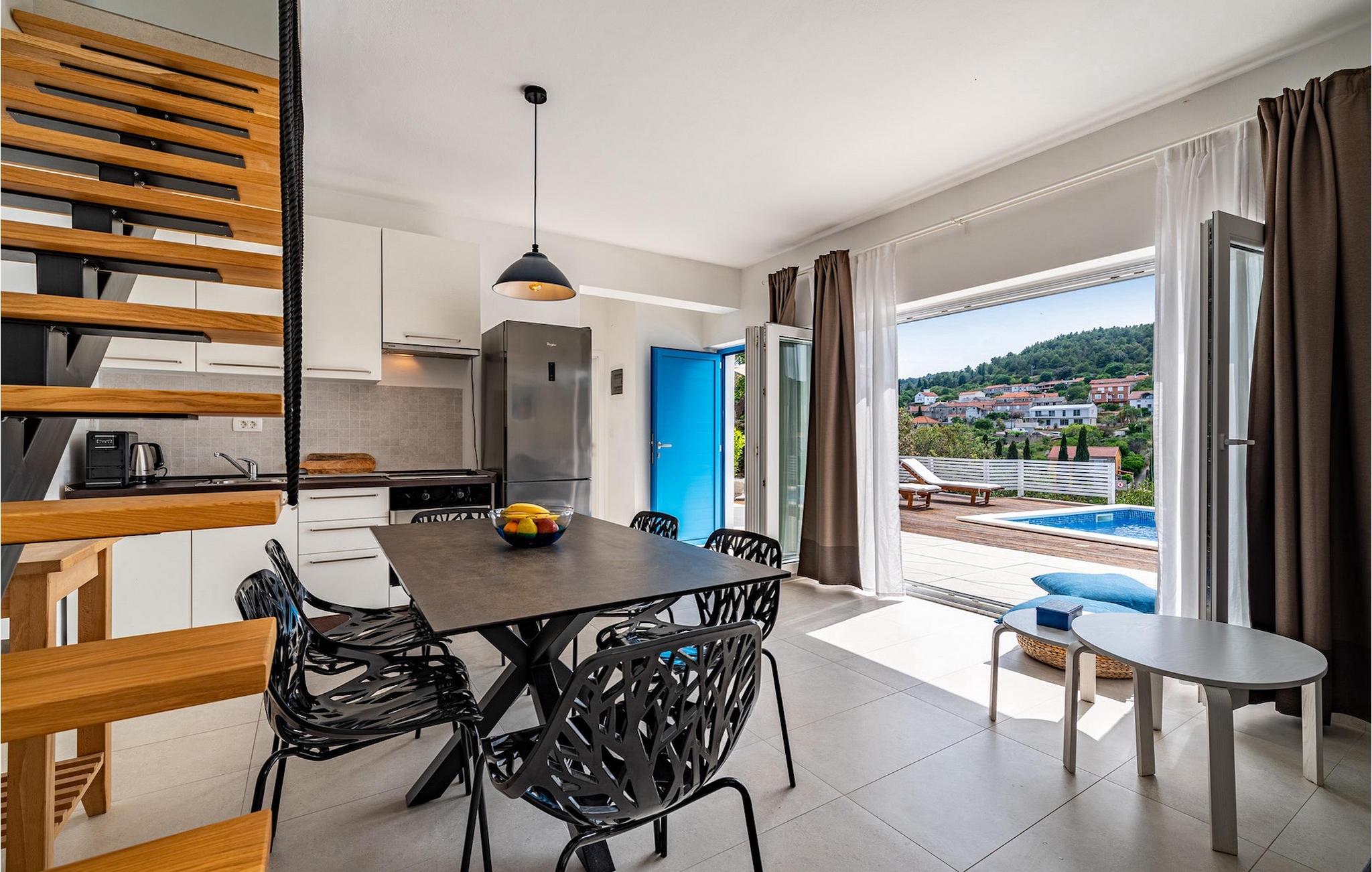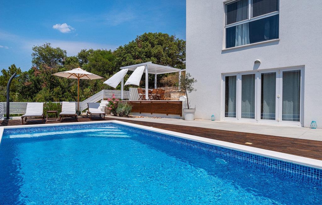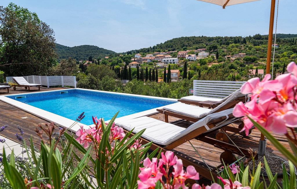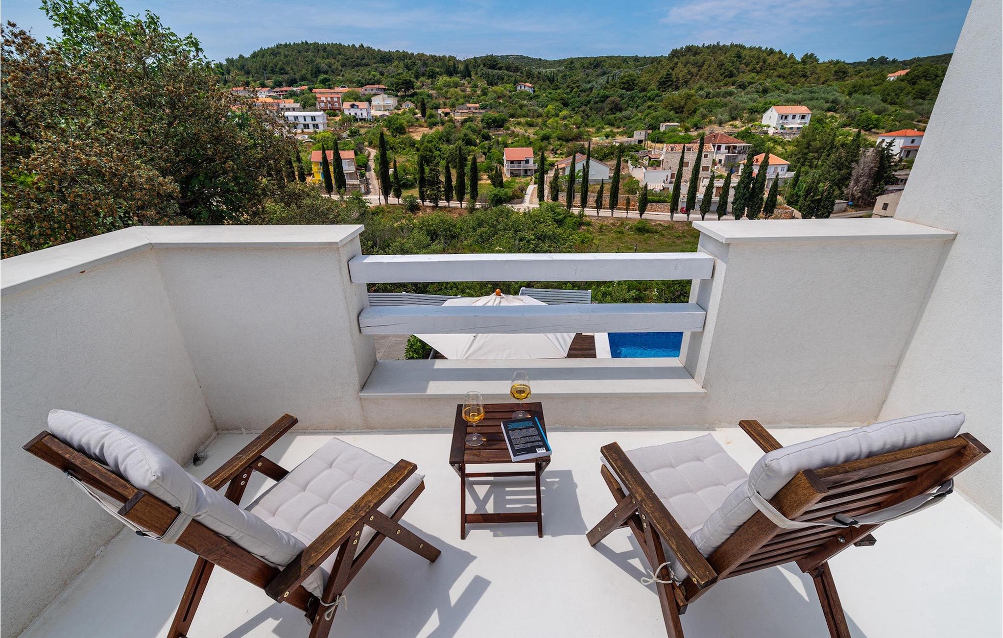 Beliggende i udkanten af den lille fiskerlandsby Zman, omgivet af natur, tilbyder denne drømmevilla alt, hvad du kan ønske dig til en afslappende ferie. Fra den 32m2 store, forfriskende pool er der en vidunderlig udsigt over dalen. God fornøjelse med en kølig drink i hånden, slap af på en af liggestolene og lad tankerne vandre. Den store terrasse med spisebord og kulgrillen er det perfekte sted til lange sommeraftener med frisk grillet fisk og andre lokale specialiteter.