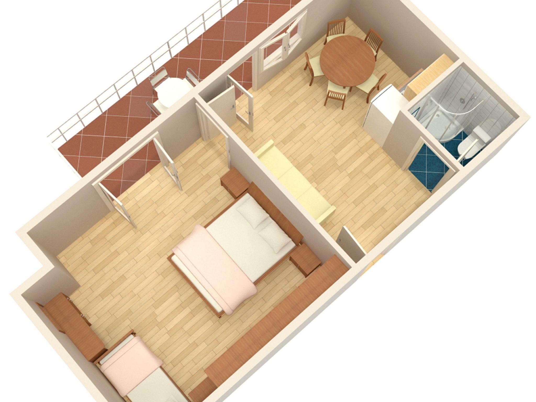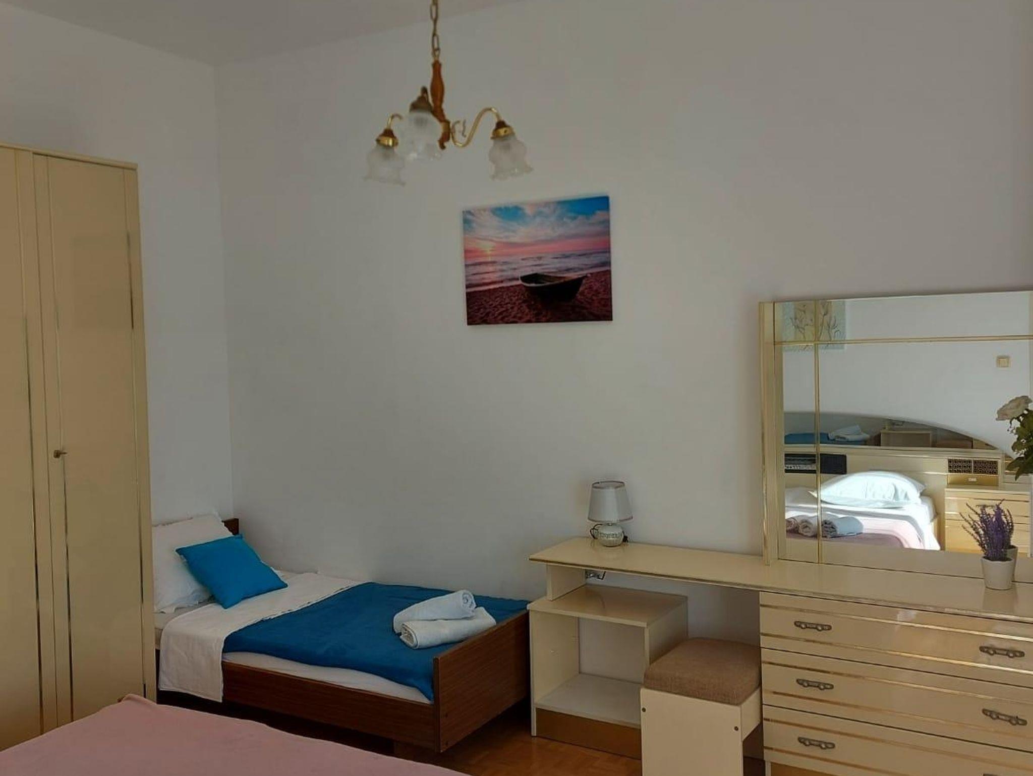 Ferienwohnung bietet Platz für 4 Gäste. Die Betten sind in Schlafzimmern, die es 1 gibt, und in Wohnzimmer, innerhalb einer Gesamtfläche von 32m2, angeordnet. Die Gäste haben einen eigenen Balkon zur Verfügung, auf der sie in warmen Sommernächten genießen können. Das Apartment bietet Meerblick. Es ist erlaubt, Speisen auf dem Gemeinschafts-Grill vorzubereiten. IM PREIS INBEGRIFFEN: Kurtaxe, Endreinigung, Klimatisierung, Parkplatz, Internet, tragbarer Grill. VERBINDLICHE ZUSÄTZLICHE KOSTEN: Aufzahlung für Kurzaufenthalte (prozentualer Zuschlag pro Nächtigungsanzahl: 30% - 1, 20% - 2, 10% - 3). Die Verfügbarkeit zusätzlicher Dienstleistungen in Ihrem reservierten Termin und die Preise derselben (falls nicht aufgeführt) müssen im Voraus überprüft werden. Zusätzliche Dienstleistungen die in der Zahlungsaufforderung nicht aufgeführt sind werden direkt beim Vermieter bezahlt, angenommen der Gast nutzt auch diese. Ermäßigung auf den Grundpreis: Gratistag 14=13 (bei einem Aufenthalt von 14 Tagen oder mehr erhalten Sie einen Gratistag für den Aufenthalt bis 31.12.26).