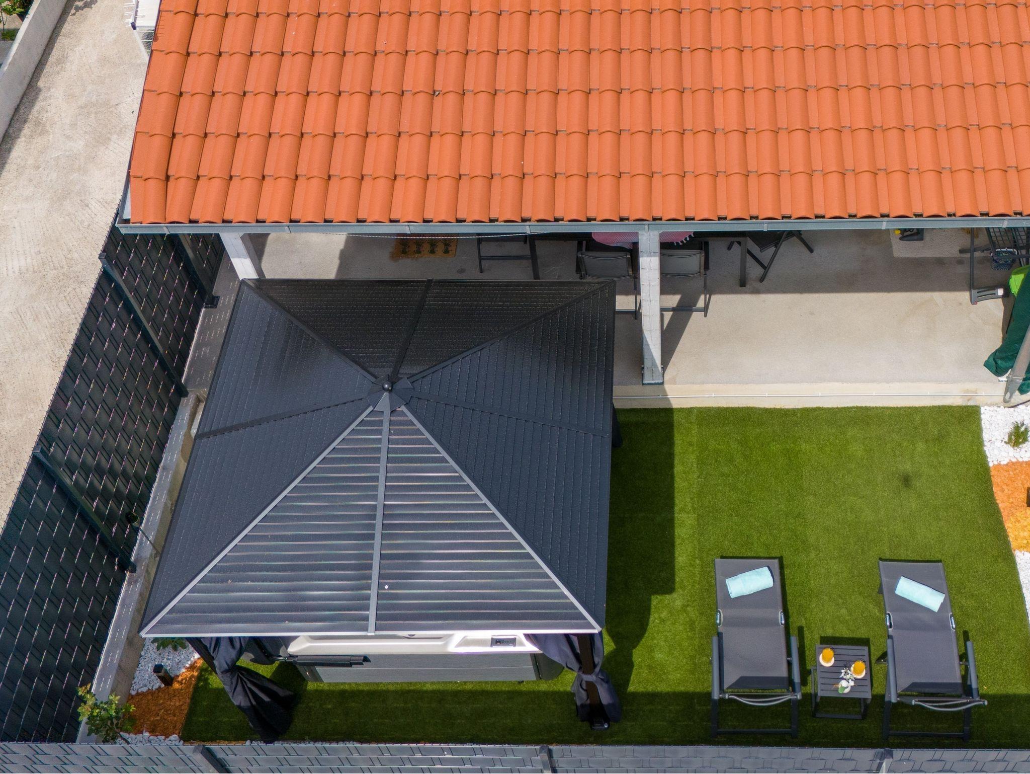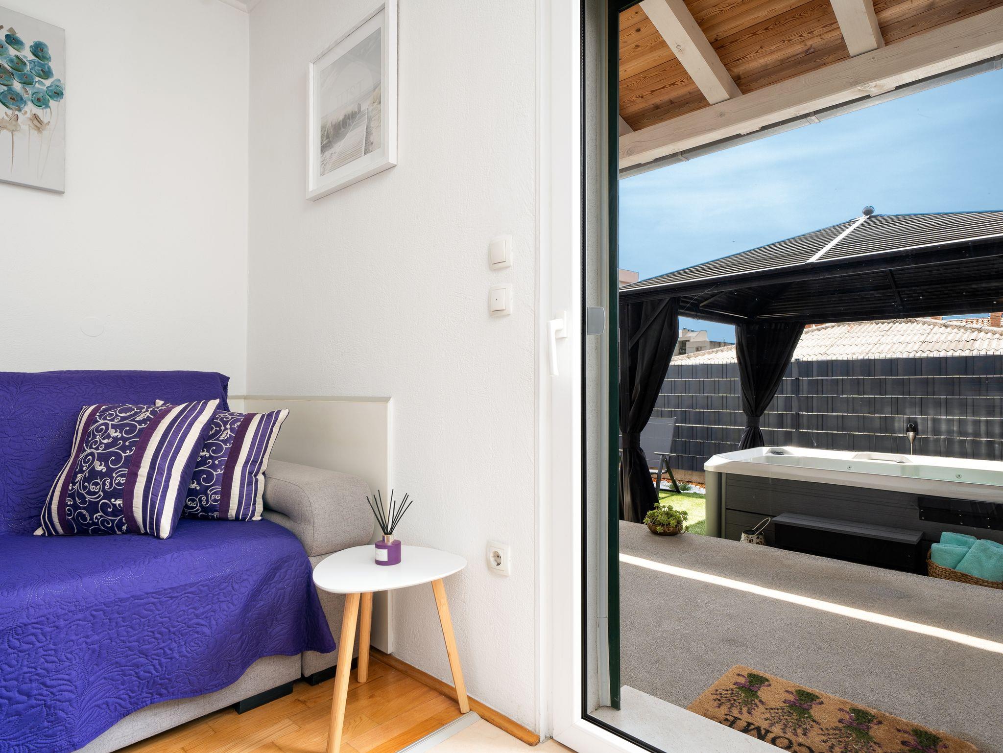 Haus bietet Platz für 4 Gäste. Die Betten sind in Schlafzimmern, die es 2 gibt, innerhalb einer Gesamtfläche von 61m2, angeordnet. Die Gäste haben eine eigene Terrasse zur Verfügung, auf der sie in warmen Sommernächten genießen können. Für vollen Genuss und Entspannung gibt es einen privaten Grill für Gäste dieser Unterkunft. IM PREIS INBEGRIFFEN: Kurtaxe, Endreinigung, Klimatisierung, Parkplatz, Internet, Bügeleisen, Bügelbrett, Föhn. VERBINDLICHE ZUSÄTZLICHE KOSTEN: Aufzahlung für Kurzaufenthalte (prozentualer Zuschlag pro Nächtigungsanzahl: 30% - 1, 20% - 2, 10% - 3). Die Verfügbarkeit zusätzlicher Dienstleistungen in Ihrem reservierten Termin und die Preise derselben (falls nicht aufgeführt) müssen im Voraus überprüft werden. Zusätzliche Dienstleistungen die in der Zahlungsaufforderung nicht aufgeführt sind werden direkt beim Vermieter bezahlt, angenommen der Gast nutzt auch diese.