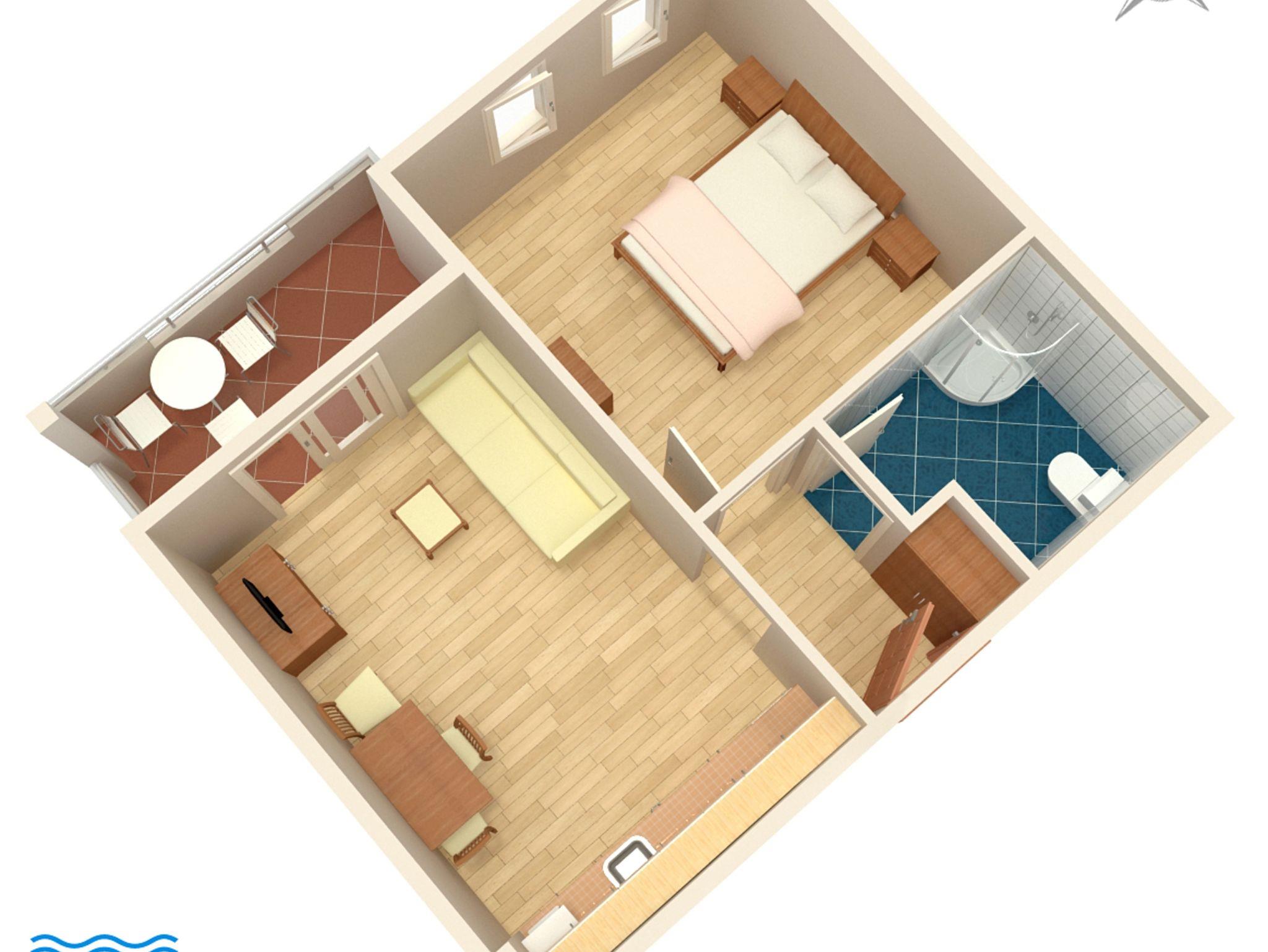 Ferienwohnung bietet Platz für 4 Gäste. Die Betten sind in Schlafzimmern, die es 1 gibt, und in Wohnzimmer, innerhalb einer Gesamtfläche von 38m2, angeordnet. Die Gäste haben eine eigene Terrasse zur Verfügung, auf der sie in warmen Sommernächten genießen können. Das Apartment bietet Meerblick. Es ist erlaubt, Speisen auf dem Gemeinschafts-Grill vorzubereiten. IM PREIS INBEGRIFFEN: Kurtaxe, Endreinigung, Klimatisierung, Parkplatz, Internet, Wäschewaschen, Bügeleisen, Bügelbrett, Föhn. Die Verfügbarkeit zusätzlicher Dienstleistungen in Ihrem reservierten Termin und die Preise derselben (falls nicht aufgeführt) müssen im Voraus überprüft werden. Zusätzliche Dienstleistungen die in der Zahlungsaufforderung nicht aufgeführt sind werden direkt beim Vermieter bezahlt, angenommen der Gast nutzt auch diese.