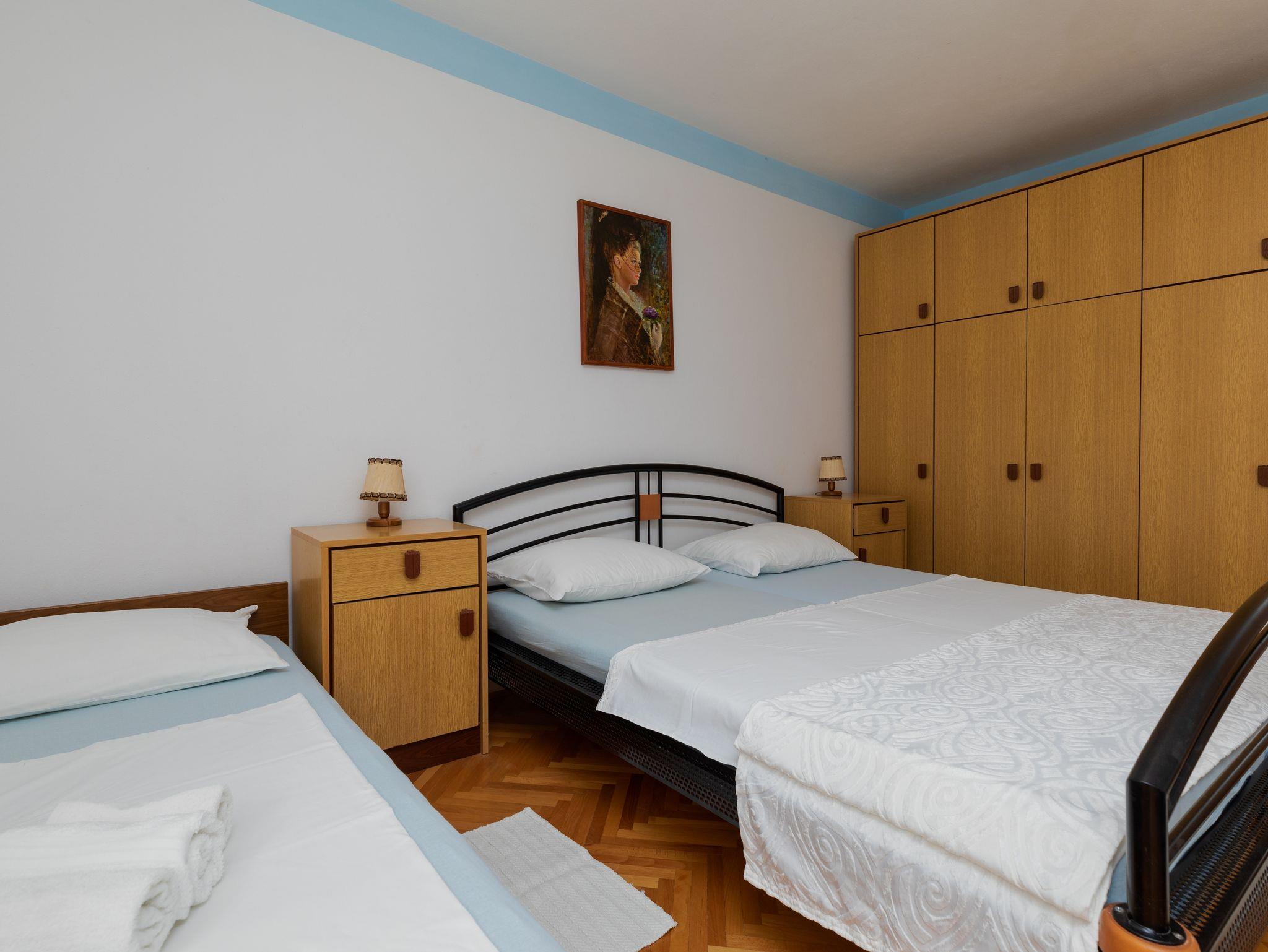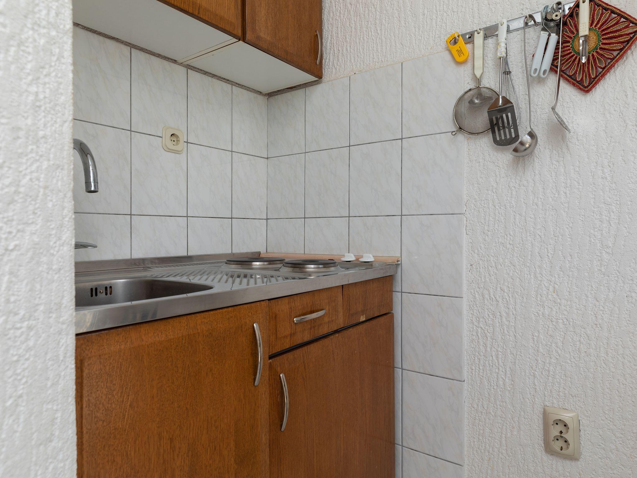 Studio bietet Platz für 4 Gäste. Die Betten sind in Schlafzimmern, die es 1 gibt, innerhalb einer Gesamtfläche von 26m2, angeordnet. Die Gäste haben einen eigenen Balkon zur Verfügung, auf der sie in warmen Sommernächten genießen können. Das Studio-Apartment bietet Meerblick. Es ist erlaubt, Speisen auf dem Gemeinschafts-Grill vorzubereiten. IM PREIS INBEGRIFFEN: Kurtaxe, Endreinigung, Parkplatz, Internet. UNVERBINDLICHE ZUSÄTZLICHE KOSTEN: Klimatisierung (0,25 € pro Stunde), Wäschewaschen (5,00 € Waschen). Die Verfügbarkeit zusätzlicher Dienstleistungen in Ihrem reservierten Termin und die Preise derselben (falls nicht aufgeführt) müssen im Voraus überprüft werden. Zusätzliche Dienstleistungen die in der Zahlungsaufforderung nicht aufgeführt sind werden direkt beim Vermieter bezahlt, angenommen der Gast nutzt auch diese. Ermäßigung auf den Grundpreis: Gratistag 14=13 (bei einem Aufenthalt von 14 Tagen oder mehr erhalten Sie einen Gratistag für den Aufenthalt bis 31.12.26).