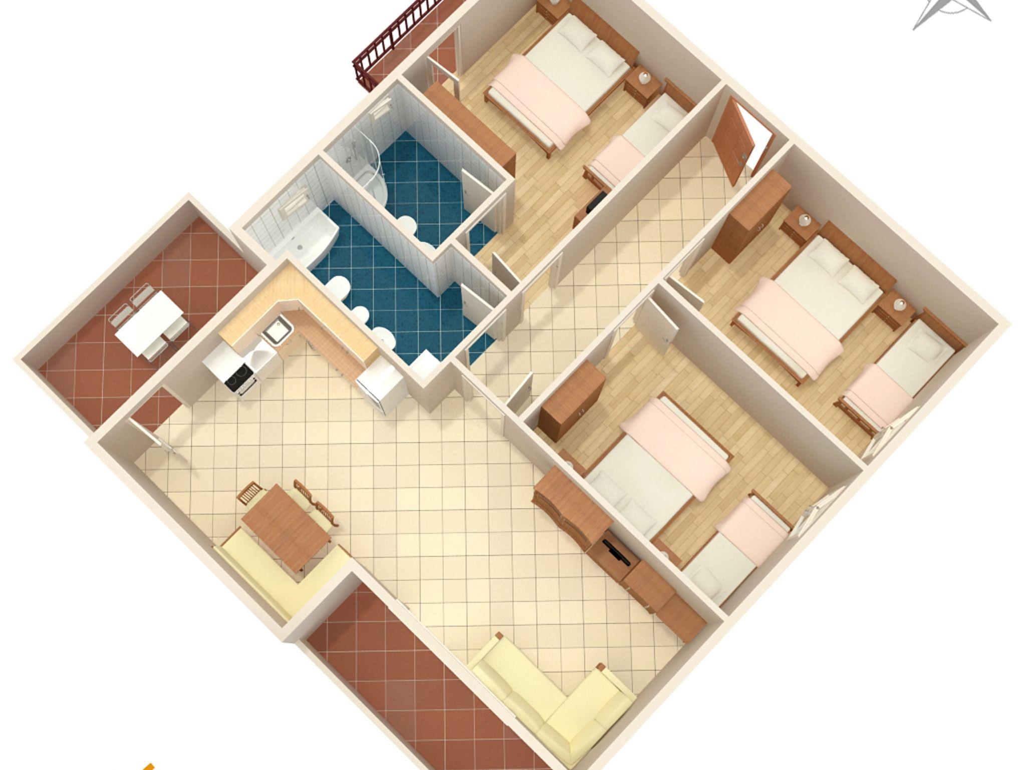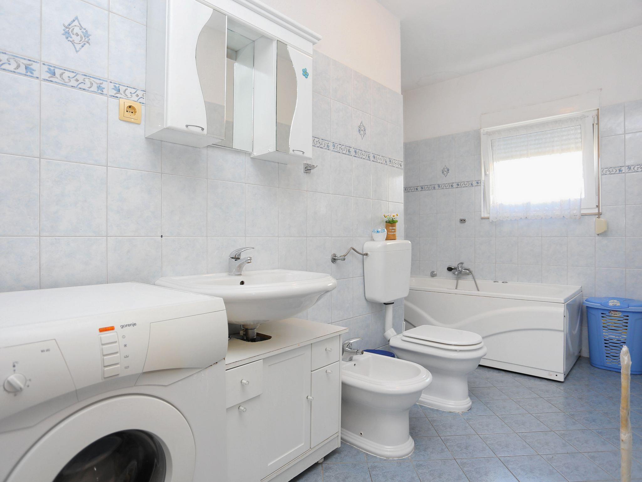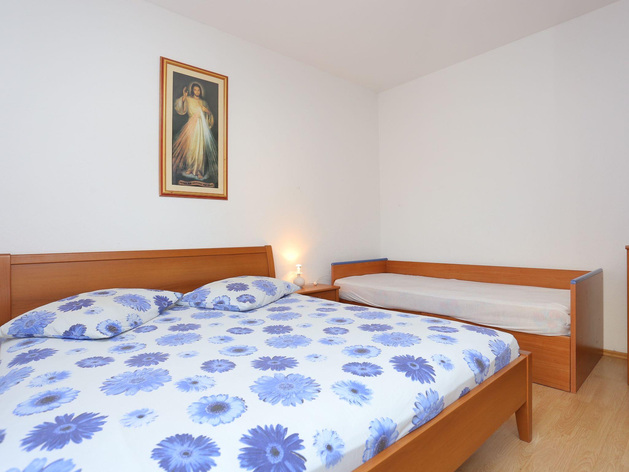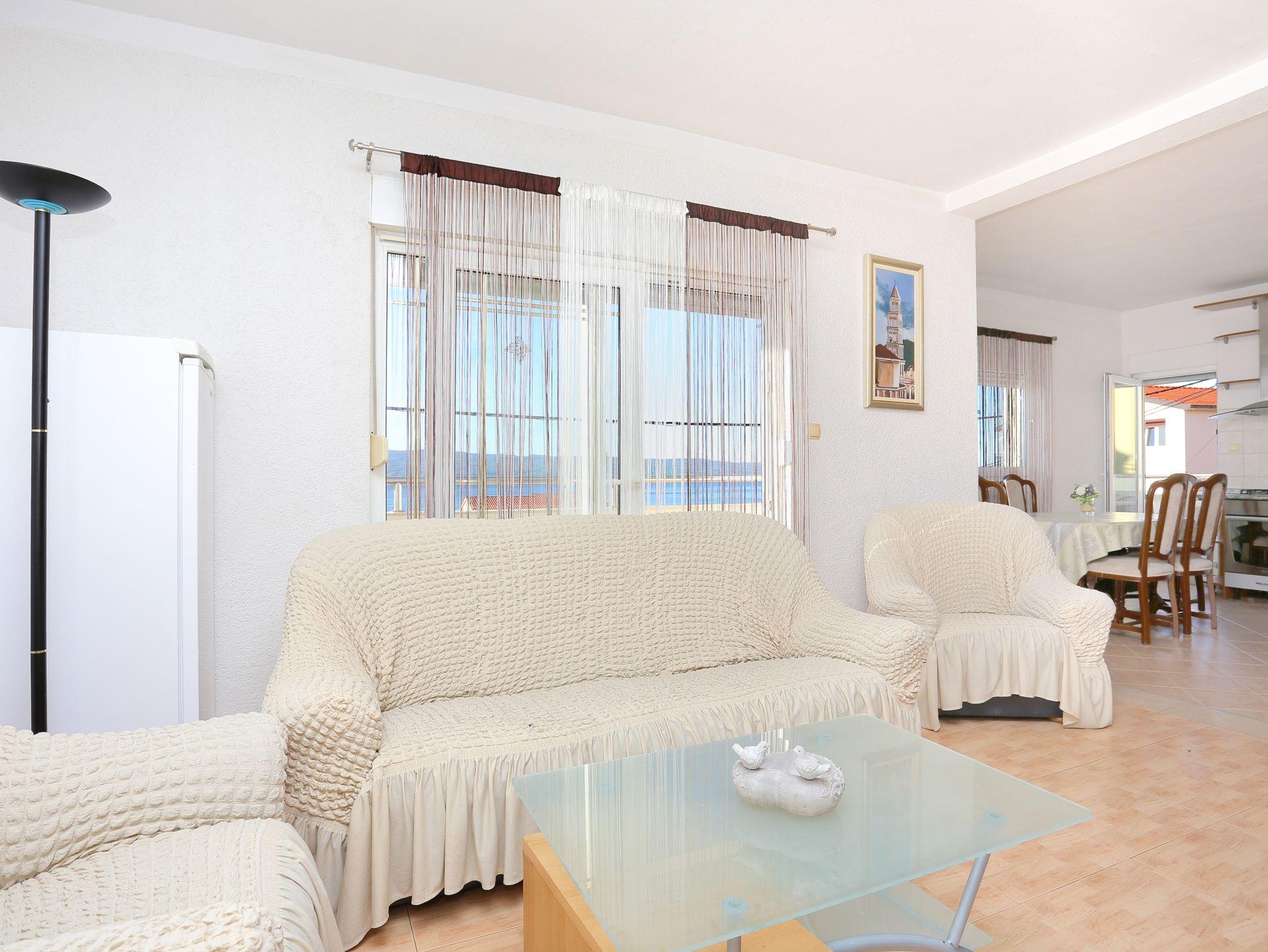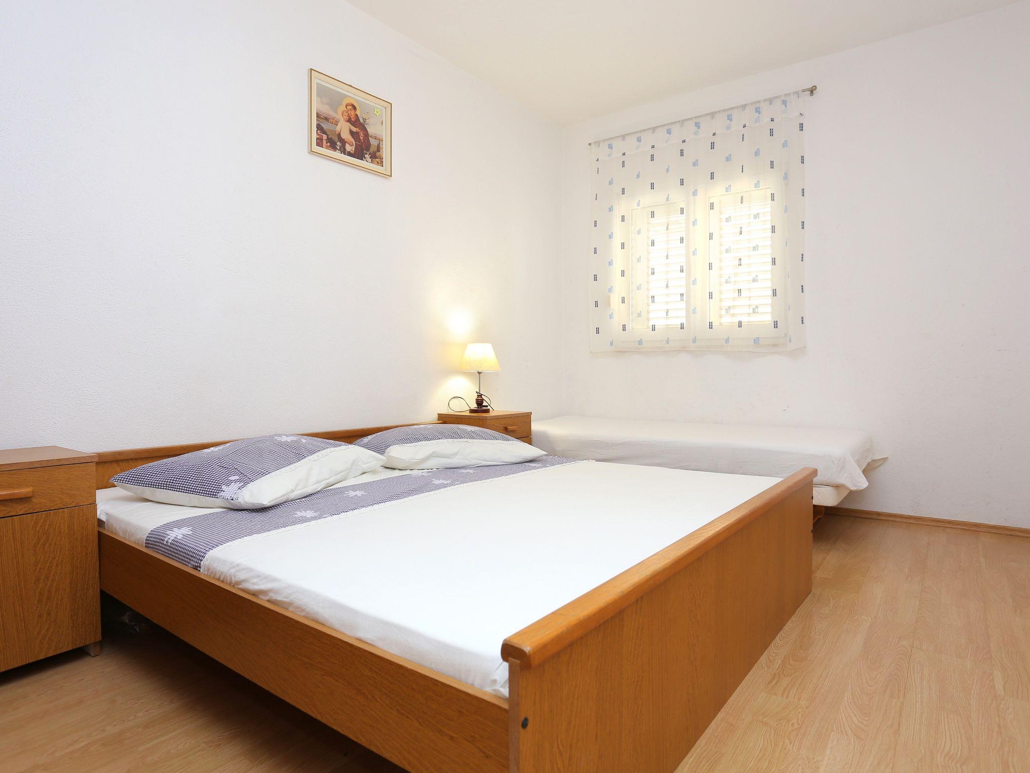 Ferienwohnung bietet Platz für 9 Gäste. Die Betten sind in Schlafzimmern, die es 3 gibt, innerhalb einer Gesamtfläche von 85m2, angeordnet. Die Gäste haben eine eigene Terrasse zur Verfügung, auf der sie in warmen Sommernächten genießen können. Das Apartment bietet Meerblick. Es ist erlaubt, Speisen auf dem Gemeinschafts-Grill vorzubereiten. IM PREIS INBEGRIFFEN: Kurtaxe, Endreinigung, Klimatisierung, Parkplatz, Internet, Wäschewaschen, tragbarer Grill. VERBINDLICHE ZUSÄTZLICHE KOSTEN: Aufzahlung für Kurzaufenthalte (prozentualer Zuschlag pro Nächtigungsanzahl: 30% - 1, 20% - 2, 10% - 3). UNVERBINDLICHE ZUSÄTZLICHE KOSTEN: Bootsanlegeplatz (10,00 € pro Nacht), Zusatzbett (10,00 € pro Nacht). Die Verfügbarkeit zusätzlicher Dienstleistungen in Ihrem reservierten Termin und die Preise derselben (falls nicht aufgeführt) müssen im Voraus überprüft werden. Zusätzliche Dienstleistungen die in der Zahlungsaufforderung nicht aufgeführt sind werden direkt beim Vermieter bezahlt, angenommen der Gast nutzt auch diese.