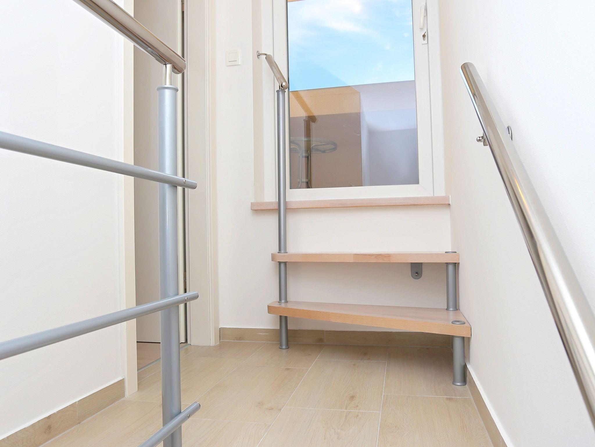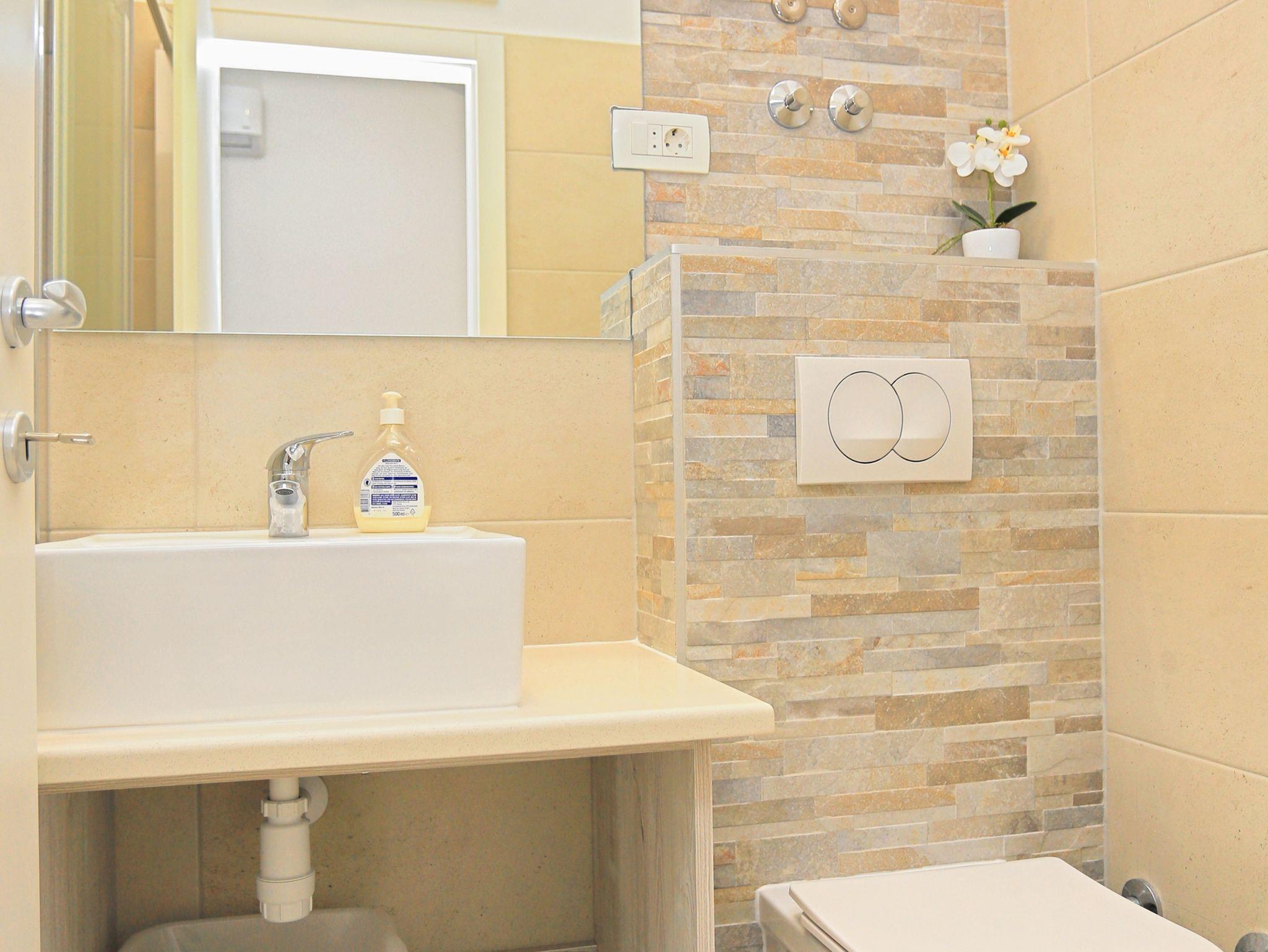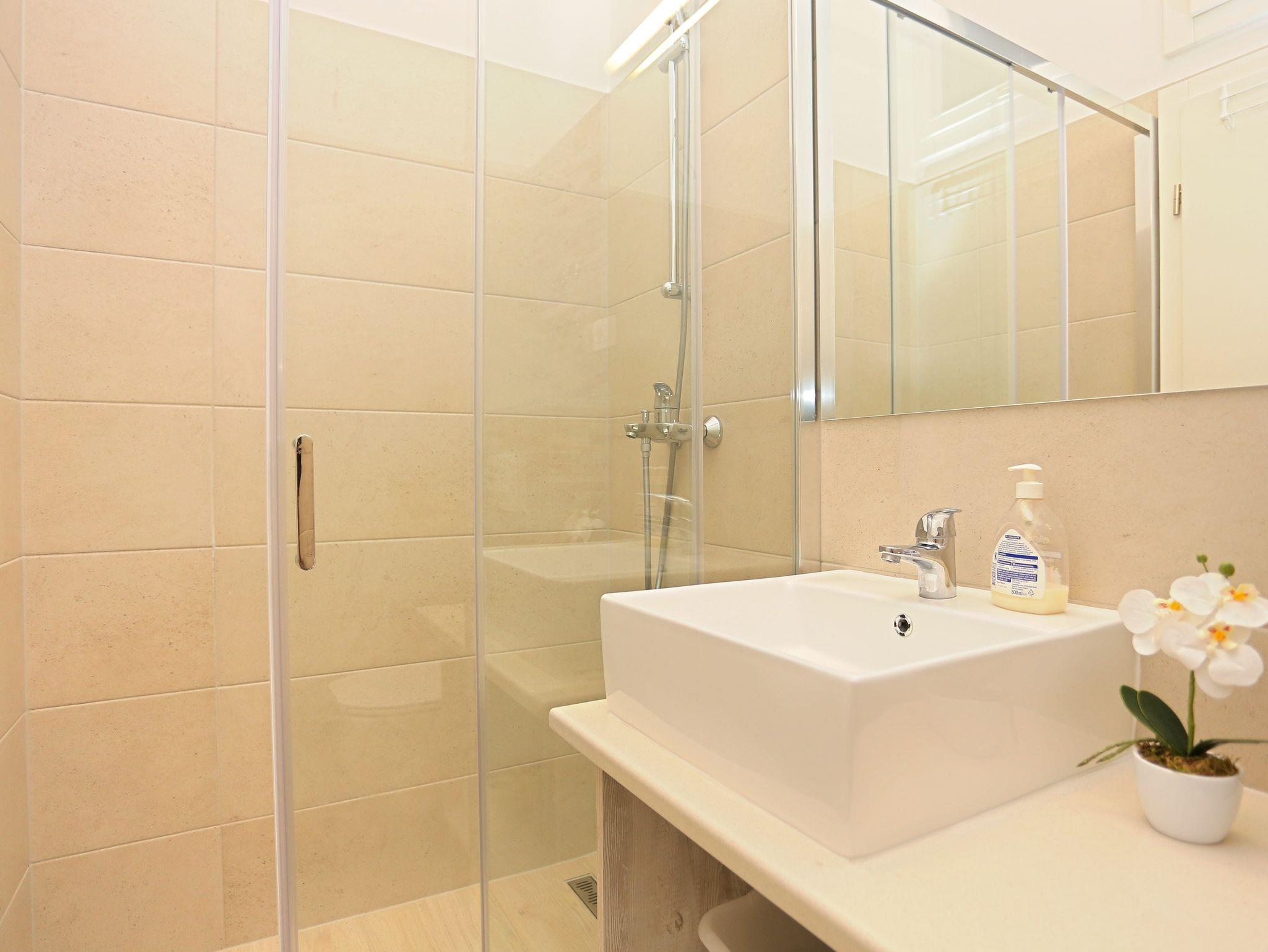 Ferienwohnung bietet Platz für 4 Gäste. Die Betten sind in Schlafzimmern, die es 1 gibt, und in Wohnzimmer, innerhalb einer Gesamtfläche von 37m2, angeordnet. Die Gäste haben eine eigene Terrasse zur Verfügung, auf der sie in warmen Sommernächten genießen können. Das Apartment bietet Meerblick. Es ist erlaubt, Speisen auf dem Gemeinschafts-Grill vorzubereiten. IM PREIS INBEGRIFFEN: Kurtaxe, Endreinigung, Parkplatz, Internet. VERBINDLICHE ZUSÄTZLICHE KOSTEN: Aufzahlung für Kurzaufenthalte (prozentualer Zuschlag pro Nächtigungsanzahl: 30% - 1, 20% - 2, 10% - 3). UNVERBINDLICHE ZUSÄTZLICHE KOSTEN: Klimatisierung (0,80 € pro Stunde), Wäschewaschen (5,00 € Waschen). Die Verfügbarkeit zusätzlicher Dienstleistungen in Ihrem reservierten Termin und die Preise derselben (falls nicht aufgeführt) müssen im Voraus überprüft werden. Zusätzliche Dienstleistungen die in der Zahlungsaufforderung nicht aufgeführt sind werden direkt beim Vermieter bezahlt, angenommen der Gast nutzt auch diese.