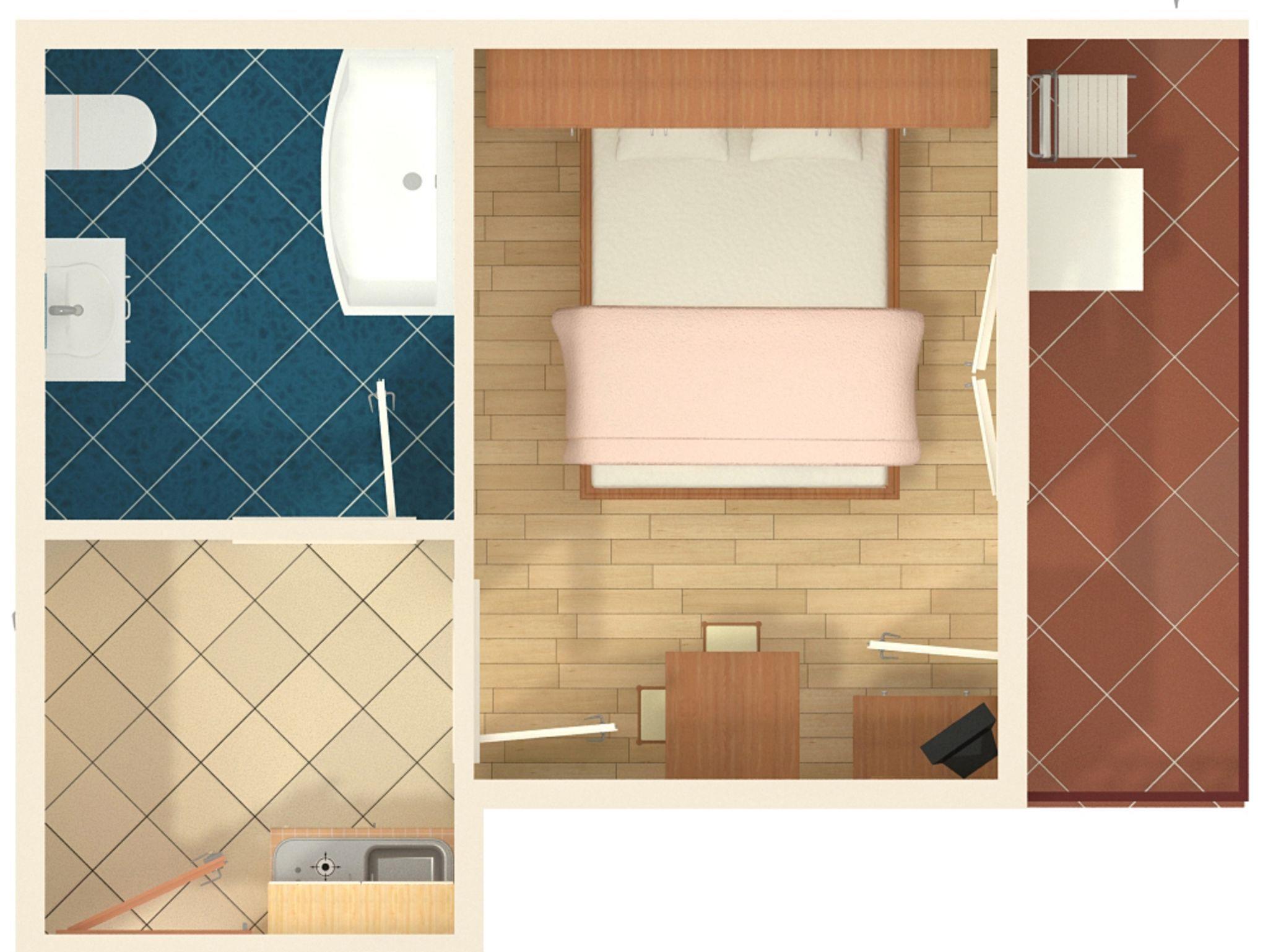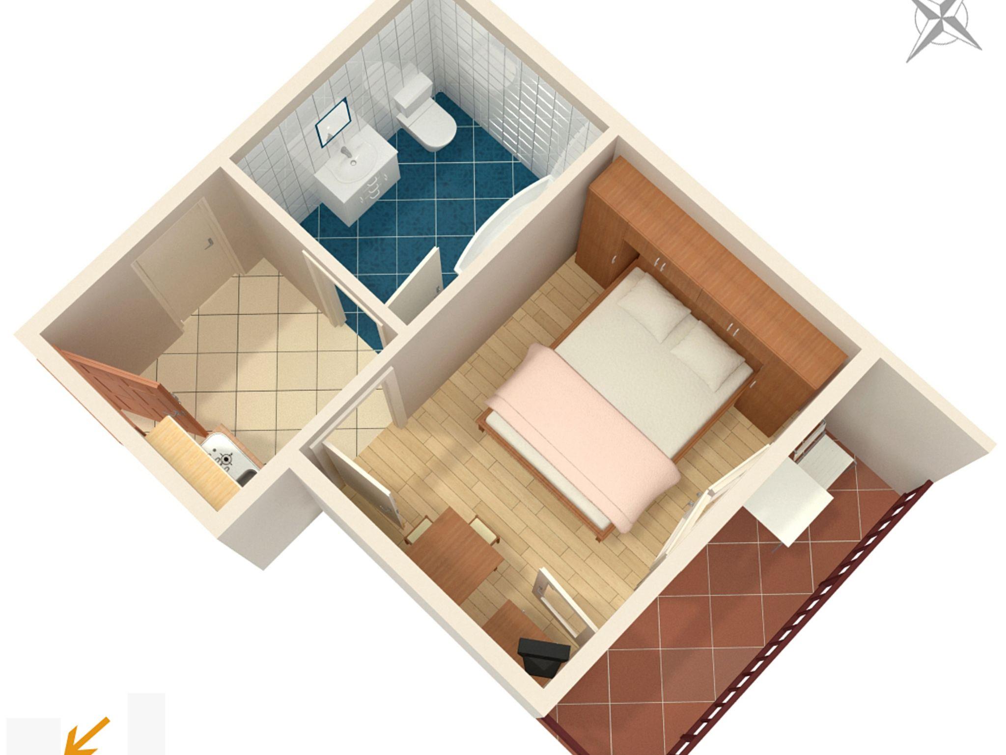 Studio bietet Platz für 2 Gäste. Die Betten sind in Schlafzimmern, die es 1 gibt, innerhalb einer Gesamtfläche von 21m2, angeordnet. Die Gäste haben eine eigene Terrasse zur Verfügung, auf der sie in warmen Sommernächten genießen können. Das Studio-Apartment bietet Meerblick. Es ist erlaubt, Speisen auf dem Gemeinschafts-Grill vorzubereiten. In der gebuchten Unterkunftseinheit zahlt man am Ort ein Depositum ( der Preis ist an der Internetseite angeführt ). IM PREIS INBEGRIFFEN: Kurtaxe, Endreinigung, Klimatisierung, Parkplatz, Internet, Föhn. VERBINDLICHE ZUSÄTZLICHE KOSTEN: Kaution (100,00 € Einmalzahlung), Aufzahlung für Kurzaufenthalte (prozentualer Zuschlag pro Nächtigungsanzahl: 30% - 1, 20% - 2, 10% - 3). Die Verfügbarkeit zusätzlicher Dienstleistungen in Ihrem reservierten Termin und die Preise derselben (falls nicht aufgeführt) müssen im Voraus überprüft werden. Zusätzliche Dienstleistungen die in der Zahlungsaufforderung nicht aufgeführt sind werden direkt beim Vermieter bezahlt, angenommen der Gast nutzt auch diese.