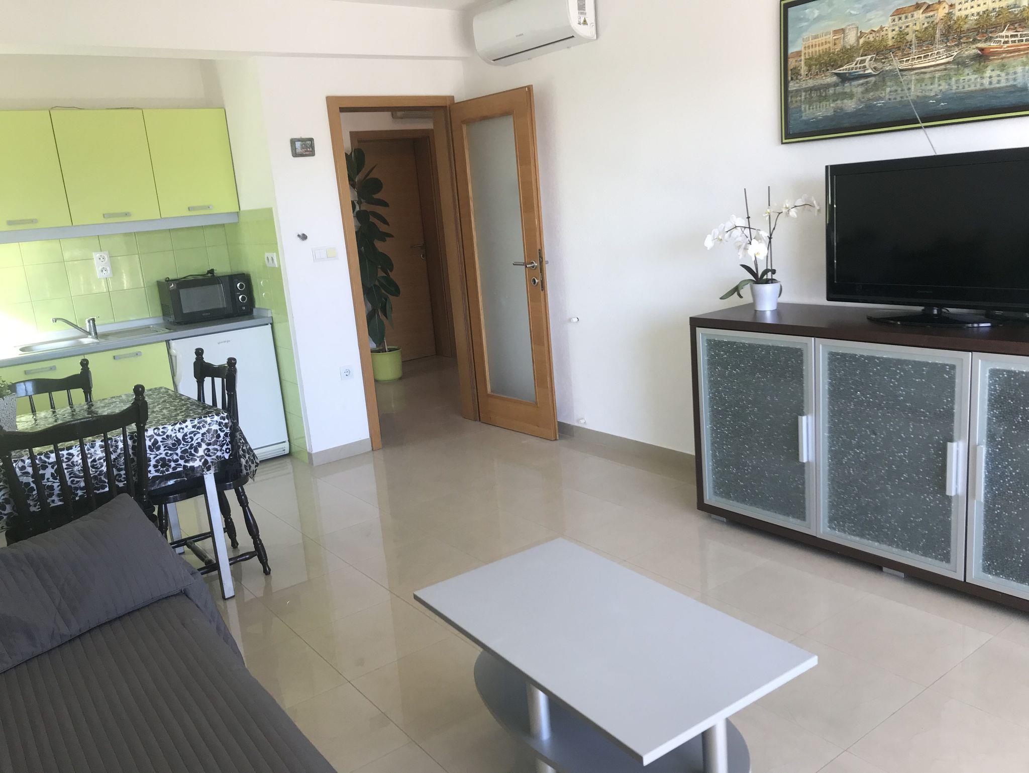 Ferienwohnung bietet Platz für 6 Gäste. Die Betten sind in Schlafzimmern, die es 2 gibt, und in Wohnzimmer, innerhalb einer Gesamtfläche von 58m2, angeordnet. Die Gäste haben eine eigene Terrasse zur Verfügung, auf der sie in warmen Sommernächten genießen können. Das Apartment bietet Meerblick. Es ist erlaubt, Speisen auf dem Gemeinschafts-Grill vorzubereiten. In der Unterkunftseinheit besteht die Möglichkeit des Mitbringens von Haustieren gegen Aufpreis. IM PREIS INBEGRIFFEN: Kurtaxe, Endreinigung, Parkplatz, Garage, Internet, Kinderbett, Bügeleisen, Bügelbrett, Föhn, tragbarer Grill. VERBINDLICHE ZUSÄTZLICHE KOSTEN: Aufzahlung für Kurzaufenthalte (prozentualer Zuschlag pro Nächtigungsanzahl: 30% - 1, 20% - 2, 10% - 3). UNVERBINDLICHE ZUSÄTZLICHE KOSTEN: Klimatisierung (0,50 € pro Stunde), Haustiere (7,00 € pro Nacht). Die Verfügbarkeit zusätzlicher Dienstleistungen in Ihrem reservierten Termin und die Preise derselben (falls nicht aufgeführt) müssen im Voraus überprüft werden. Zusätzliche Dienstleistungen die in der Zahlungsaufforderung nicht aufgeführt sind werden direkt beim Vermieter bezahlt, angenommen der Gast nutzt auch diese.