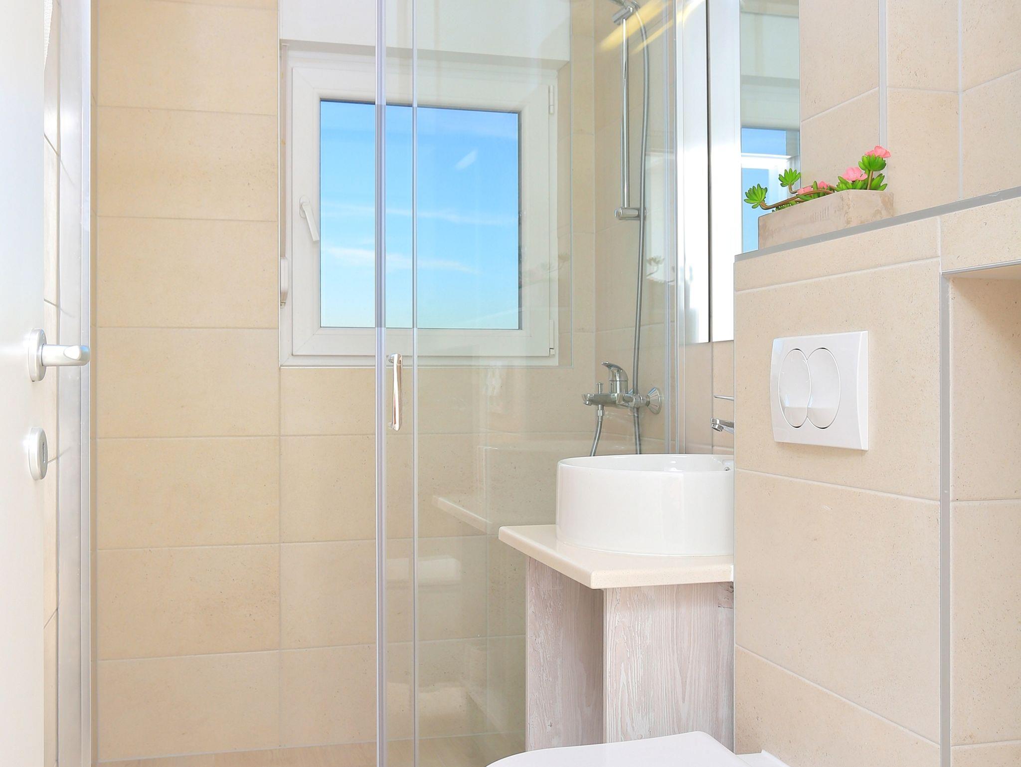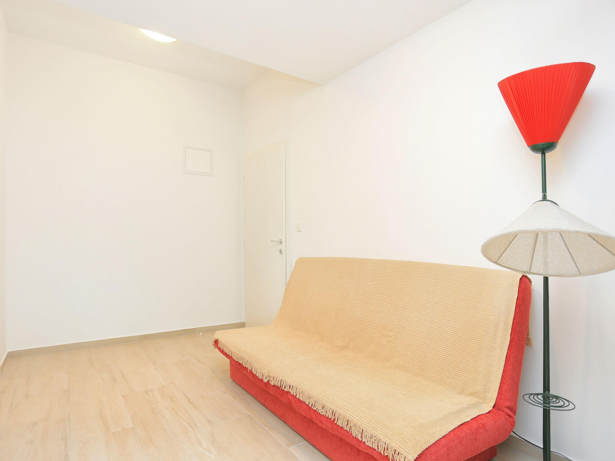 Ferienwohnung bietet Platz für 6 Gäste. Die Betten sind in Schlafzimmern, die es 2 gibt, und in Wohnzimmer, innerhalb einer Gesamtfläche von 51m2, angeordnet. Die Gäste haben eine eigene Terrasse zur Verfügung, auf der sie in warmen Sommernächten genießen können. Das Apartment bietet Meerblick. Es ist erlaubt, Speisen auf dem Gemeinschafts-Grill vorzubereiten. IM PREIS INBEGRIFFEN: Kurtaxe, Endreinigung, Parkplatz, Internet. VERBINDLICHE ZUSÄTZLICHE KOSTEN: Aufzahlung für Kurzaufenthalte (prozentualer Zuschlag pro Nächtigungsanzahl: 30% - 1, 20% - 2, 10% - 3). UNVERBINDLICHE ZUSÄTZLICHE KOSTEN: Klimatisierung (0,80 € pro Stunde), Wäschewaschen (5,00 € Waschen). Die Verfügbarkeit zusätzlicher Dienstleistungen in Ihrem reservierten Termin und die Preise derselben (falls nicht aufgeführt) müssen im Voraus überprüft werden. Zusätzliche Dienstleistungen die in der Zahlungsaufforderung nicht aufgeführt sind werden direkt beim Vermieter bezahlt, angenommen der Gast nutzt auch diese.