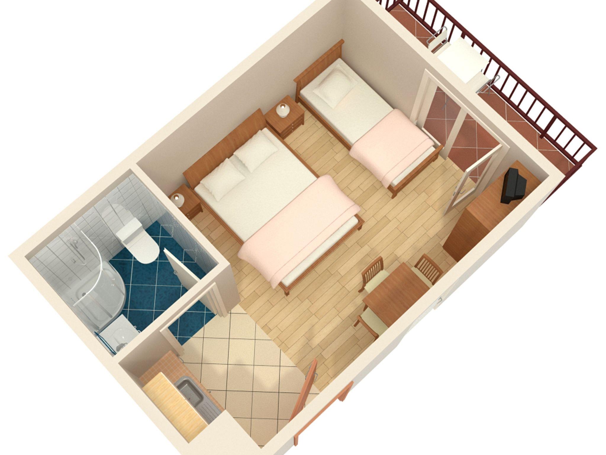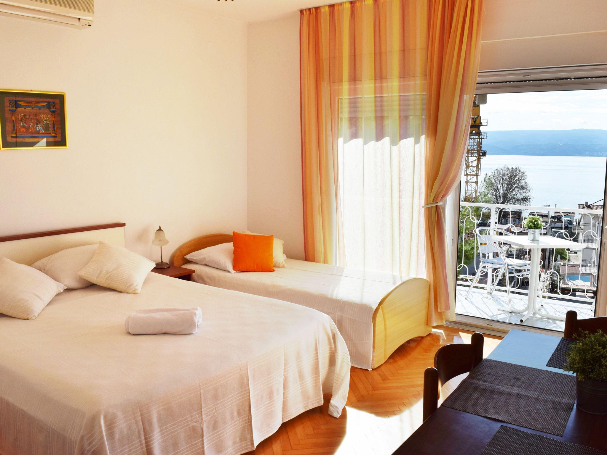 Studio bietet Platz für 3 Gäste. Die Betten sind in Schlafzimmern, die es 1 gibt, innerhalb einer Gesamtfläche von 20m2, angeordnet. Die Gäste haben einen eigenen Balkon zur Verfügung, auf der sie in warmen Sommernächten genießen können. Das Studio-Apartment bietet Meerblick. Es ist erlaubt, Speisen auf dem Gemeinschafts-Grill vorzubereiten. In der gebuchten Unterkunftseinheit zahlt man am Ort ein Depositum ( der Preis ist an der Internetseite angeführt ). IM PREIS INBEGRIFFEN: Kurtaxe, Endreinigung, Klimatisierung, Parkplatz, Internet, Föhn. VERBINDLICHE ZUSÄTZLICHE KOSTEN: Kaution (100,00 € Einmalzahlung), Aufzahlung für Kurzaufenthalte (prozentualer Zuschlag pro Nächtigungsanzahl: 30% - 1, 20% - 2, 10% - 3). Die Verfügbarkeit zusätzlicher Dienstleistungen in Ihrem reservierten Termin und die Preise derselben (falls nicht aufgeführt) müssen im Voraus überprüft werden. Zusätzliche Dienstleistungen die in der Zahlungsaufforderung nicht aufgeführt sind werden direkt beim Vermieter bezahlt, angenommen der Gast nutzt auch diese.