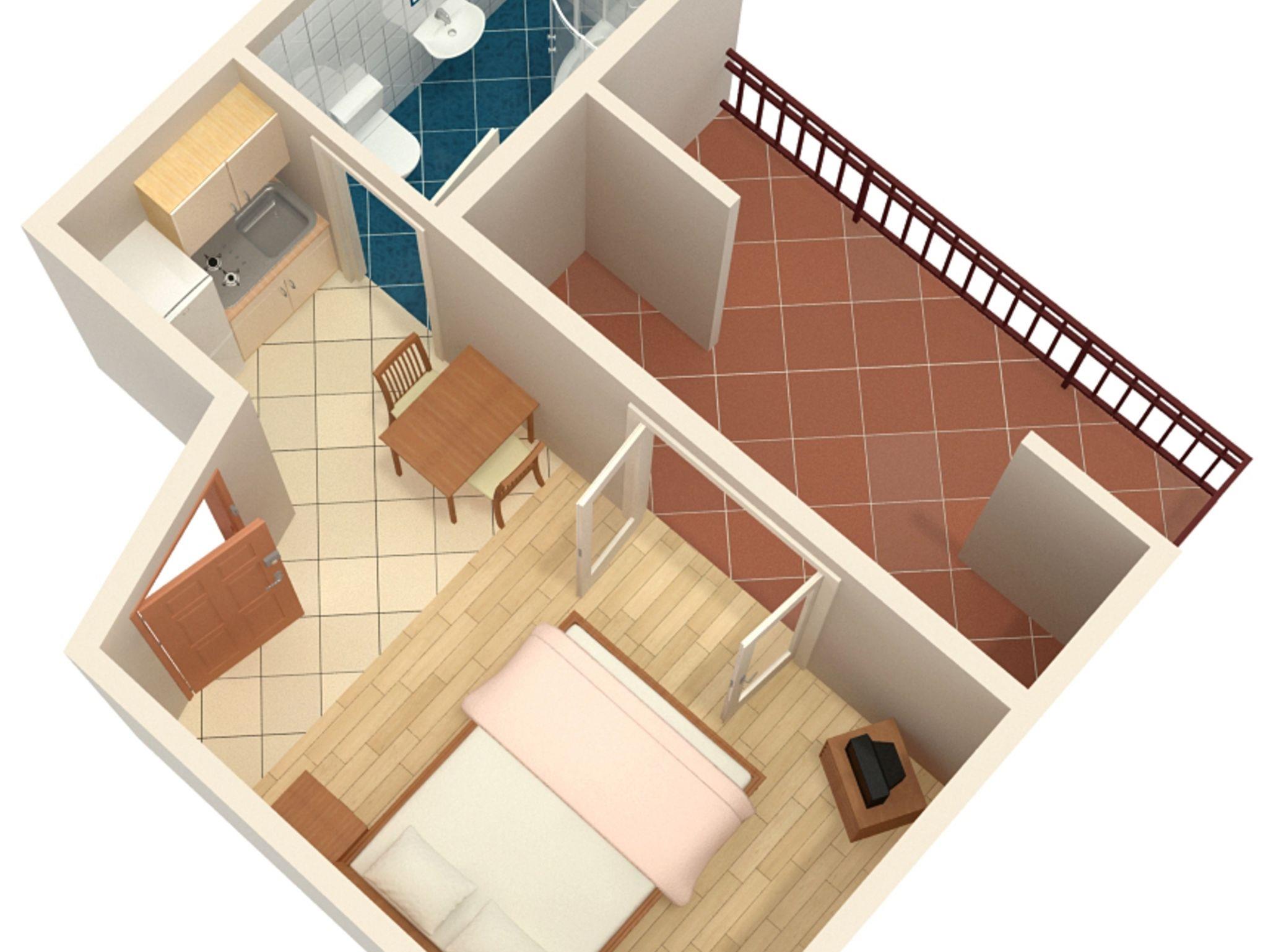 Studio bietet Platz für 2 Gäste. Die Betten sind in Schlafzimmern, die es 1 gibt, innerhalb einer Gesamtfläche von 17m2, angeordnet. Die Gäste haben eine eigene Terrasse zur Verfügung, auf der sie in warmen Sommernächten genießen können. Das Studio-Apartment bietet Meerblick. Es ist erlaubt, Speisen auf dem Gemeinschafts-Grill vorzubereiten. IM PREIS INBEGRIFFEN: Kurtaxe, Endreinigung, Klimatisierung, Parkplatz, Internet. VERBINDLICHE ZUSÄTZLICHE KOSTEN: Aufzahlung für Kurzaufenthalte (prozentualer Zuschlag pro Nächtigungsanzahl: 30% - 1, 20% - 2, 10% - 3). Die Verfügbarkeit zusätzlicher Dienstleistungen in Ihrem reservierten Termin und die Preise derselben (falls nicht aufgeführt) müssen im Voraus überprüft werden. Zusätzliche Dienstleistungen die in der Zahlungsaufforderung nicht aufgeführt sind werden direkt beim Vermieter bezahlt, angenommen der Gast nutzt auch diese.