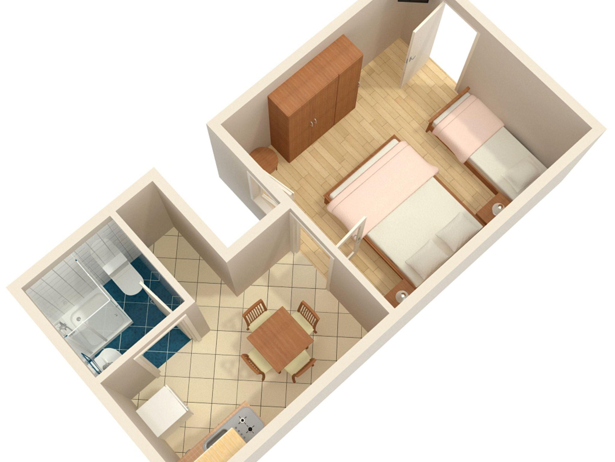 Studio bietet Platz für 3 Gäste. Die Betten sind in Schlafzimmern, die es 1 gibt, innerhalb einer Gesamtfläche von 24m2, angeordnet. Es ist erlaubt, Speisen auf dem Gemeinschafts-Grill vorzubereiten. Die reservierte Unterkunftseinheit hat keinen Balkon und keine Terrasse. In der gebuchten Unterkunftseinheit zahlt man am Ort ein Depositum ( der Preis ist an der Internetseite angeführt ). IM PREIS INBEGRIFFEN: Kurtaxe, Endreinigung, Klimatisierung, Parkplatz, Internet, Föhn. VERBINDLICHE ZUSÄTZLICHE KOSTEN: Kaution (100,00 € Einmalzahlung), Aufzahlung für Kurzaufenthalte (prozentualer Zuschlag pro Nächtigungsanzahl: 30% - 1, 20% - 2, 10% - 3). Die Verfügbarkeit zusätzlicher Dienstleistungen in Ihrem reservierten Termin und die Preise derselben (falls nicht aufgeführt) müssen im Voraus überprüft werden. Zusätzliche Dienstleistungen die in der Zahlungsaufforderung nicht aufgeführt sind werden direkt beim Vermieter bezahlt, angenommen der Gast nutzt auch diese.