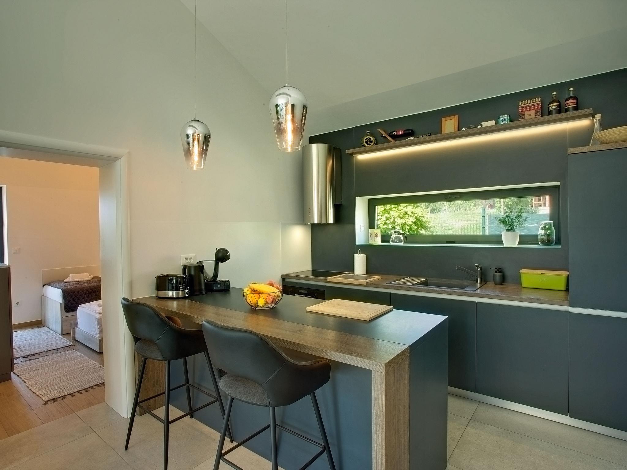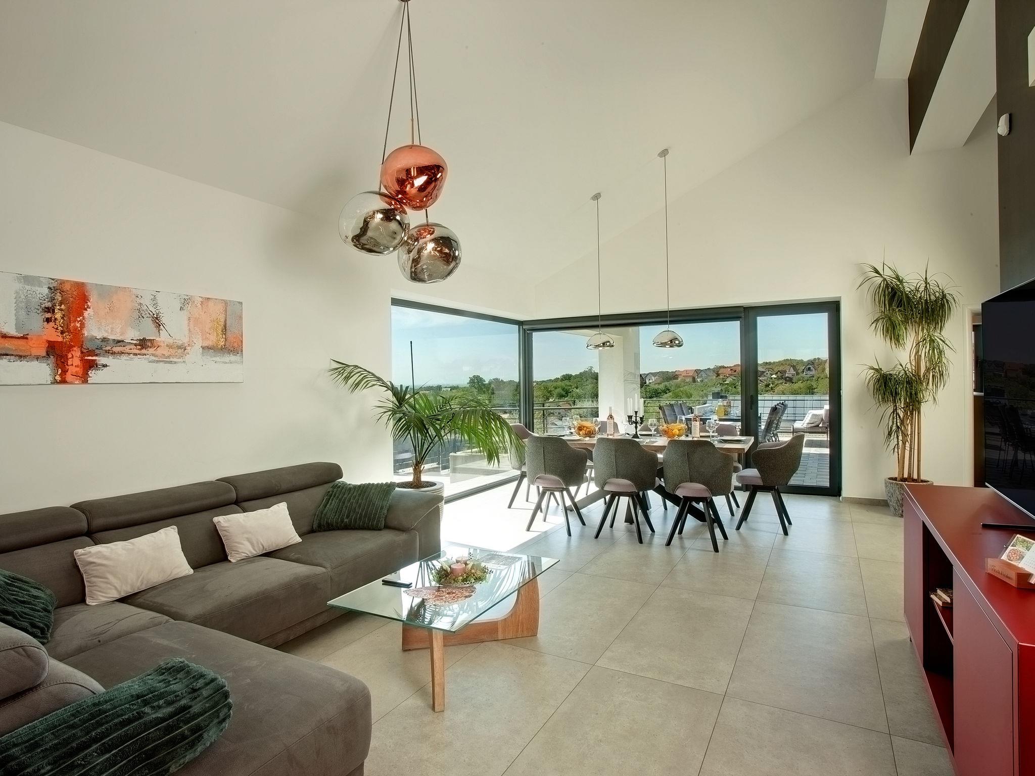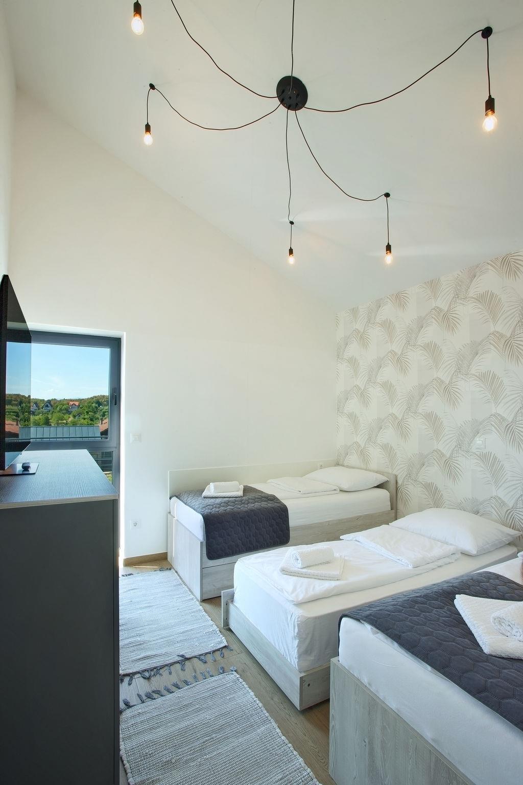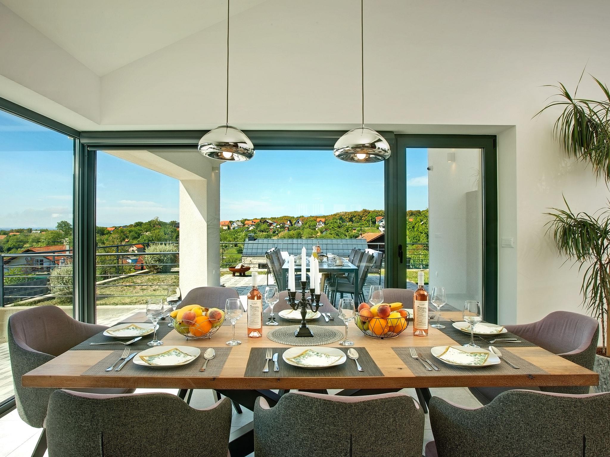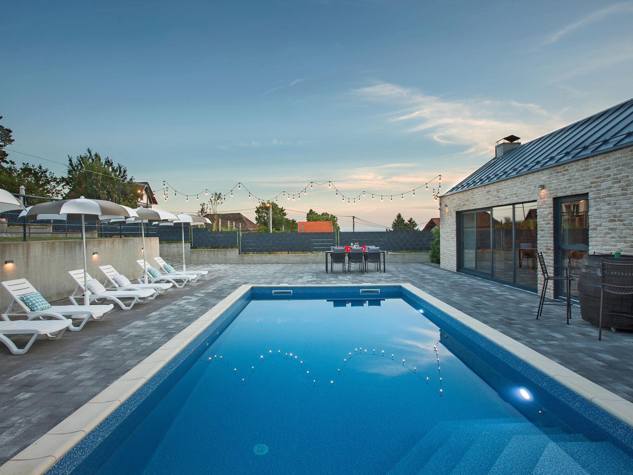 Dugo Selo 30 km from zagreb: Single-family house "Das Klet". 2.5 km from the centre of Dugo Selo. Private: property 1'250 m2 (fenced), lawn, swimming pool angular (6 x 8 m, 48 m2, depth 100 - 140 cm, seasonal availability: 01.May. - 31.Sep.) with shutter cover. Pool house with shower and WC, terrace (40 m2), barbecue. In the house: internet access, sauna, washing machine, tumble dryer. Parking at the house on the premises. E-charging station. Restaurant 1 km, bus stop 2 km.