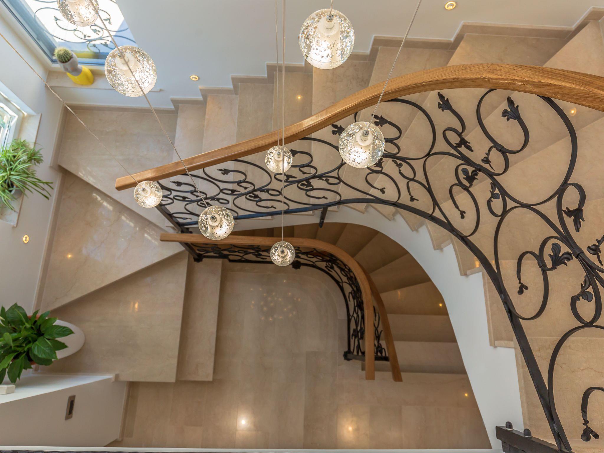 On the ground floor there is a fully equipped kitchen with a large dining room and a living room with a view of the pool (with access to the outdoor dining room and pool).Next to the kitchen is a bathroom with a bathtub.Bedroom # 1 with double bed (200x160) and private bathroom with shower.The room and bathroom are adapted for movement of people with disabilities.On the 1st floor there are 3 bedrooms with 3 private bathrooms:Bedroom # 2 with double bed (200x180cm) and private bathroom with shower.Bedroom # 3 with double bed (200x180cm) and private bathroom with shower.Bedroom # 4 with a double bed (200x180cm, the beds can be separated) and a private bathroom and shower.An internal staircase leads to the basement of the entertainment zone for all our guests.In this room there is a sauna for 2 people.Also in this room there is a pool table, table football.In case you want to work out, there are weights, a treadmill, a pilates ball and an orbit.There is also family bathroom #6 with shower.In a separate room there is a washing machine, iron and ironing board on this level (basement).The entire facility is completely fenced and offers 4 secured parking spaces and 2 garage spaces.