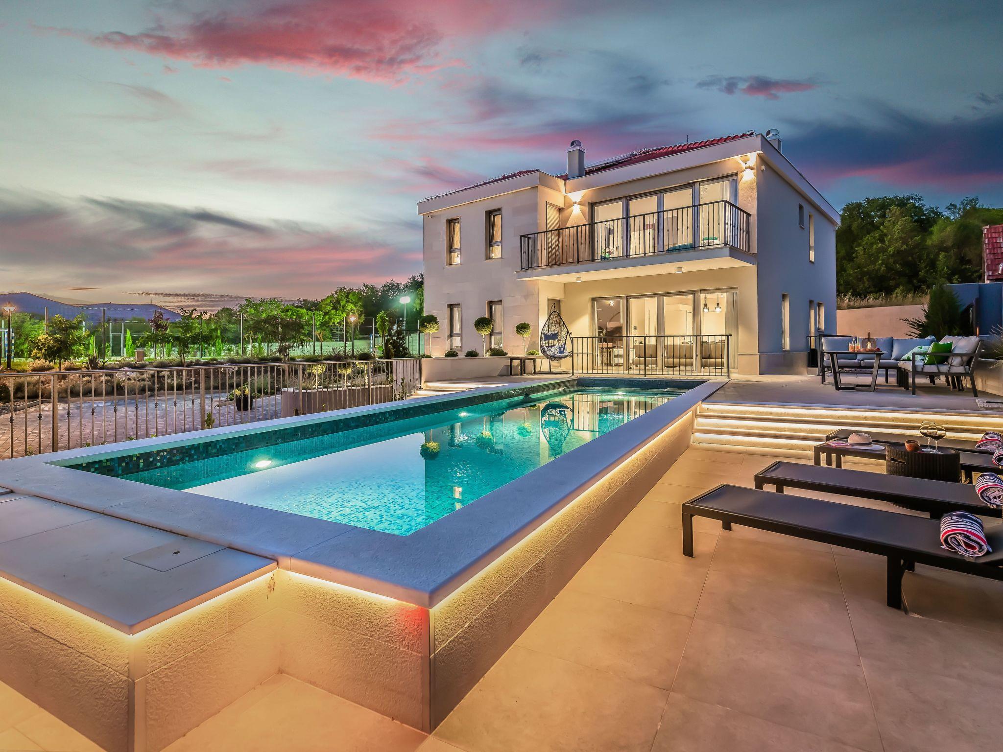 The newly built and very modern Villa SALVIA is a luxurious accommodation on 3500 m² in a completely fenced building with a private pool, outdoor dining room and seating, deckchairs by the pool, a fully equipped kitchen, 1 living room, 4 bedrooms and 4 bathrooms. There is also a game room with a pool table and table football. Outdoor multi-functional playground with soccer and tennis courts, as well as basketball hoops. The facility is equipped with a sauna and a gym.The villa is fully air-conditioned and equipped with free wireless internet access.Everything is well organized and you have everything you need for a perfect vacation with family or friends for a maximum of 8 + 0 people.