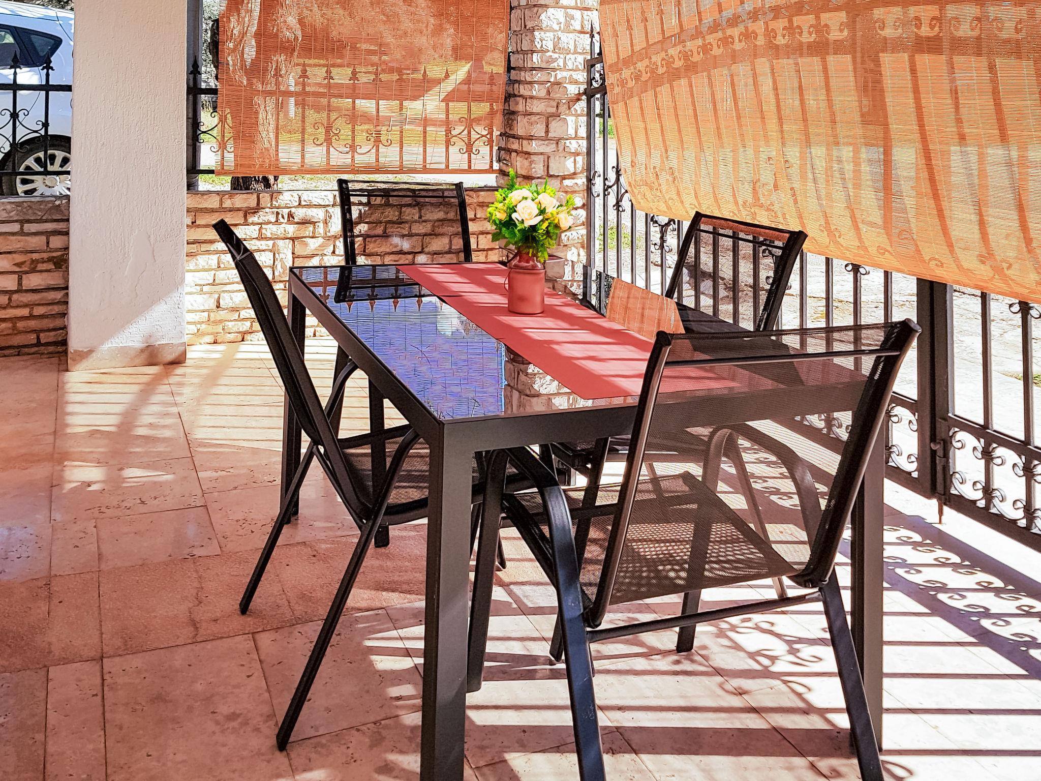 2-room apartment 47 m2, on the ground floor. Living room with 1 double sofabed (150 cm, length 200 cm), satellite TV and air conditioning. 1 room with 1 french bed (160 cm, length 200 cm). Exit to the terrace. Dining room. Open kitchen (2 hot plates, toaster, kettle, microwave, electric coffee machine). Shower/WC, sep. WC. Air-conditioning (extra). Terrace 10 m2, roofed. Terrace furniture. Facilities: Internet (WiFi, free). Maximum 1 pet/ dog allowed.